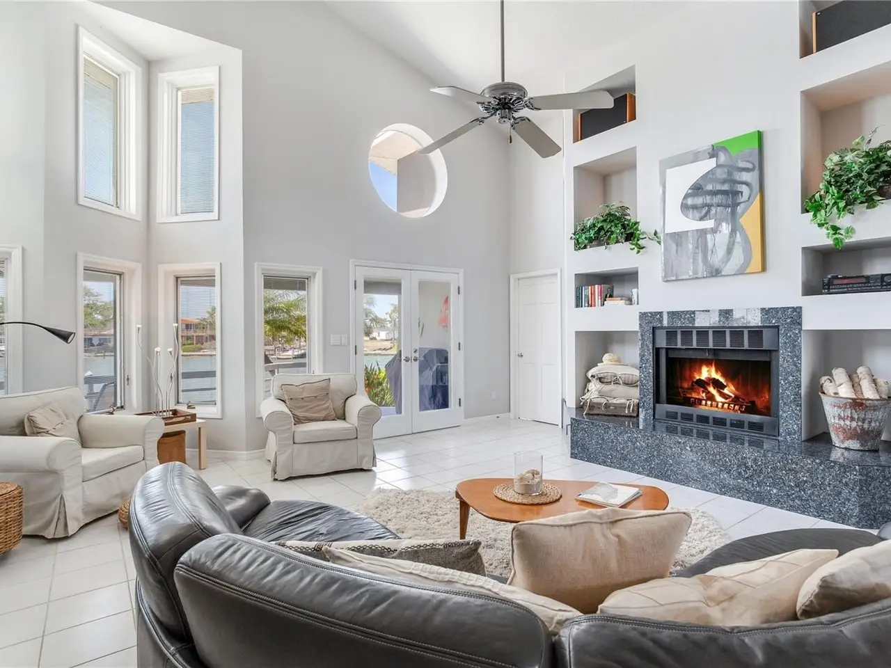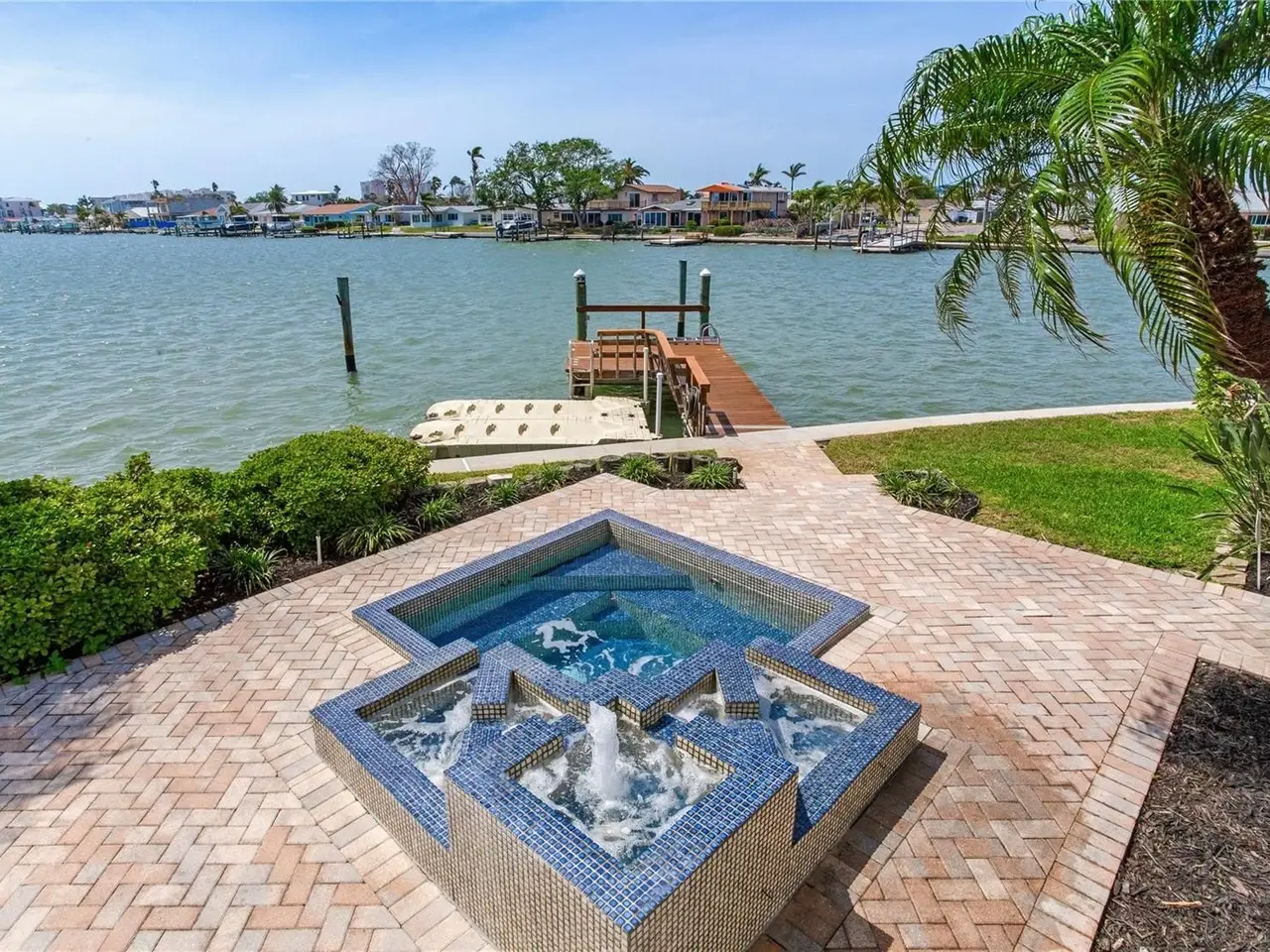 STUNNING ELEVATED CUSTOM-BUILT CONTEMPORARY HOME ON 107 FT OF WATERFRONT IN NORTH REDINGTON BEACH!! Welcome to your slice of waterfront paradise! Perfectly situated at the end of a quiet cul-de-sac, this architecturally unique residence boasts 107 feet of prime open water frontage with spectacular west-facing views—a front-row seat to unforgettable Florida sunsets. Step inside this 3-bedroom(3rd Bedroom has been opened up as a versatile loft space-perfect for a home office, den, or media area-but can easily be enclosed again with a door and half wall to restore full functionality), 3-bathroom home with 2,541 sqft of thoughtfully designed living space, where soaring vaulted ceilings and abundant natural light highlight the home’s open and airy feel. Nearly every room captures panoramic water views, bringing the beauty of the bay right into your living space. The spacious primary suite offers a true retreat, complete with a large walk-in closet and a spa-inspired en suite bath featuring a freestanding designer soaking tub, frameless glass shower, and dual vanities. The kitchen is perfectly positioned to overlook the living area and includes a cozy breakfast nook—ideal for morning coffee with tranquil water views. Luxury finishes throughout include granite countertops, a stunning pearl granite hearth, Pella windows, and storm panels. Step outside to the expansive balcony and enjoy your private dock, heated spa with fountains, and plenty of room for entertaining or unwinding in your peaceful bayfront oasis. The 107-foot seawall (installed in 2006) adds lasting value and peace of mind. Located just a short walk to the beach, near a city park, and surrounded by underground utilities for a clean, serene streetscape—this home seamlessly blends luxury, location, and lifestyle.