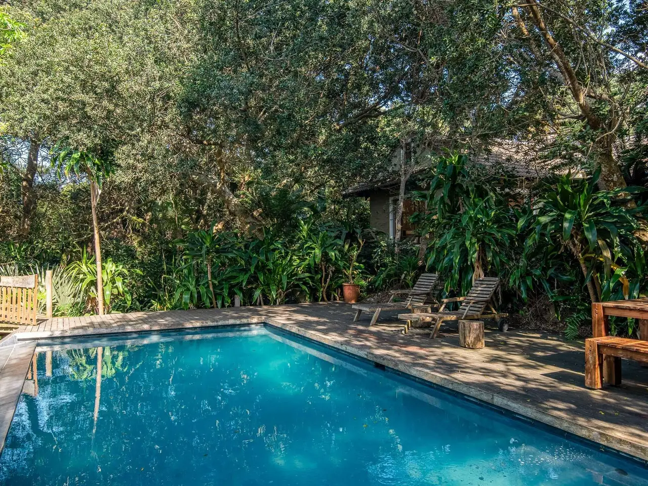 Exclusive to Chas Everitt - A fairytale property where old-world, colonial charm meets tropical island bliss. This is, without a doubt, the most unique home within the village, where nature's embrace is felt at every turn. Nestled amidst a tapestry of dense vegetation, this property, like a hidden treasure, offers the ultimate retreat, shrouded in a cloak of complete privacy. As you approach, the captivating allure of the beachfront location beckons you closer, promising a sanctuary unlike any other. The main house exudes an air of grandeur, with its magnificent formal lounge, adorned with a crackling fireplace that casts a warm glow, creating an inviting ambience. The open-plan living area seamlessly combines a cosy TV room and an elegant dining area, where cherished memories are destined to be made. Wooden sliding doors and shutters flank both sides of this space, revealing enchanting patios that present two different worlds. One leads you to the awe-inspiring pool area, where sparkling waters invite you to immerse yourself in blissful serenity. And just when you think this masterpiece couldn't offer more, a breathtaking surprise awaits. From the pool area, an elevated walkway invites you to embark on a journey to a private viewing area, where the quieter beaches of Zinkwazi unveil themselves in all their glory. The kitchen, thoughtfully positioned off the dining area, boasts modern concrete countertops and a sliding window that effortlessly connects to the protected courtyard, which is ideally located adjacent to the dining area, ensuring seamless entertaining. The main bedroom, nestled within this section of the home, offers a panoramic vista of the lush gardens, visible through the sliding door and windows. A full en-suite bathroom, adorned with generous windows, reveals breathtaking views of the sub-tropical gardens and the duck pond that graces the rear of the property. To complete this haven of tranquillity, a massive walk-in wardrobe awaits, ready to house your cherished possessions. Venturing further, four additional bedrooms unfold, nestled beyond the protected courtyard. Two bedrooms overlook the driveway area, sharing an interleading bathroom that effortlessly combines functionality and elegance. On the opposite side, two more bedrooms await, each offering sweeping views of the magnificent gardens that surround them. These bedrooms boast their own ensuite bathrooms, ensuring comfort and convenience for all who reside within. The property also boasts spacious staff quarters and three garages, catering to every need. This home, a true masterpiece, is not merely a property, but an oasis that promises to awaken your soul and captivate your every sense.