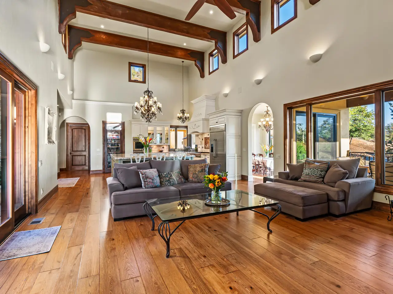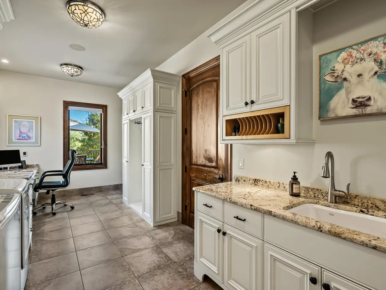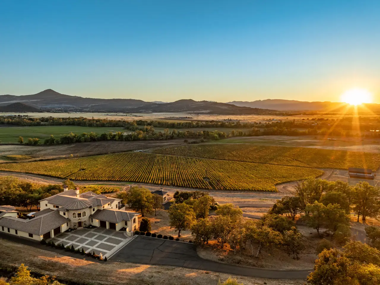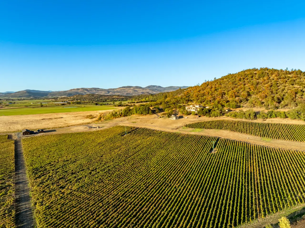 Surrounded by the natural beauty of Southern Oregon's Rogue Valley, this Mediterranean-inspired estate pairs timeless design with agricultural excellence. The 7,256 sq. ft. residence centers around a private courtyard and showcases cathedral ceilings, a grand entry, and a chef's kitchen opening to a grand great room and multiple outdoor living areas. The primary suite offers vineyard views, spa-style bath, and expansive deck, while amenities include an executive office, library, wine room, gym, sauna, and indoor saltwater pool. A matching 851 sq. ft. casita provides a luxurious one-bedroom guest retreat overlooking the vines. The 160-acre property features Celtic Moon Vineyards--42.5? acres of premium vines with 77.44 acres of irrigation rights. Located minutes from Eagle Point and Medford, this private estate captures the essence of Southern Oregon's wine country lifestyle.