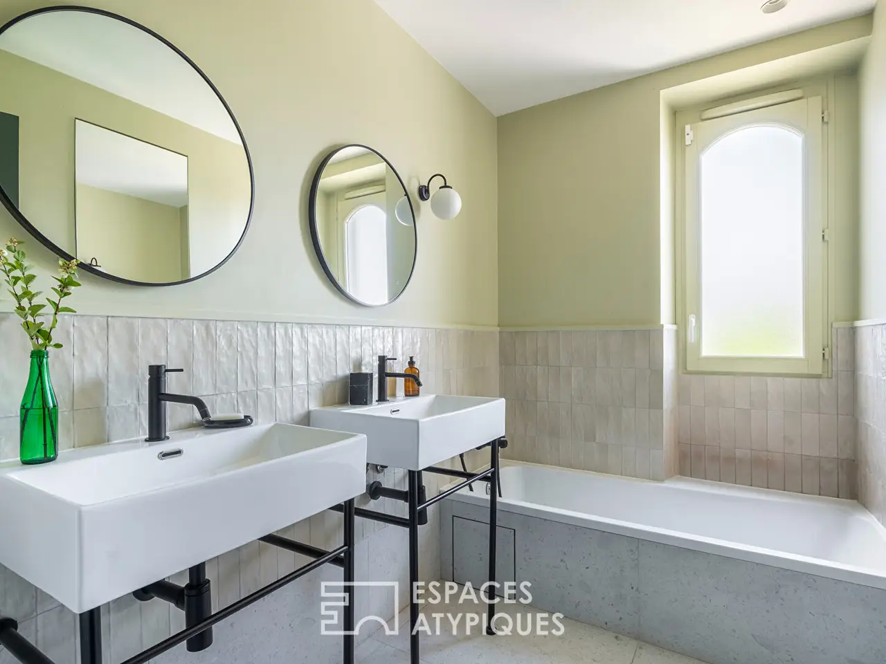 In Creteil village, this 1850 mansion reveals all the nobility of its architecture behind a classic facade with white shutters. Set on a landscaped 500 sqm plot, its 160 sqm of living space was enhanced by an architect-designed renovation five years ago, blending authenticity and contemporary comfort.The ground floor opens onto the living room and dining room, true reception rooms bathed in light, where herringbone parquet flooring and period moldings interact with a functional fireplace with intact charm. Large bay windows provide direct access to the terrace and garden, naturally extending the living space to the outdoors.Adjoining it, a separate, contemporary and elegant kitchen benefits from direct access to the garden through its French window, while an entire wall is illuminated by tall bay windows opening onto the greenery.An elegant office completes this level, offering the possibility of being easily converted into a bedroom as needed. A separate toilet completes this comfort.Upstairs, the sleeping area, which houses three bedrooms, presents itself as a haven of softness where natural light caresses every surface. The master suite, with its resolutely contemporary style, opens onto a bathroom delicately dressed in marble and zelliges in subtle shades. Its clean lines and careful finishes, enhanced by golden faucets, reveal a discreet refinement. The two children's bedrooms each reveal a unique universe: one with clean lines and fresh tones, the other with warm, pastel notes. They share a separate bathroom, designed to meet their daily needs, extending these delicate atmospheres in a spirit of comfort and serenity. An additional office, which can easily be converted into a bedroom or guest room, completes this floor, to which are added a separate toilet for greater daily comfort.Outside, the vast garden, with Provencal accents, offers generous and protected views, ideal for enjoying the peace and quiet away from prying eyes.A bicycle shelter and electric vehicle charging station complete this discreet and refined setting.In the basement, four cellars including a wine cellar, a laundry room, and a boiler room provide practicality and storage.Just three minutes from the shops and the center of Creteil village, and two minutes from the Victor Hugo school, the property benefits from a location as rare as it is privileged.An exceptional property on the luxury real estate market in Creteil, an atypical house and mansion at the same time, where period elegance and modernity unite in perfect harmony.Metro 8 Creteil Universite : by TVM 15 minutesShops: 3 minutes on foot (Creteil village 20 minutes on foot)Schools: 2 minutes on foot (Victor Hugo)REF. 12646Additional information* 7 rooms* 5 bedrooms* 1 bathroom* 1 bathroom* 1 floor in the building* Outdoor space : 500 SQM* Parking : 1 parking space* Property tax : 4 200 €Energy Performance CertificatePrimary energy consumptionf : 284 kWh/m2.yearHigh performance housing*A*B*C*D*E*284kWh/m2.year87*kg CO2/m2.yearF*GExtremely poor housing performance* Of which greenhouse gas emissionsf : 87 kg CO2/m2.yearLow CO2 emissions*A*B*C*D*E*87kg CO2/m2.yearF*GVery high CO2 emissionsEstimated average annual energy costs for standard use, indexed to specific years 2021, 2022, 2023 : between 5700 € and 7760 € Subscription IncludedAgency feesThe fees include VAT and are payable by the vendorMediatorMediation Franchise-Consommate