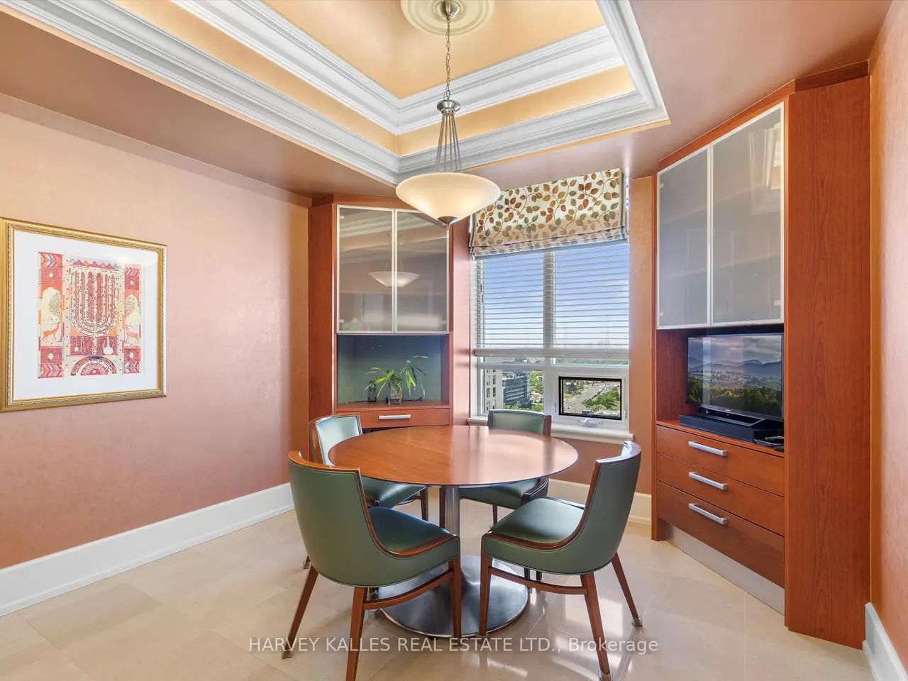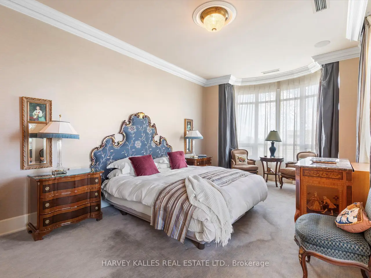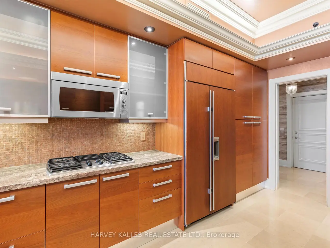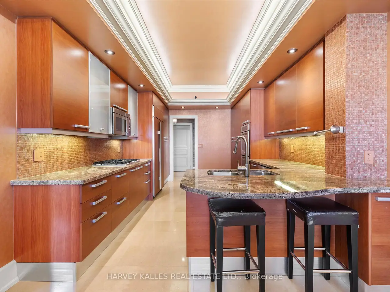 A rare and remarkable suite in the heart of Bayview Village. Originally designed as two separate units, the space has been expertly reimagined into a single, expansive 3-bed, 3-bath residence, offering exceptional scale, flow, and functionality. From the moment you arrive, the attention to detail is evident. Aside from the main suite entrance, this unit offers 2 private entrances from 2 separate elevators. The main elevator opens privately into the suite and the separate Butler's elevator opens into the mudroom - a level of privacy and convenience rarely found in condo living. Inside, you'll find a thoughtfully curated interior finished with granite floors in the hallways and kitchen, rich walnut hardwood throughout, and elegant wallpaper accents that add refined character to each room. The custom kitchen is a chef's dream, featuring cognac walnut cabinetry, granite countertops, and a full suite of premium stainless steel appliances: KitchenAid duo oven, countertop range, dishwasher, and a Panasonic microwave. A Sub-Zero Fridge completed the kitchen with matching cabinet panelling. A secondary stainless steel LG Fridge is available in the secondary mudroom. All of this to say, you're well-equipped for daily living and entertaining. Enjoy two generous balconies for morning coffee or sunsets, along with a dedicated private lounge/library/TV room - perfect for quiet relaxation or hosting guests. The primary suite is a luxurious retreat with a walk-in closet, custom-built-ins, and a spa-style ensuite boasting a glass walk-in shower, heated floors, and a TOTO Washlet toilet. Throughout the suite, thoughtful details such as crown moulding, light valances, and automated curtains and drapes elevate the space. This upscale building offers a full suite of resort-style amenities: fitness and wellness facilities (pool, gym, steam room, hot tub), entertainment spaces (party and game rooms), as well as practical conveniences like concierge, valet, guest suites, and ample parking.