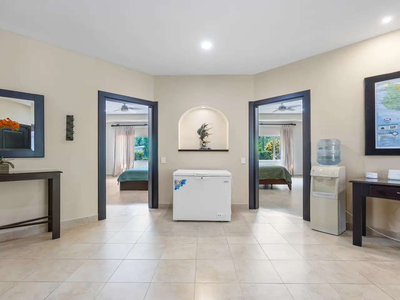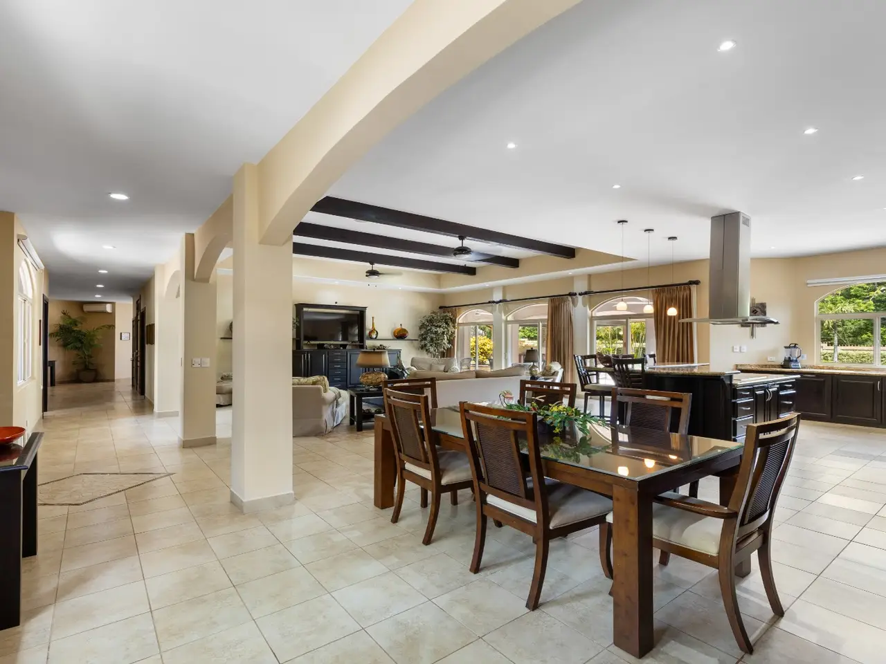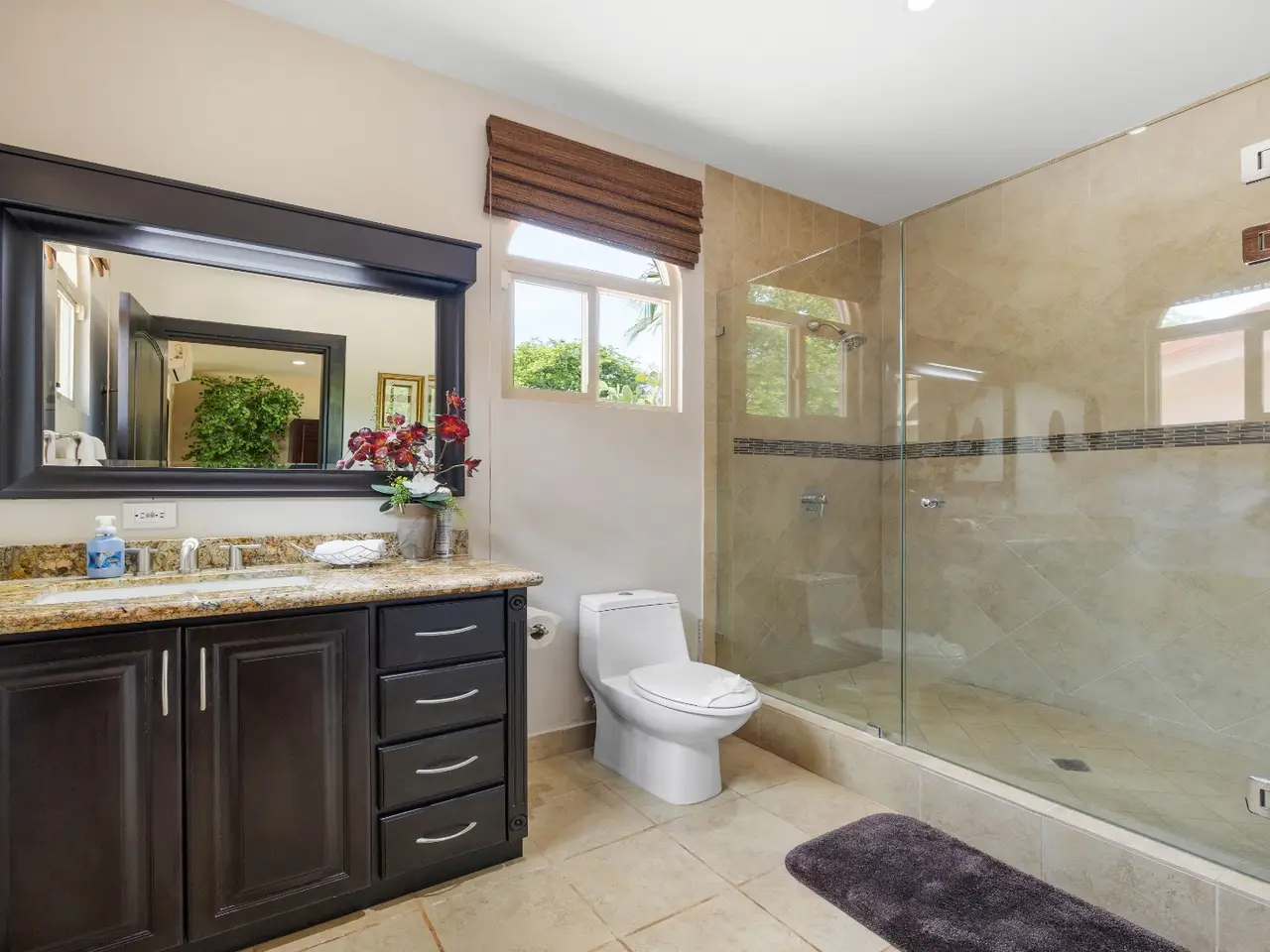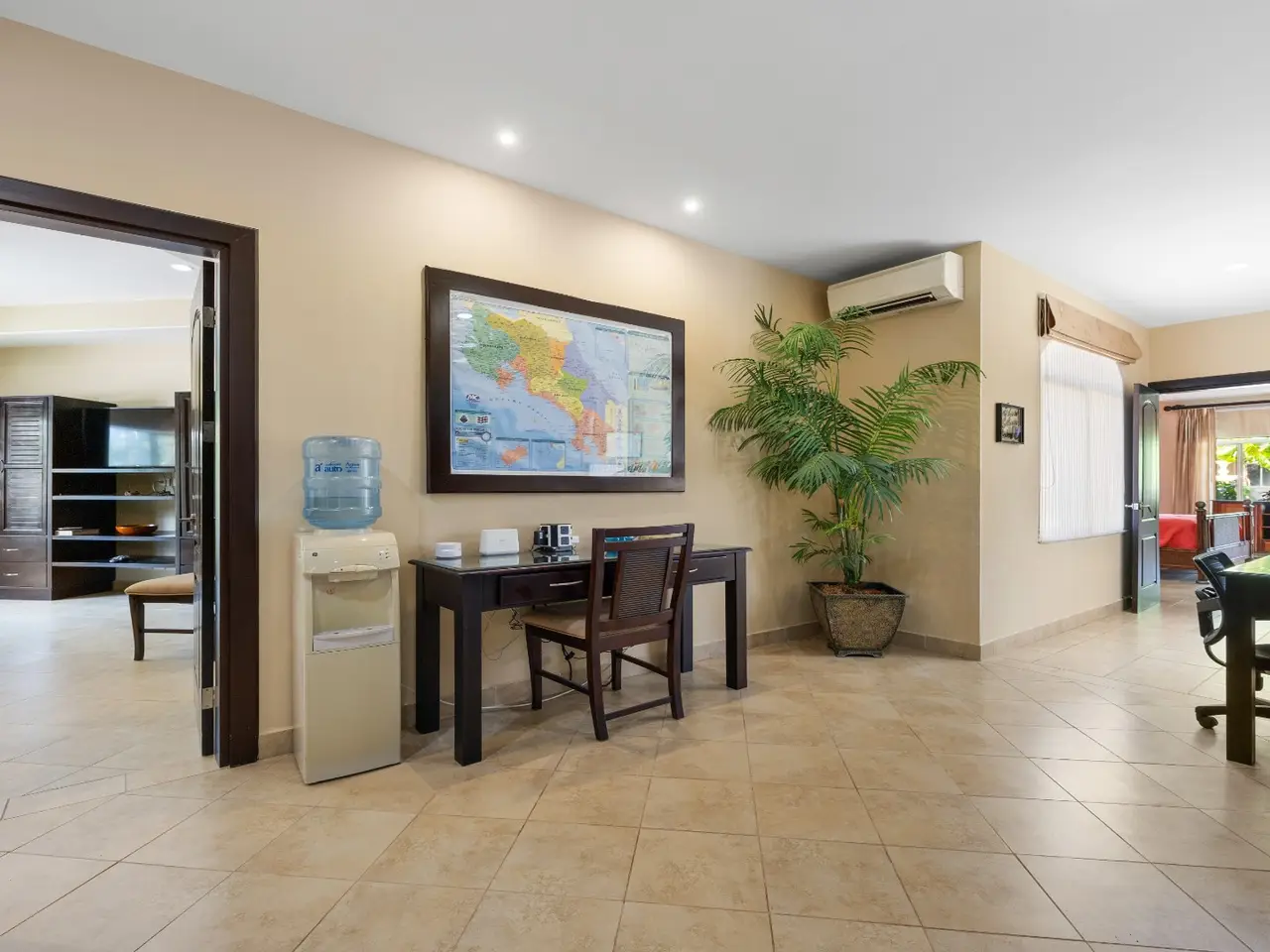 Exquisite Estate in Catalina Cove – Walk to the Beach, Live the Dream Welcome to Casa La Salle, a breathtaking private estate located in the gated community of Catalina Cove, just a short walk to the golden sands of Brasilito Beach and minutes from Playa Conchal. Spanning over 7,000 sq ft in the main residence and complemented by a 600 sq ft guest house, this 5-bedroom, 5.5-bathroom tropical retreat is set on a lush 5,451 m² (1.35-acre) fully fenced lot with impeccable landscaping, privacy, and space to entertain on a grand scale. From the moment you enter the estate through the long palm-lined driveway, you're greeted by elegant Mediterranean-inspired architecture, a resort-style pool with a cascading stone waterfall, a large jacuzzi, sun deck, outdoor kitchen, and tranquil fountain courtyard—all surrounded by mature palms and tropical gardens. Designed for relaxed luxury and effortless entertaining, the main living area features soaring vaulted ceilings, ample seating for large groups, and a seamless indoor-outdoor flow. The expansive chef’s kitchen is the heart of the home, complete with granite countertops, stainless steel appliances, custom hardwood cabinetry and a large center island perfect for gathering. Adjacent to the kitchen, a dedicated bar and lounge area opens to an oversized covered terrace and resort-style BBQ rancho—ideal for outdoor dining, poolside cocktails, or hosting family and friends in style. The main residence includes four spacious bedrooms, each with large windows and generous built-in closets. Two luxurious primary suites open directly onto the pool terrace and offer private covered sitting areas, spa-inspired bathrooms, and serene office nooks—providing the ultimate sanctuary for rest, productivity, and retreat. The 2 guest bedrooms offer king beds with en suite bathrooms. The independent guest house offers a full bedroom, bath, kitchen, and living space—ideal for visitors, caretakers, or rental income potential. Property Highlights: • 4 king beds & 1 bed | 5.5 baths across two homes with spacious social areas • Resort-style pool + jacuzzi with waterfall feature • Outdoor kitchen and BBQ area ideal for entertaining or hosting events • Multiple covered outdoor terraces for lounging, dining, and entertaining • Manicured landscaping, tropical palms, and decorative fountains • Secure, walled property with automatic gate and ample parking • Walk to the beach, shops, and restaurants • Located minutes from Playa Brasilito, Playa Conchal, Playa Flamingo, Tamarindo, Playa Grande, and the new Marina Flamingo • Close to top-rated international schools (La Paz and CRIA), shopping, and surf beaches • High-speed fiber optic internet • 2 car garage, and 2 storage rooms • Fully furnished and turnkey ready Whether you're looking for a luxurious full-time residence, a multi-generational family retreat, or an income-generating property in a prime beachside location, this Catalina Cove estate offers it all. Schedule your private showing today and experience the best of coastal luxury living in Guanacaste, Costa Rica.