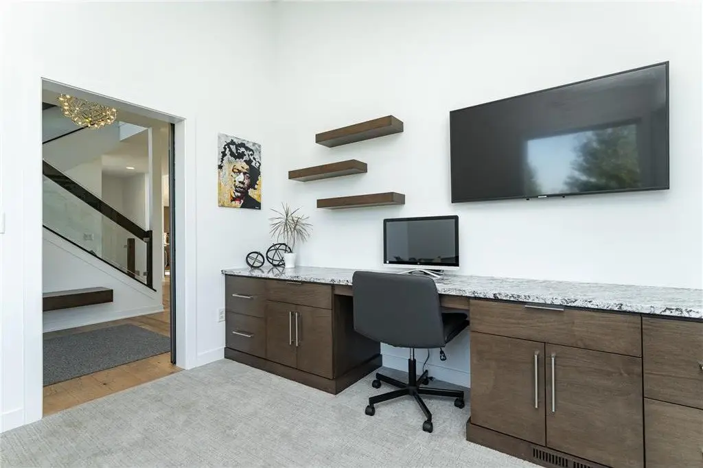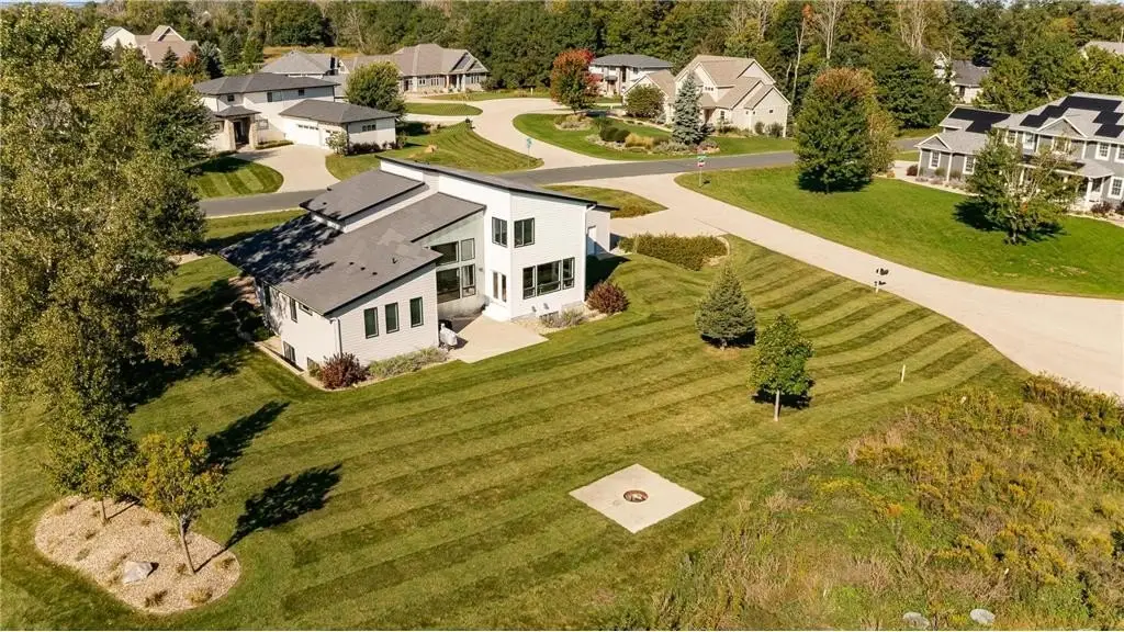 Welcome to this stunning modern home in the highly sought-after Mayo Woodlands neighborhood! Designed with clean lines, abundant natural light, and luxurious finishes, this 5-bedroom, 4-bathroom residence offers the perfect blend of style and functionality. The main floor features a spacious primary suite with his-and-hers closets, spa-inspired bathroom with soaking tub and heated towel rack, and conveniently located laundry. You'll also find a private office with custom built-ins, gourmet kitchen with a stylish and functional pantry, dining area, vaulted living room with expansive windows, and a well-designed mudroom. Upstairs, three generously sized bedrooms share a full bath, along with a second laundry room for added convenience. The recently completed lower level is an entertainer's dream featuring a lovely full kitchen, state-of-the-art exercise room with backlit mirrors, bathroom with faux skylight, large great room perfect for game or movie nights, a unique multi-purpose room accessible through a hidden door, an additional bedroom, and ample storage. Complete with a 3-car garage and positioned on a beautiful lot, this home is loaded with amenities and offers the best of modern living in one of Rochester's most desirable neighborhoods. Close to Mayo Clinic, schools, retail, trails and restaurants.