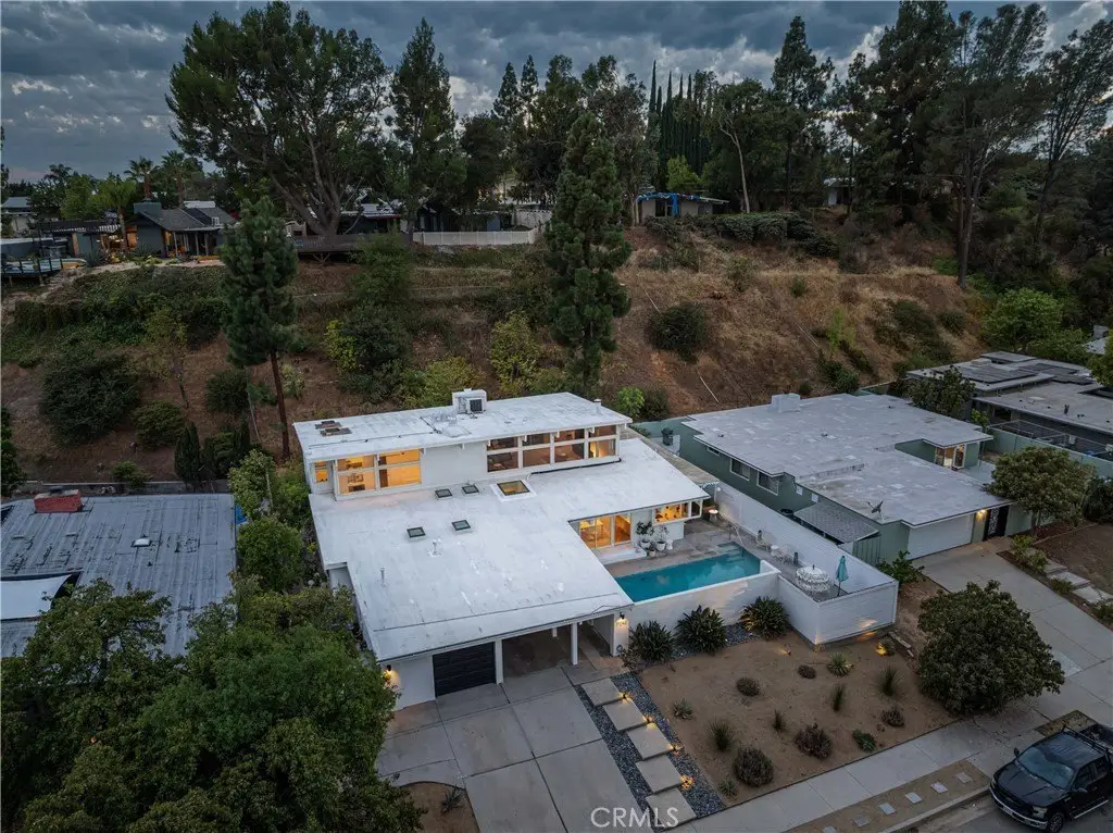 Stunning Eichler home in the highly desirable Balboa Highlands community. One of the largest and most striking models, this modern architectural gem features an open floor plan that seamlessly connects indoor and outdoor living—perfect for entertaining and everyday relaxation. The home offers 5 spacious bedrooms, including two primary suites (one on each level), each with spa-like baths and large walk-in closets. The gourmet chef’s kitchen opens to a casual dining area and spacious living space. Upstairs, a large family room or home theater showcases beautiful mountain views. Enjoy the private oasis complete with a sparkling pool and multiple areas for lounging and dining as well as drought-resistant desert landscaping. Conveniently located near top-rated schools, easy freeway access, and O’Melveny Park with its scenic hiking trails. A rare opportunity to own a true mid-century modern masterpiece in one of the Valley’s most sought-after neighborhoods.