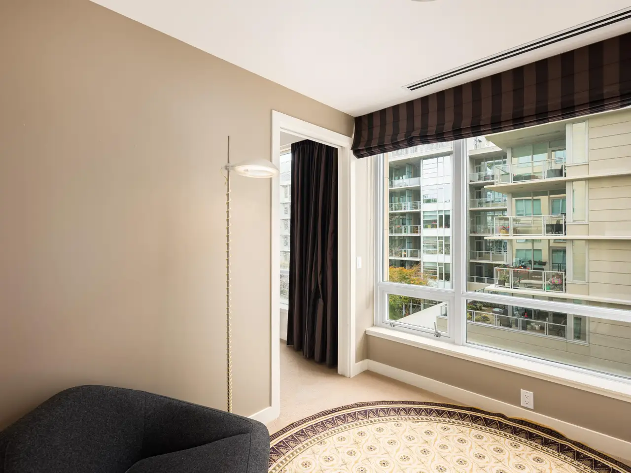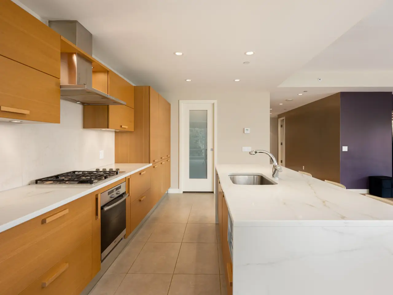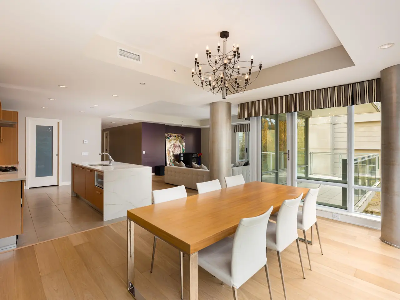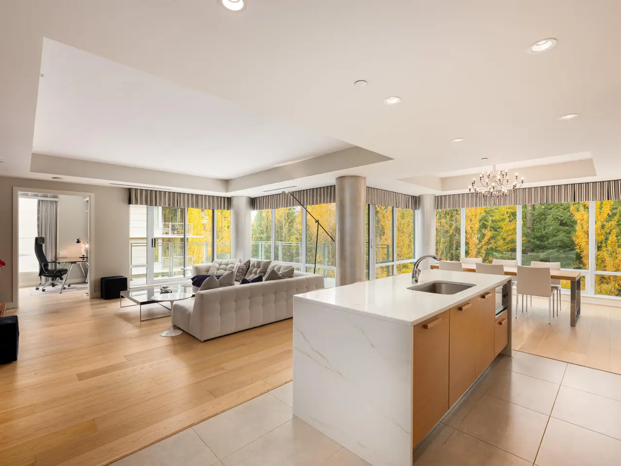 An exceptional opportunity! Unit 403 is one of the largest residences in the coveted "The Wesbrook." This magnificent 1,916 sq.ft. comer home boasts a rare 3-bedroom, 2.5-bathroom, plus den layout. Enjoy a sophisticated lifestyle with a large chef's kitchen, separate dining area, and quality concrete construction. Recently updated with engineered hardwood flooring and a new kitchen counter, features include modem geothermal heating and floor-to-ceiling windows that capture a serene, treed private outlook from private balconies. Full-service amenities, including a 24-hr concierge and gym, are second to none. Situated in the heart of University VW, you are steps from Wesbrook Village shops and the beauty of nature on UBC's scenic trails.