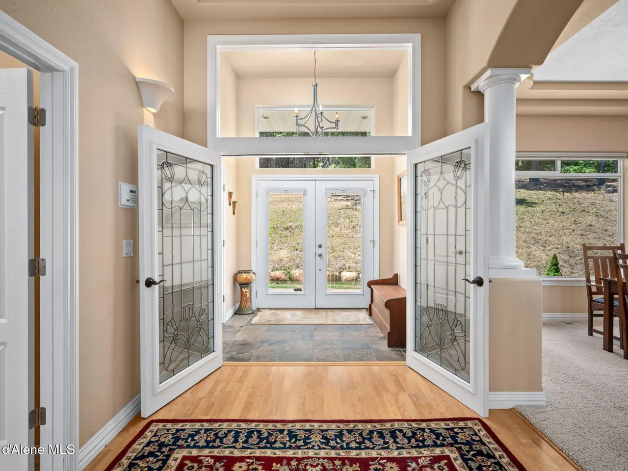 Nestled south of the Spokane River on 16.29 acres, this 2,948 square foot, 3-bed, 3.5-bath home (built 2003) is a serene oasis just 23 min from Coeur d'Alene's Sherman Ave, 13 min from Post Falls, and 40 min from Spokane Airport. Enjoy a grand double-door leaded glass entry, hardwood floors, 10' ceilings, and a gourmet kitchen with granite counters, cherry cabinets, and a large island. The primary suite stuns with a walk-in closet, jetted tub, and two-sided gas fireplace. Relax on the trex deck with million dollar views or in the 3-person spa. A 40x60 shop and 12x60 lean-to, spray foam insulation, and 220v power sits on a concrete slab. Updates include a 2019 metal roof, Hardie board siding, and asphalt driveway. With an elevator, zero-step entries, 4-car garage, 3-zone sprinklers, and a security system, this home is also wired for generator that offers luxury and accessibility. All appliances stay! Low taxes with timber exemption. Your dream retreat awaits! Exquisite Private North Idaho Estate - Your Ultimate Sanctuary Awaits! Escape to a world of unparalleled luxury and tranquility with this breathtaking 2,900 sq ft, 3-bedroom, 3.5-bathroom masterpiece (Sitting on a 2,882 sq ft basement!), nestled on 16.29 acres of pristine North Idaho landscape, just south of the Spokane River. Built in 2003 and meticulously updated, this estate offers a harmonious blend of modern sophistication, accessibility, and rugged outdoor beauty. Perfectly positioned for convenience, you're only 23 minutes from the vibrant Sherman Avenue in downtown Coeur d'Alene, 13 minutes from the charming heart of Post Falls, and a mere 40 minutes from Spokane International Airport. Whether you seek a private retreat, a family haven, or a versatile property for work and play, this home delivers it all. A Grand Arrival: As you approach through the automatic iron gate, a 1,200-foot asphalt driveway, newly paved in 2024, guides you effortlessly to the property. Designed for easy maintenance and snow plowing, the driveway features an extended trailer turnout, ensuring seamless access for vehicles of all sizes. The gate, operable by code or clicker, adds a layer of security and exclusivity to your private oasis. Beyond the gate, the sprawling estate unfolds, revealing meticulously maintained grounds, a 3-zone sprinkler system, and a charming fire pit area in the front yard - the perfect spot for cozy evenings under the stars. Architectural Elegance Meets Modern Comfort: Step through the double-door leaded glass entryway, a stunning prelude to the home's grandeur, and into a welcoming foyer with a tray ceiling and gleaming hardwood floors. A second French door adds an extra touch of sophistication, ushering you into a world of refined living. The open-concept interior, with 9' ceilings throughout, exudes warmth and spaciousness, enhanced by Hunter Douglas window coverings that frame breathtaking views of the surrounding landscape. The heart of the home is the gourmet kitchen, a chef's dream designed for both functionality and style. A large center island with a sink, seating for four (stools included), and granite countertops anchors the space, while cherry wood cabinets and a separate pantry provide ample storage. Adjacent, a cozy breakfast nook invites morning coffee with a view, and a formal dining room with a tray ceiling sets the stage for elegant gatherings. For wine enthusiasts, a dedicated wine bar with granite counters and a wine refrigerator adds a touch of indulgence. The living room, warmed by a gas fireplace, flows seamlessly onto a expansive rear deck crafted with low-maintenance trex decking and sleek glass-panel handrails. Here, you'll find a 3-person spa just steps from the primary bedroom, offering a private retreat for relaxation. A direct propane stub makes outdoor grilling a breeze, perfect for summer barbecues with family and friends. A Primary Suite Like No Other: The primary bedroom suite is a sanctuary of luxury, designed for ultimate comfort and serenity. A two-sided gas fireplace creates a cozy ambiance, connecting the bedroom to the spa-inspired ensuite bathroom. Unwind in the jetted tub, refresh in the spacious walk-in shower, or enjoy the convenience of upgraded vessel sinks and granite countertops. A generous walk-in closet provides ample storage, ensuring your personal retreat remains clutter-free. Step directly onto the deck to soak in the hot tub or savor the stunning views that stretch across the property. Accessibility and Versatility: This home is thoughtfully designed for accessibility, with zero-step entrances from the 4-car garage to the basement, from the basement to the elevator, and from the elevator to the main floor. The OTIS elevator, paired with wide hallways, ensures seamless mobility throughout the home. The walk-out basement, complete with a full bathroom, additional entry point, and dog kennel, offers endless possibilities - a guest suite, home office, or recreational space. A water softener, sand filter, and central vacuum system add convenience, while a home security system provides peace of mind. Modern Updates for Effortless Living: No detail has been overlooked in maintaining this home's pristine condition. In 2018, a new air handler was installed, followed by a comprehensive 2019 exterior overhaul, including a durable metal roof with snow breaks, new gutters, Hardie board siding, rock siding, and a reimagined front entryway. The old deck was removed, and new decking was added to accommodate the hot tub, complete with updated deck stairs. Inside, the laundry room boasts granite countertops, and all appliances - included with the home - are ready for immediate use. The property's infrastructure is equally impressive. A 500-gallon leased propane tank powers the home's two gas fireplaces and outdoor grill stub, while a well head just 50 feet from the house delivers excellent water quality (well driller's report available). The septic system features both primary and backup dra