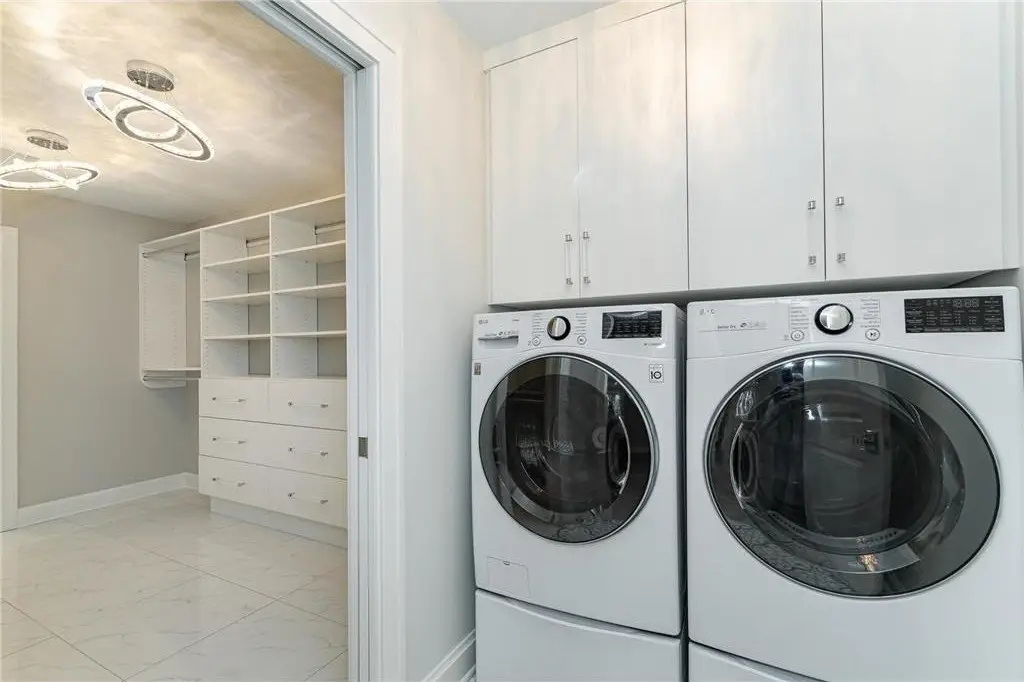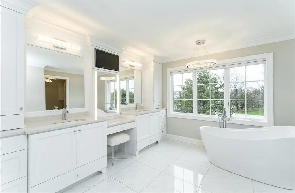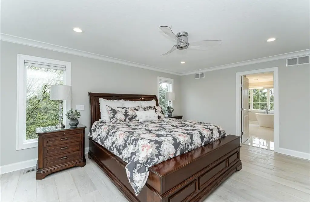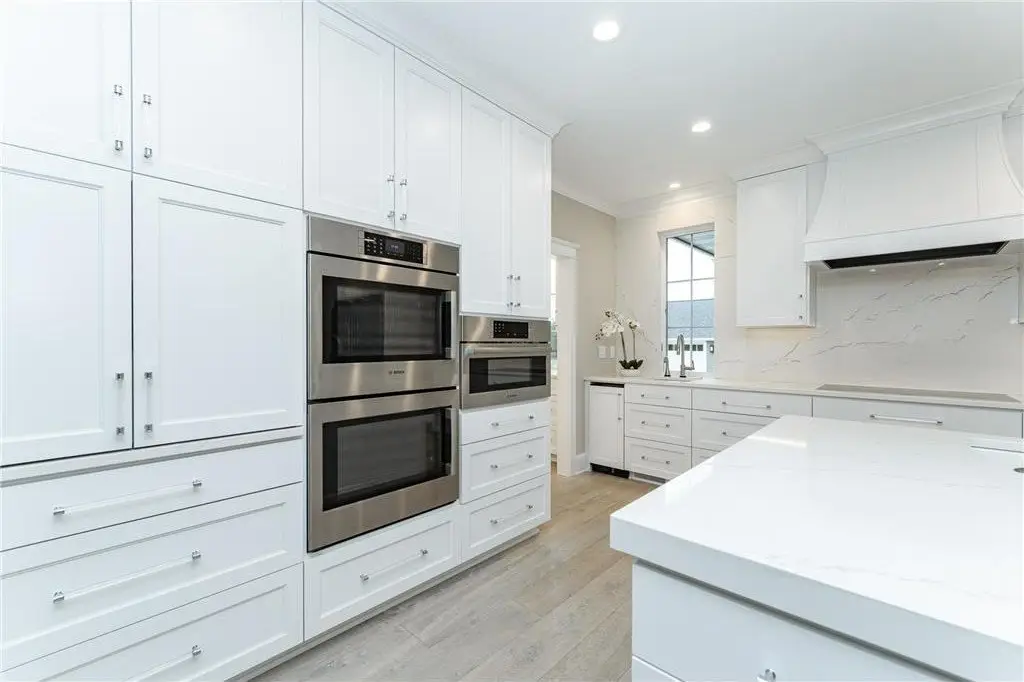 Spectacular attention to detail defines this spacious two-story home, completely remodeled inside and out and situated on a private, panoramic 2.18-acre lot in Mayowood Hills. The entire home has been thoughtfully redesigned with superior craftsmanship, luxurious finishes, and timeless style. Step inside to find European white oak hardwood floors throughout the entire home, complemented by custom cabinetry, Cambria countertops, high-end finishes, and elegant crown molding and woodwork. Enjoy the warmth of two gas fireplaces, two laundry rooms, a four-season sunroom, and a five-car garage (heated three-car attached plus a two-car detached). Additional features include a central vacuum system, permanent exterior LED holiday lighting, and a hardwired security system. The main floor welcomes you with a stunning staircase, leading to an elegant living room with a see-through fireplace, formal dining room with butler’s pantry, and an open-concept family room with a second fireplace featuring customizable lights. The spacious kitchen features an 11-foot center island, full-height backsplash, induction cooktop, built-in clear ice maker, and premium appliances. A dedicated office, half bath, laundry room, mudroom, and four-season sunroom complete the main level. Upstairs, the primary suite blends luxury with function, featuring a freestanding soaking tub, walk-in shower with dual showerheads/rain shower feature, a 12-foot vanity, and a custom-designed walk-in closet offering abundant space. Three additional bedrooms include a Jack-and-Jill bath and a private 3/4 bath, along with a convenient second laundry room. The lower level provides versatility with a spacious family/theatre room enhanced by color-changing backlit columns, wet bar, bonus/exercise space, and a fifth bedroom with a large walk-in closet and bath. This remarkable home offers a rare combination of luxury, space, and privacy, truly move-in ready with an extensive list of amenities and upgrades throughout.
