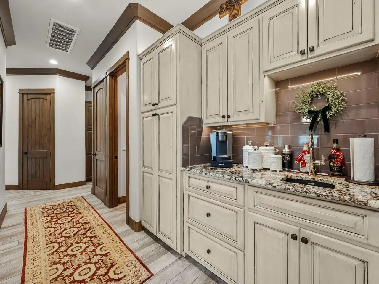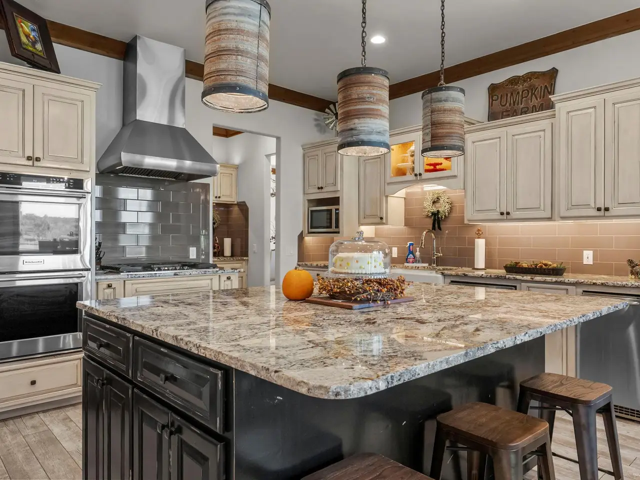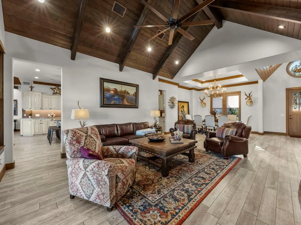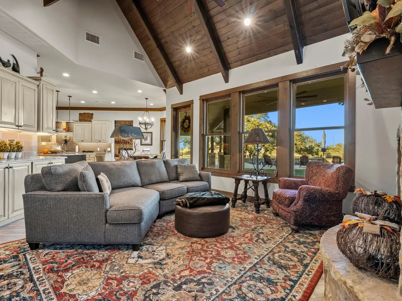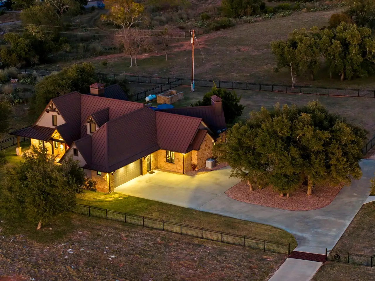 Absolutely CHOICE Hill Country 15 Acre estate with many unique features! Want a view of a castle outside your front door? Hobby areas? Separate heated/cooled man cave? Additional garage? Room for all the toys and equipment? Fully fenced yard for pets and kids? Desire double-gated security? Need a barn with a bathroom and stables? Low carrying costs? - 1.2088 tax rate, well, septic, wildlife exemption. Gorgeous one story flowing home with premier features and finishes. Huge covered back porch, faces East and overlooks pool area and fire pit seating area. Multiple living and dining areas give potential floorplan flexibility. Separate and private primary suite. Potential for additional living square footage with large, conditioned attic space. Separate detached equipment garage, additional heated and cooled garage currently set up as hobby/man cave. Plus, additional barn set up with 4 stables, bathroom, tack room area, storage loft, and covered equipment storage out back. Separate fenced areas provide setup for pets, horses and cattle. Plenty of flat space for vehicle and trailer storage. Ideal setup for family, entertaining, while also being private. Views for miles, see views of Lake Buchanan, sunsets, stars and wildlife. Neighborhood features 15+ acre tracts. This one features 500+ acre ranch behind the property, and 195 acre ranch across from it. Yet, all of this is located within easy access to Burnet, Marble Falls, and Kingsland.