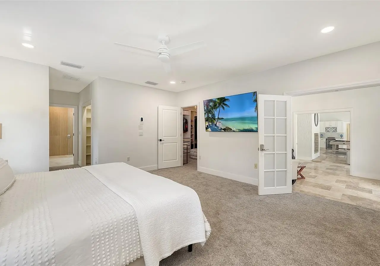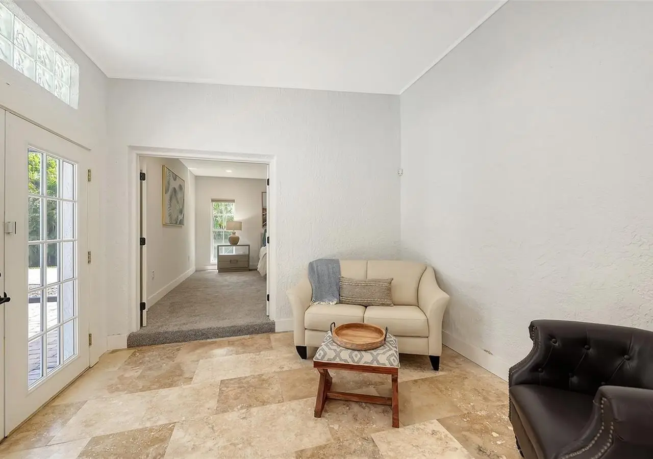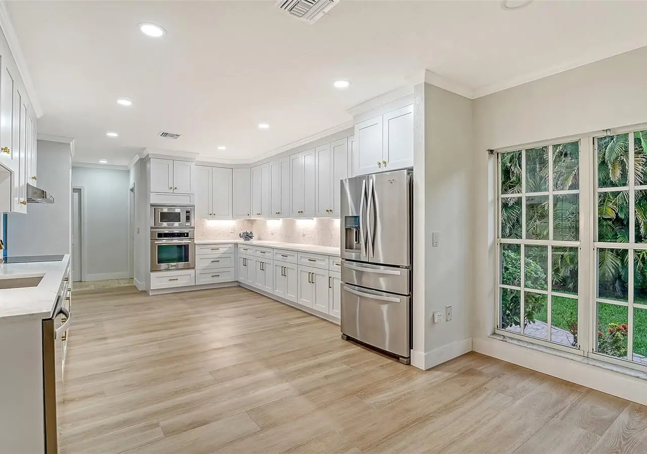 Tucked within the prestigious, gated enclave of Beneva Oaks, where centuries-old live oaks line meandering streets, this masterfully renovated home on a ½ acre lot offers incredible 2025 updates and a wonderful 4-bedroom, 3.5-bath, 1-story floor plan providing both grandeur and comfort across the expansive space. A circular drive framed by lush landscaping leads to the elegant entry of this modern residence, where refined upgrades blend seamlessly with timeless architectural features. Inside, travertine floors flow through the main living areas, while new designer carpet enhances the comfort of the bedrooms. The heart of the home is the extraordinary new eat-in kitchen featuring gleaming quartz countertops, crisp white wood cabinetry, stainless appliances including an induction cooktop, wide plank porcelain tile floor, and a custom tile backsplash. Accents like gold hardware, designer lighting, crown molding, and wide baseboards add the feel of luxury, while four sets of French doors connect the interior seamlessly with the lush exterior surroundings. An elegant dual-sided wood-burning fireplace with brick and tile surround and quartz and travertine hearths anchors the living and sitting areas, creating inviting spaces for conversation or quiet moments. With multiple entertaining areas designed for both intimate gatherings, grand-scale events or even a game of pool, the home's layout flows effortlessly from indoors to the screened lanai with paver deck, where a heated pool enhanced by Iconic Pools with sparkling new glass tile surface invites year-round enjoyment. The spacious primary suite, is a sanctuary unto itself, offering three walk-in closets with custom closet systems, and an extraordinary spa-inspired bath with bespoke tile work, frameless glass shower, gold fixtures, and a quartz-topped dual-sink vanity that exudes luxury. Two additional guest bedrooms enjoy new carpet, large closets, and generous natural light, while the newly redesigned guest bath impresses with design-forward flooring, quartz dual-sink vanity, and clean, modern finishes. The 4th bedroom can also be used as in-law suite, enjoying its own private French door entry and full bath with walk-in shower. The office with a custom built-in loft, closet, and a front facing window is ideal as a workspace, study, play, or creative escape. A chic updated powder bath adds further convenience. The thoughtfully designed laundry room features quartz countertops, utility sink, abundant cabinetry, and front-load GE Whirlpool washer/dryer. The oversized 2-car garage and beautifully landscaped grounds complete this exceptional property in one of Sarasota's most serene and sought-after neighborhoods. Located in a top rated school district, X flood zone and within close proximity to Sarasota's dining, shopping, culture, and the pristine Gulf of Mexico beaches, this exceptional property offers an unparalleled combination of design and craftsmanship in one of Sarasota's best-kept secret neighborhoods, presenting a rare opportunity to experience refined Florida living at its finest!
