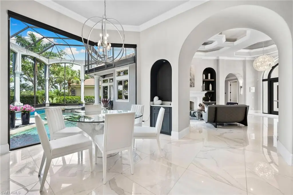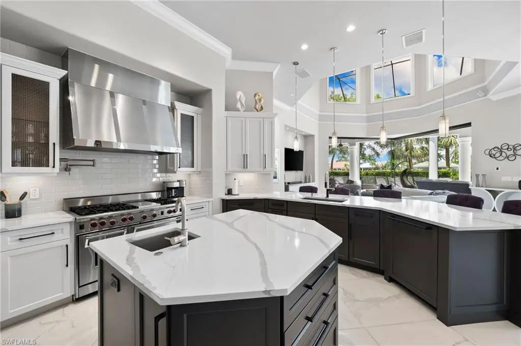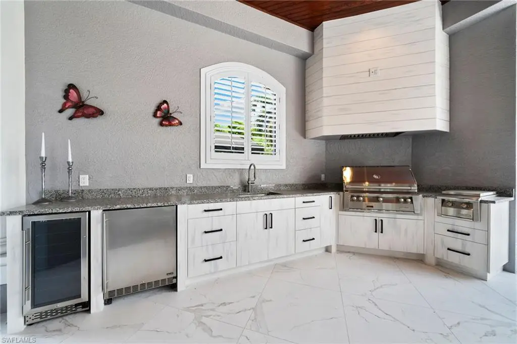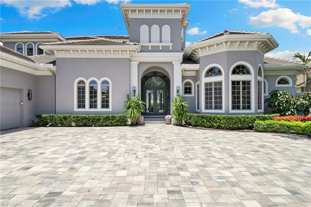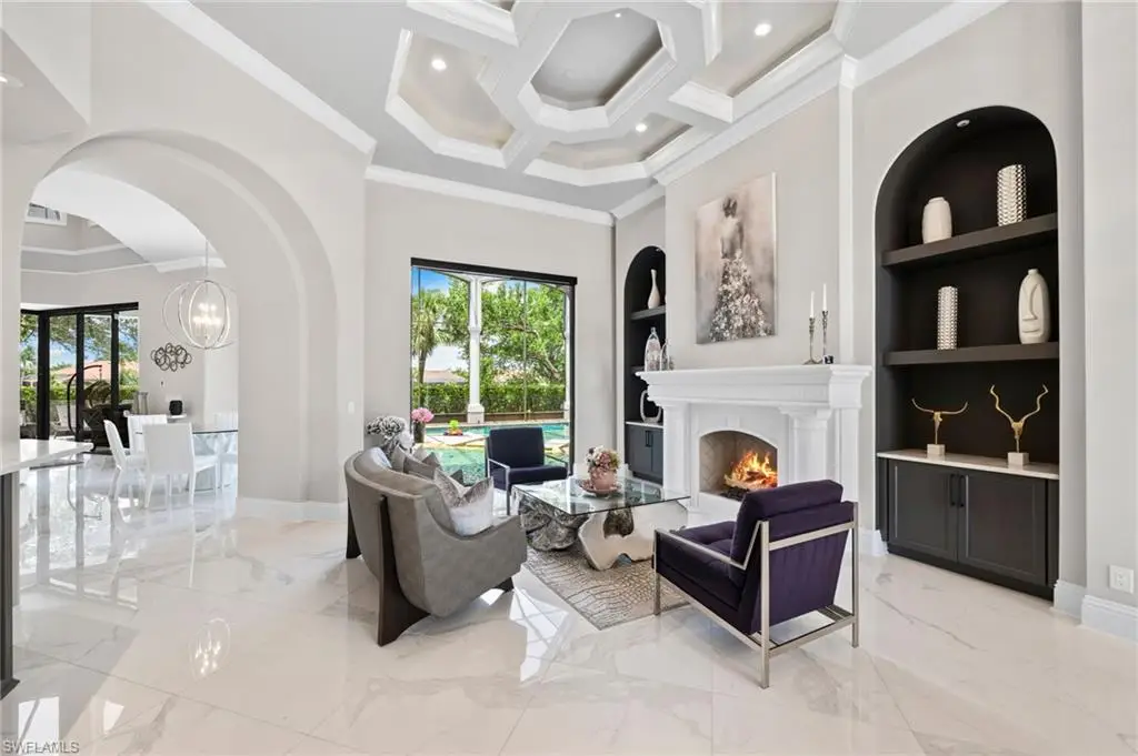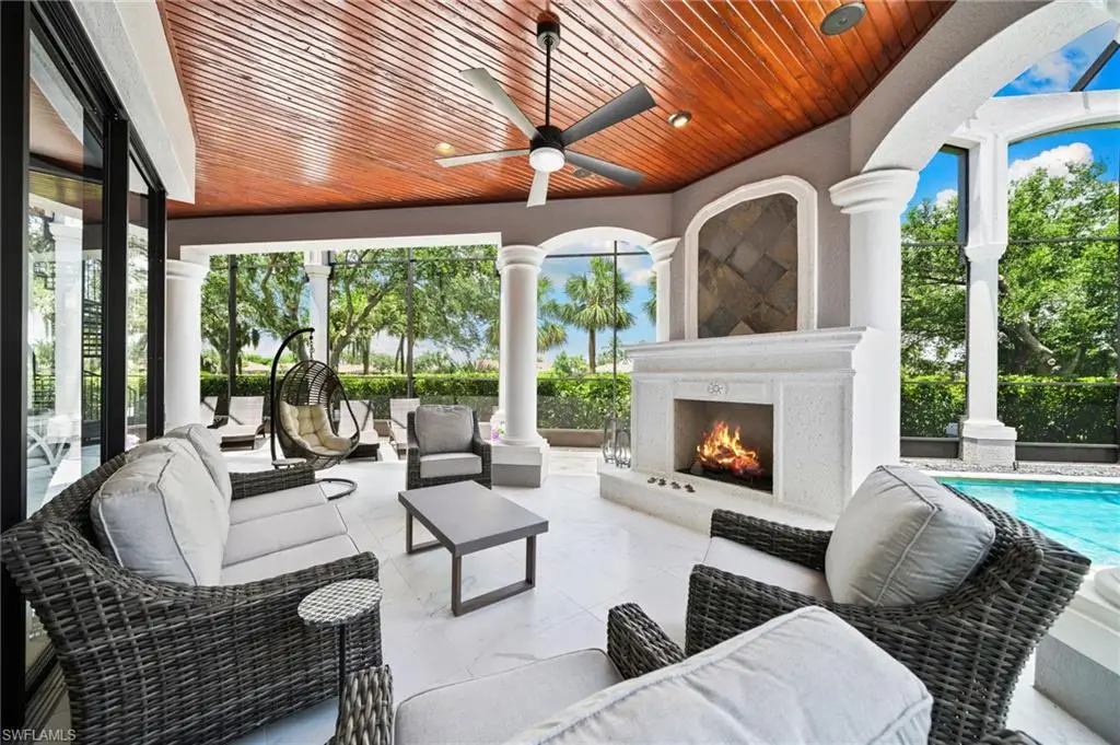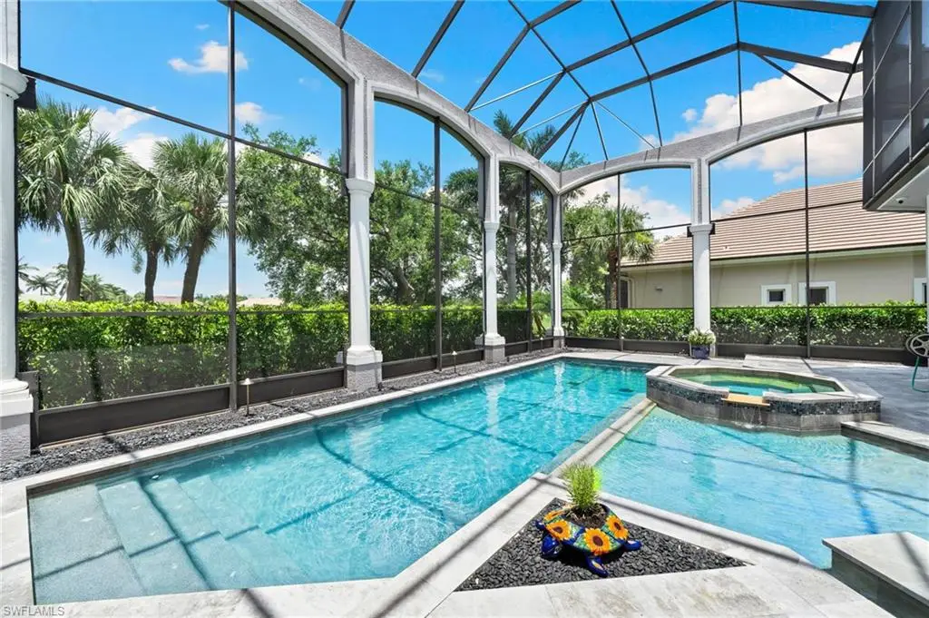 Welcome to this magnificent custom estate in Shadow Wood at The Brooks, where timeless design meets modern luxury. Spanning two floors of elevated living, this home has been meticulously updated inside and out over the past three years, offering the perfect blend of sophistication, comfort, and functionality. Set on a premier golf course lot with tranquil lake views, this residence features over 5,300 sq ft of air-conditioned living space and an exceptional outdoor lifestyle - complete with three verandas, a cozy fireplace, summer kitchen, and a resort-style pool and spa. All exterior elements have been refreshed or replaced, including the roof, driveway, front porch, pool equipment, screen enclosure, outdoor tile, landscape lighting, and irrigation. The outdoor living areas are fully integrated with smart features, including app-controlled pool systems, exterior security cameras, and smart garage openers. Inside, the home is just as impressive. The oversized kitchen has been updated with refinished cabinetry, new custom doors, and commercial-grade Sub-Zero and Wolf appliances, along with a large center island ideal for gathering. A stylish wet bar opens to the formal living room, while the adjacent dining room offers elegant space for entertaining. The family room's 90-degree zero-edge sliders disappear to reveal seamless access to the outdoor living area, creating a true indoor-outdoor experience. The first floor also includes a spacious study, powder bath, guest suite with private pool bath, and a generous laundry room. The primary suite is a retreat of its own, complete with a morning room and coffee bar, his-and-hers walk-in closets, and a spa-inspired bath with walk-through shower and jetted Roman tub. Upstairs, a billiards room with full bar overlooks the living space below, and two additional guest suites - each with private baths and balcony access - offer comfort and privacy for visitors. Throughout the home, you'll find all-new tile flooring (no overlays), fully renovated bathrooms, Emtek hardware, updated lighting, power shades, Lutron lighting controls, beverage coolers, and ice makers - all lightly used and beautifully maintained. Furnishings are included, with everything less than three years old. This is luxury living redefined - where every detail has been considered, and every finish speaks to quality.