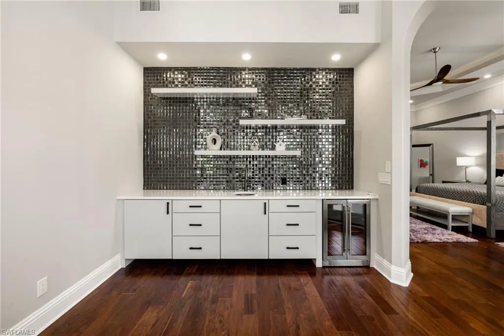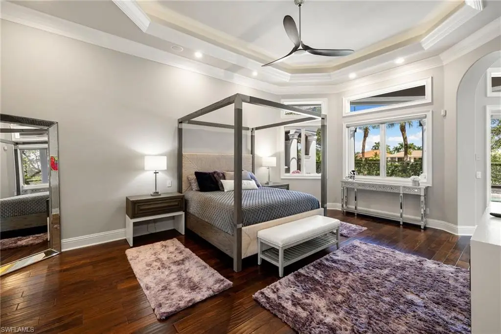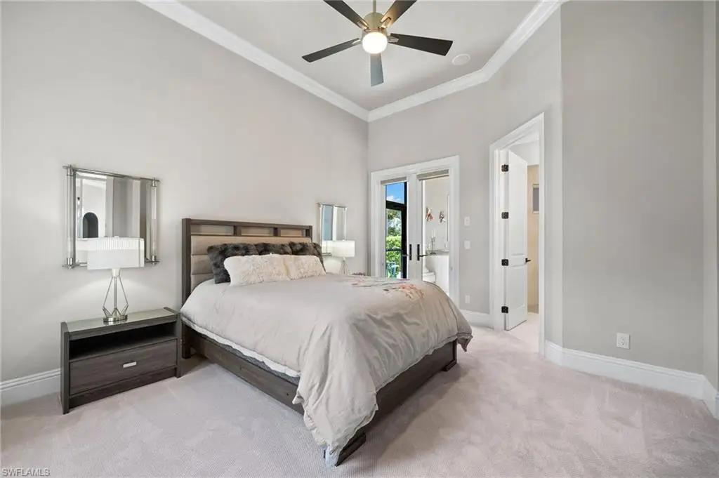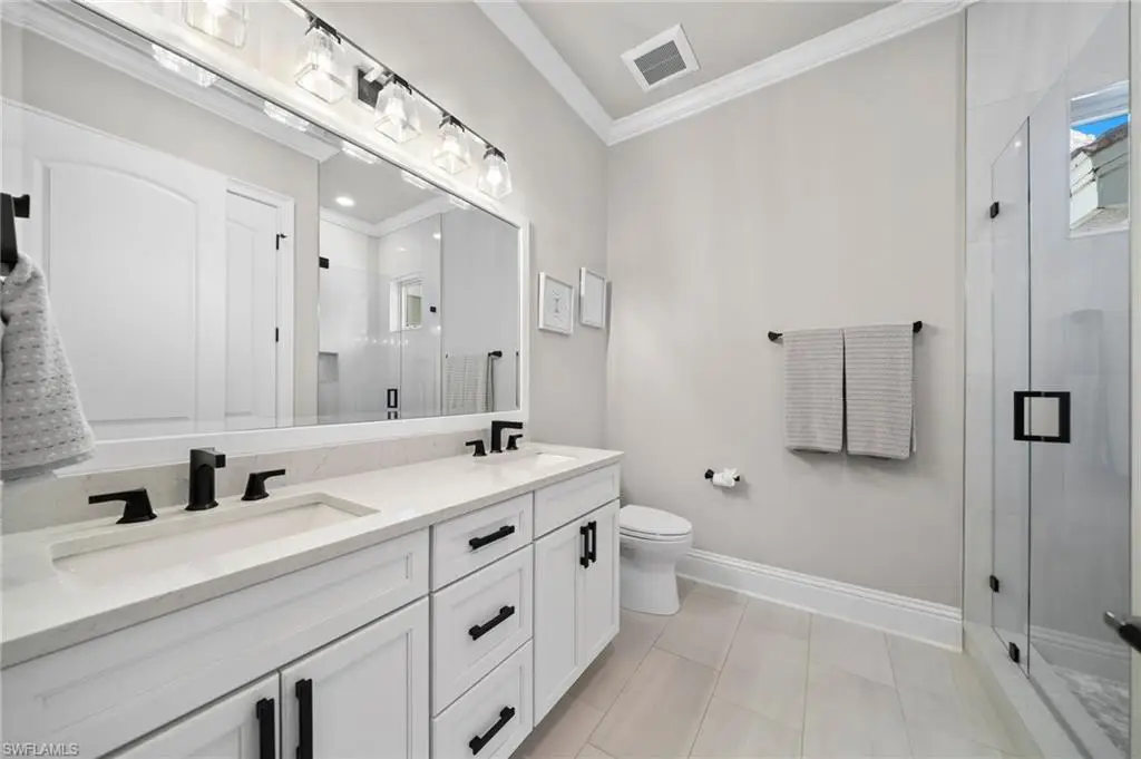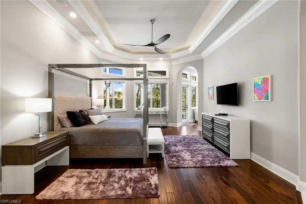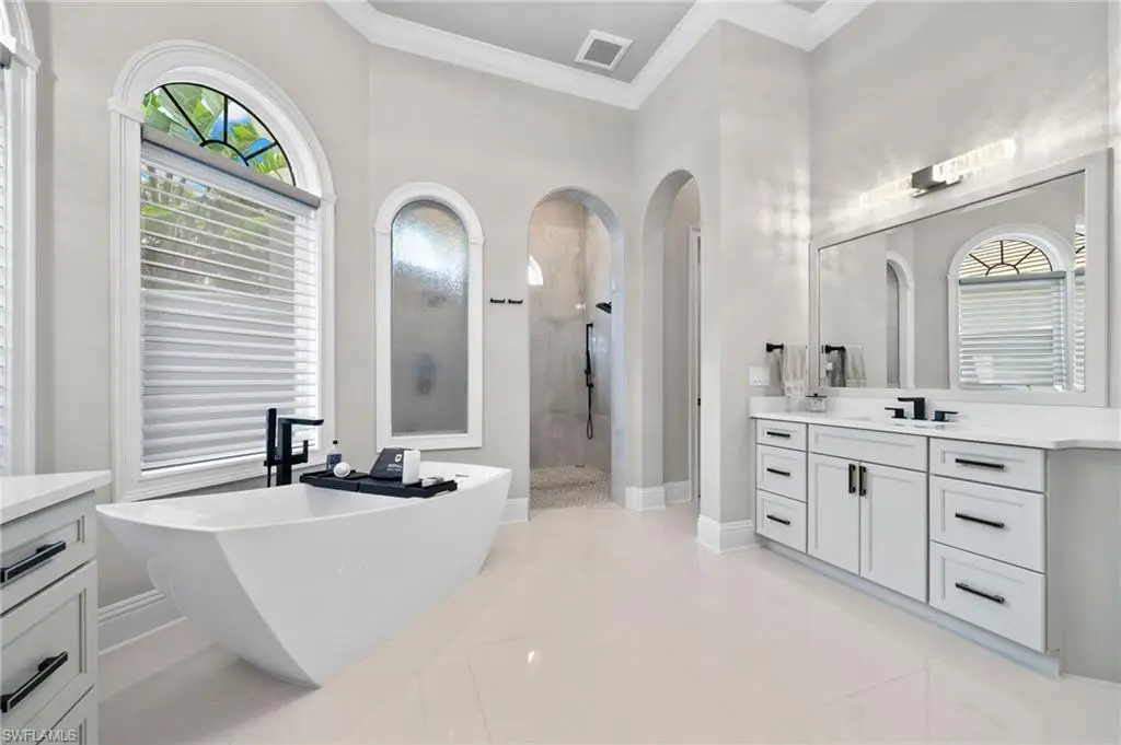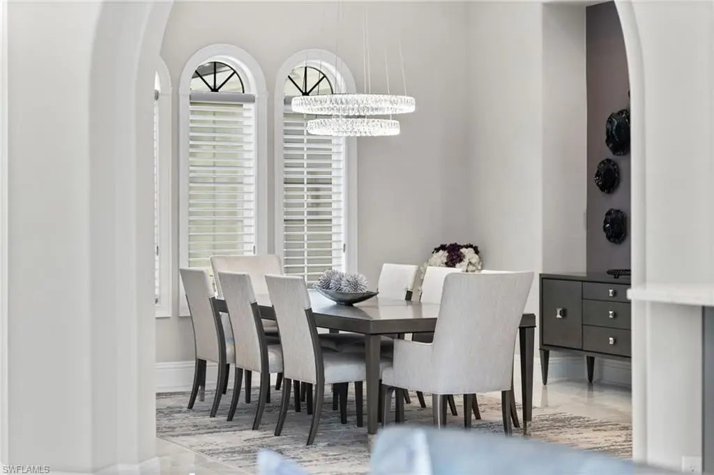 Welcome to this magnificent custom estate in Shadow Wood at The Brooks, where timeless design meets modern luxury. Spanning two floors of elevated living, this home has been meticulously updated inside and out over the past three years, offering the perfect blend of sophistication, comfort, and functionality. Set on a premier golf course lot with tranquil lake views, this residence features over 5,300 sq ft of air-conditioned living space and an exceptional outdoor lifestyle - complete with three verandas, a cozy fireplace, summer kitchen, and a resort-style pool and spa. All exterior elements have been refreshed or replaced, including the roof, driveway, front porch, pool equipment, screen enclosure, outdoor tile, landscape lighting, and irrigation. The outdoor living areas are fully integrated with smart features, including app-controlled pool systems, exterior security cameras, and smart garage openers. Inside, the home is just as impressive. The oversized kitchen has been updated with refinished cabinetry, new custom doors, and commercial-grade Sub-Zero and Wolf appliances, along with a large center island ideal for gathering. A stylish wet bar opens to the formal living room, while the adjacent dining room offers elegant space for entertaining. The family room's 90-degree zero-edge sliders disappear to reveal seamless access to the outdoor living area, creating a true indoor-outdoor experience. The first floor also includes a spacious study, powder bath, guest suite with private pool bath, and a generous laundry room. The primary suite is a retreat of its own, complete with a morning room and coffee bar, his-and-hers walk-in closets, and a spa-inspired bath with walk-through shower and jetted Roman tub. Upstairs, a billiards room with full bar overlooks the living space below, and two additional guest suites - each with private baths and balcony access - offer comfort and privacy for visitors. Throughout the home, you'll find all-new tile flooring (no overlays), fully renovated bathrooms, Emtek hardware, updated lighting, power shades, Lutron lighting controls, beverage coolers, and ice makers - all lightly used and beautifully maintained. Furnishings are included, with everything less than three years old. This is luxury living redefined - where every detail has been considered, and every finish speaks to quality.