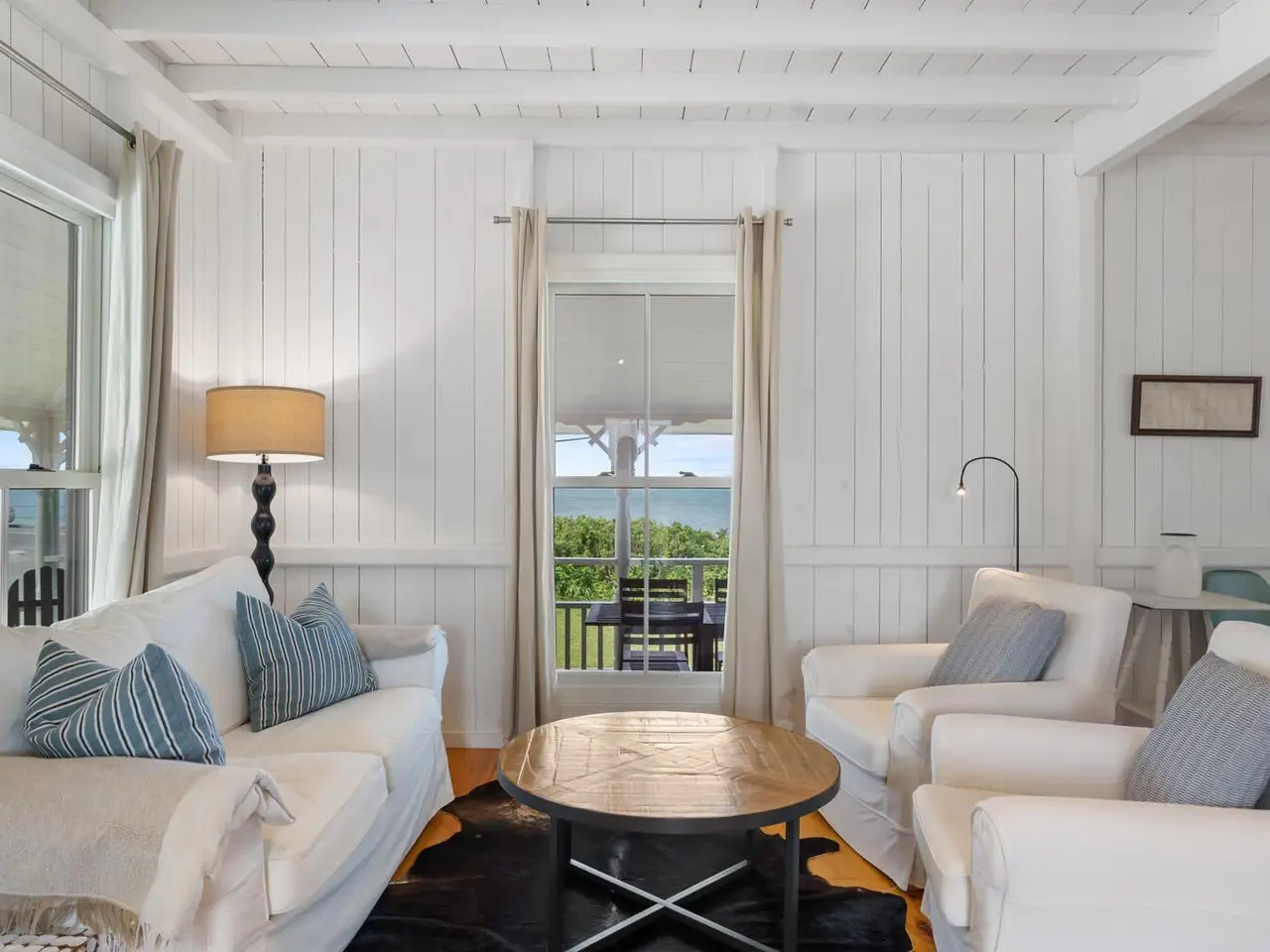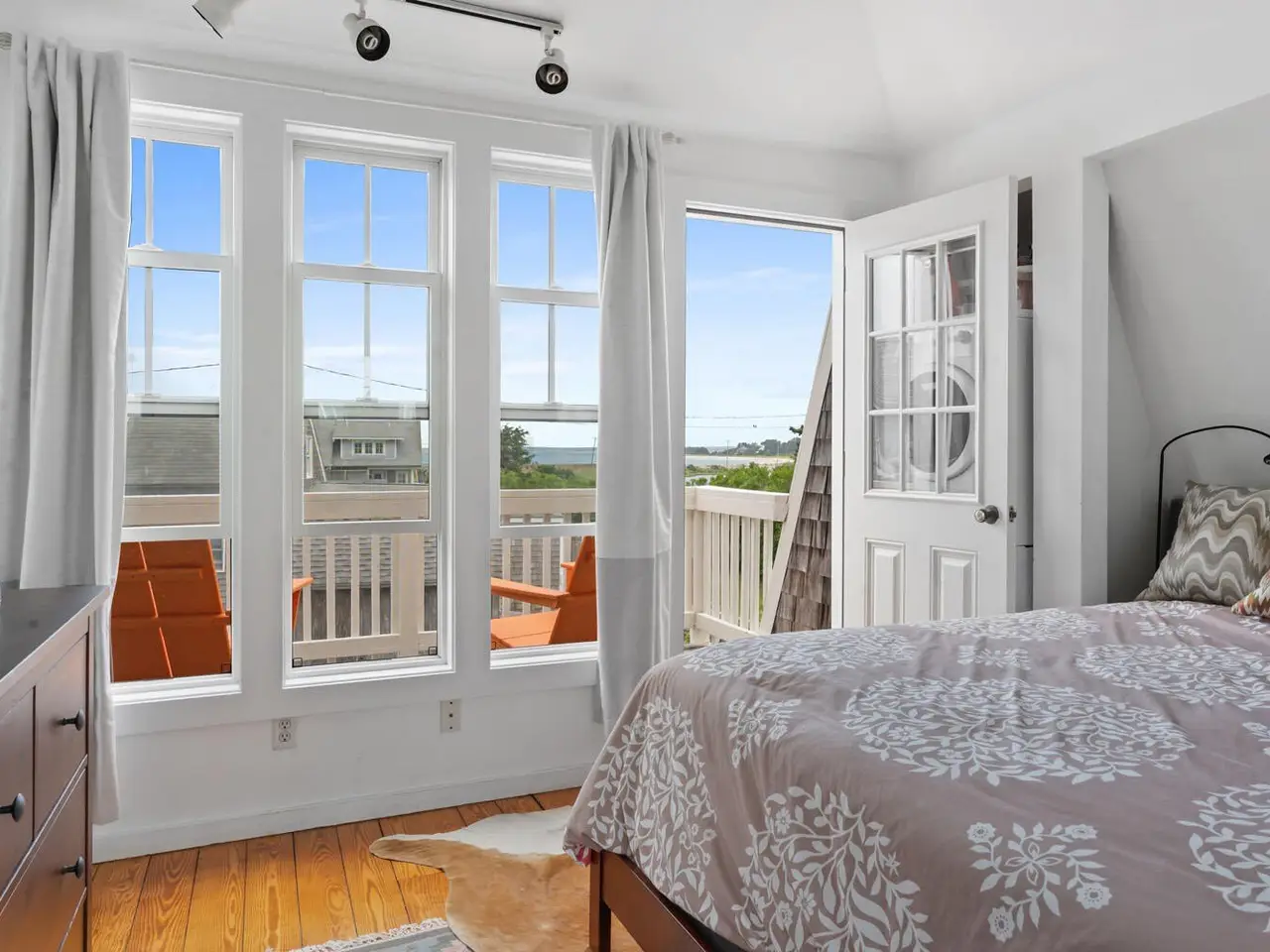 With a striking presence overlooking Nantucket Sound and just moments from the vibrant pulse of downtown, this distinctive compound is infused with a laid-back West Coast spirit while honoring the vintage charm of Oak Bluffs. Airy and effortlessly elegant, the four-bedroom main house has been masterfully updated, introducing refined, contemporary comforts, designed for every season. Tucked to the rear of the property, a private guest house-affectionately known as The Nest-has undergone a similar transformation and offers a private escape. Adjacent to the main home, the charming bunk house completes the ensemble, perfectly complementing this unique and inviting expansive compound. Though the wraparound porch invites you to linger with its endless ocean views, the nearby beaches, boutique shops, acclaimed restaurants, and the contagious energy of Circuit Avenue and the Harbor are all steps away, offering something for everyone to enjoy. For those seeking flexibility, the home's established rental history further highlights the desirability of both the property and its coveted location. An exciting opportunity to own in one of Oak Bluff's iconic settings! The Nest is a 616-square-foot guest house with a private deck, an outdoor shower, and a parking area. The living space is located on the first floor and has a full bath. The upstairs bedroom, with a private balcony, overlooks Farm Pond to Nantucket Sound. The Lilac House - this fun bunk house, perfect for the younger generation, is open-concept, has a full bath, front deck with waterviews, and a private outdoor shower and deck.