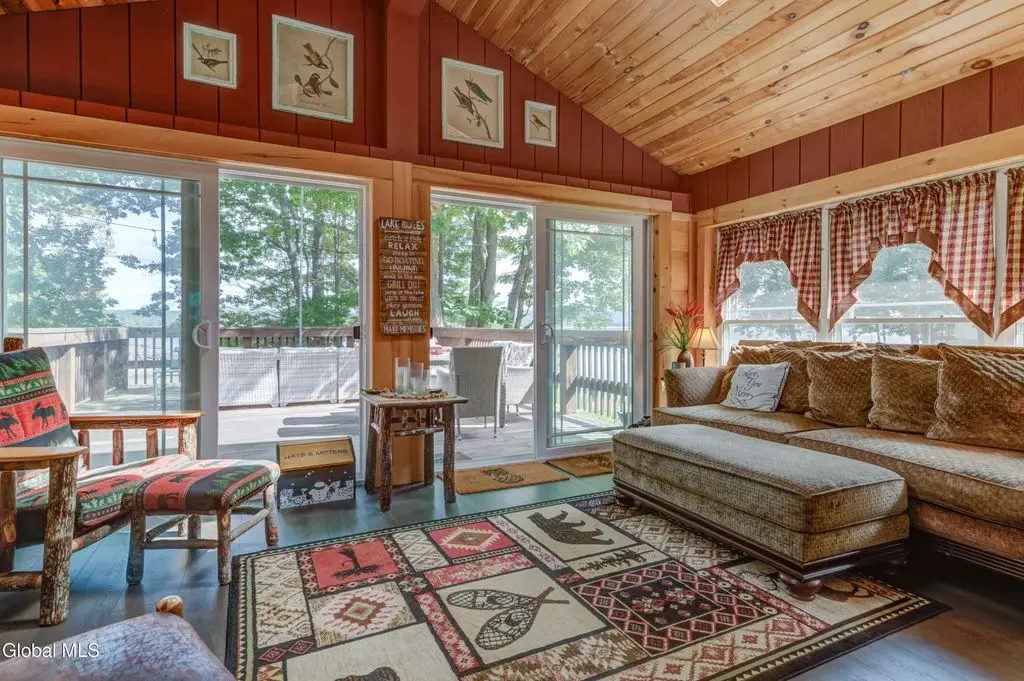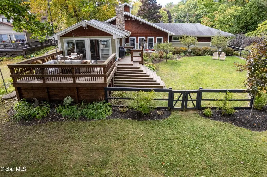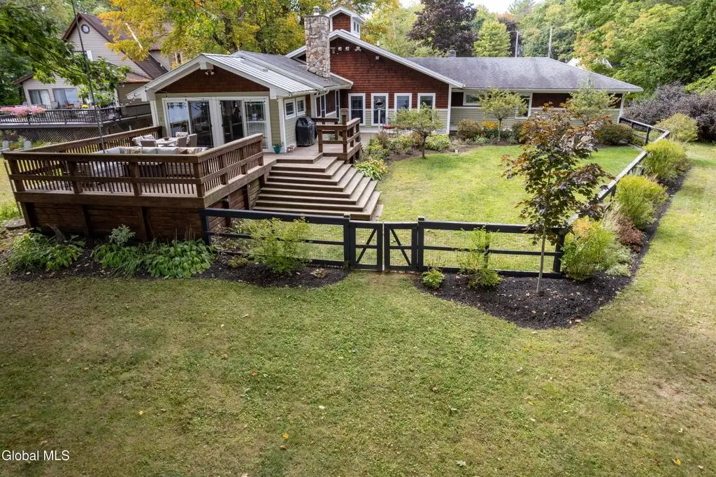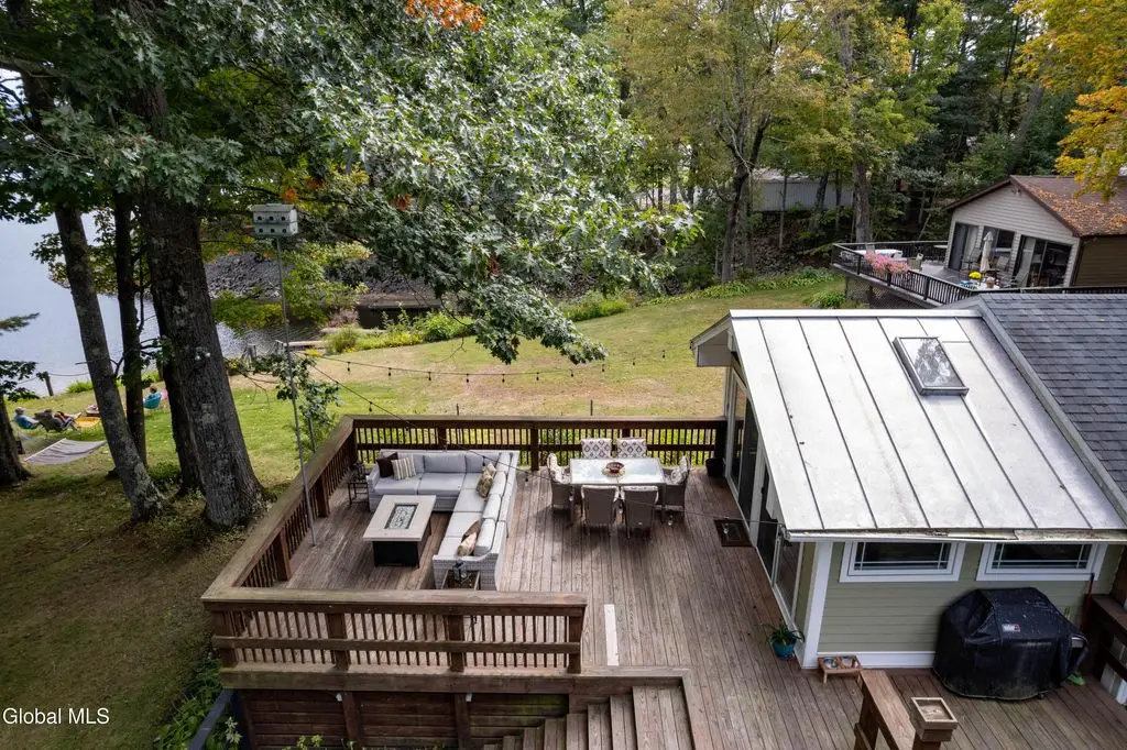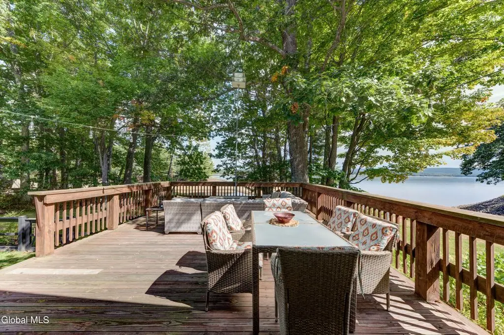 Enjoy year round lakeside living with 112' of HRBRRD lake permit on Great Sacandaga Lake with deep water for boating. This home was fully gutted and redone recently with tasteful updates throughout. It offers 2 spacious bedrooms, one facing the lake. The family room could easily be changed into a 3rd bedroom with a fireplace by adding two sets of doors. The kitchen shines with cherry cabinetry and soapstone countertops, adding warmth and ambiance to the great room. The living room, dining area, main bedroom, and enclosed porch all overlook the lake. The wide plank pine floors add to the warmth of the house and cozying up to the fireplaces or propane stove is perfect for taking the chill out. Step outside on the open deck for gorgeous views of the lake and mountains. This beautifully finished lake house is move-in ready. Just pack a bag and start enjoying the spacious yard and deck which are perfect for entertaining. Hop on a snowmobile or ice fish and enjoy the GSL year round.