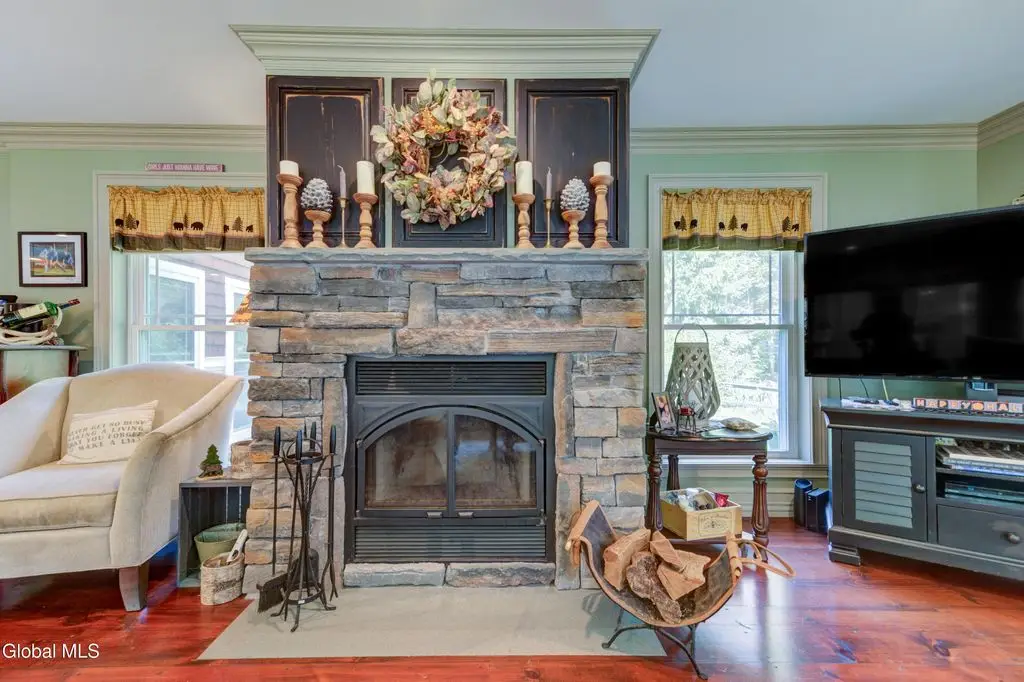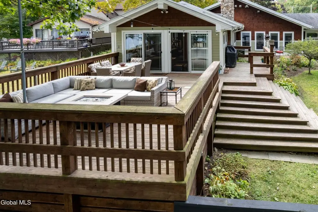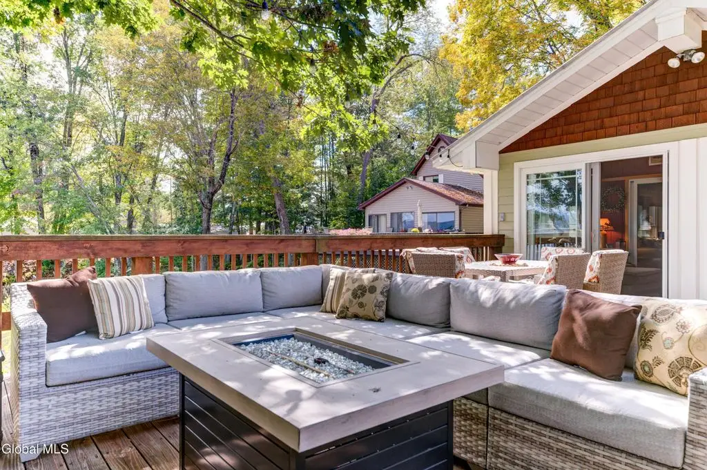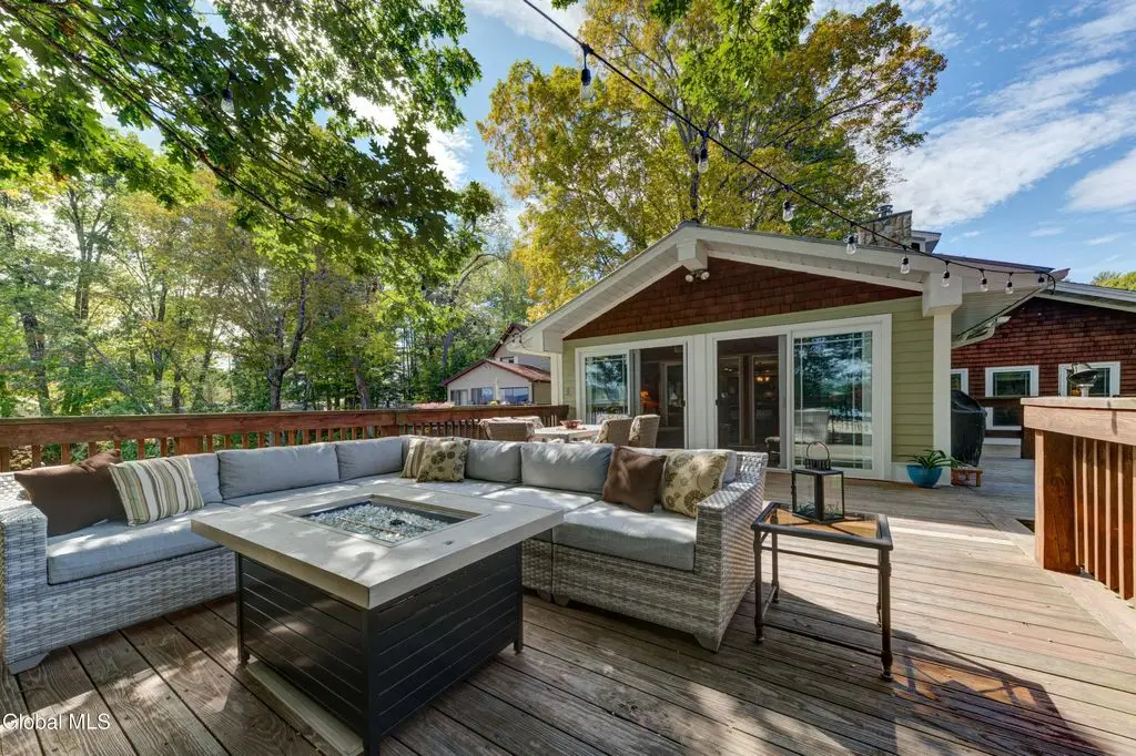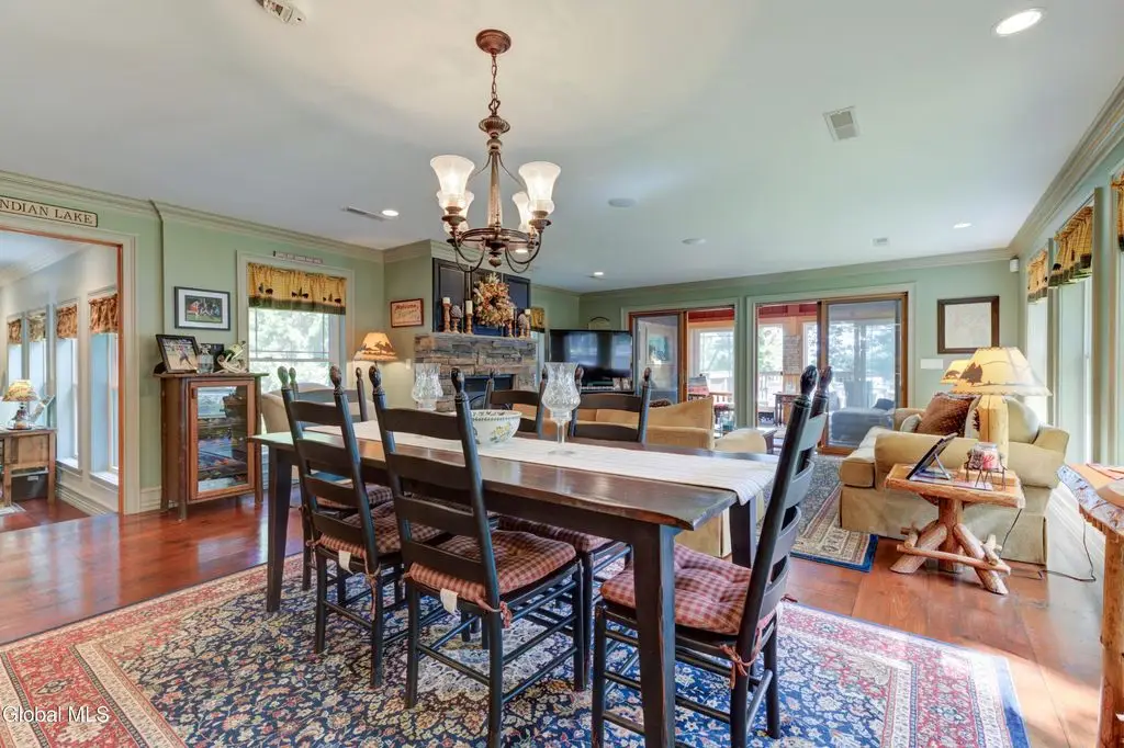 Enjoy year round lakeside living with 112' of HRBRRD lake permit on Great Sacandaga Lake with deep water for boating. This home was fully gutted and redone recently with tasteful updates throughout. It offers 2 spacious bedrooms, one facing the lake. The family room could easily be changed into a 3rd bedroom with a fireplace by adding two sets of doors. The kitchen shines with cherry cabinetry and soapstone countertops, adding warmth and ambiance to the great room. The living room, dining area, main bedroom, and enclosed porch all overlook the lake. The wide plank pine floors add to the warmth of the house and cozying up to the fireplaces or propane stove is perfect for taking the chill out. Step outside on the open deck for gorgeous views of the lake and mountains. This beautifully finished lake house is move-in ready. Just pack a bag and start enjoying the spacious yard and deck which are perfect for entertaining. Hop on a snowmobile or ice fish and enjoy the GSL year round.