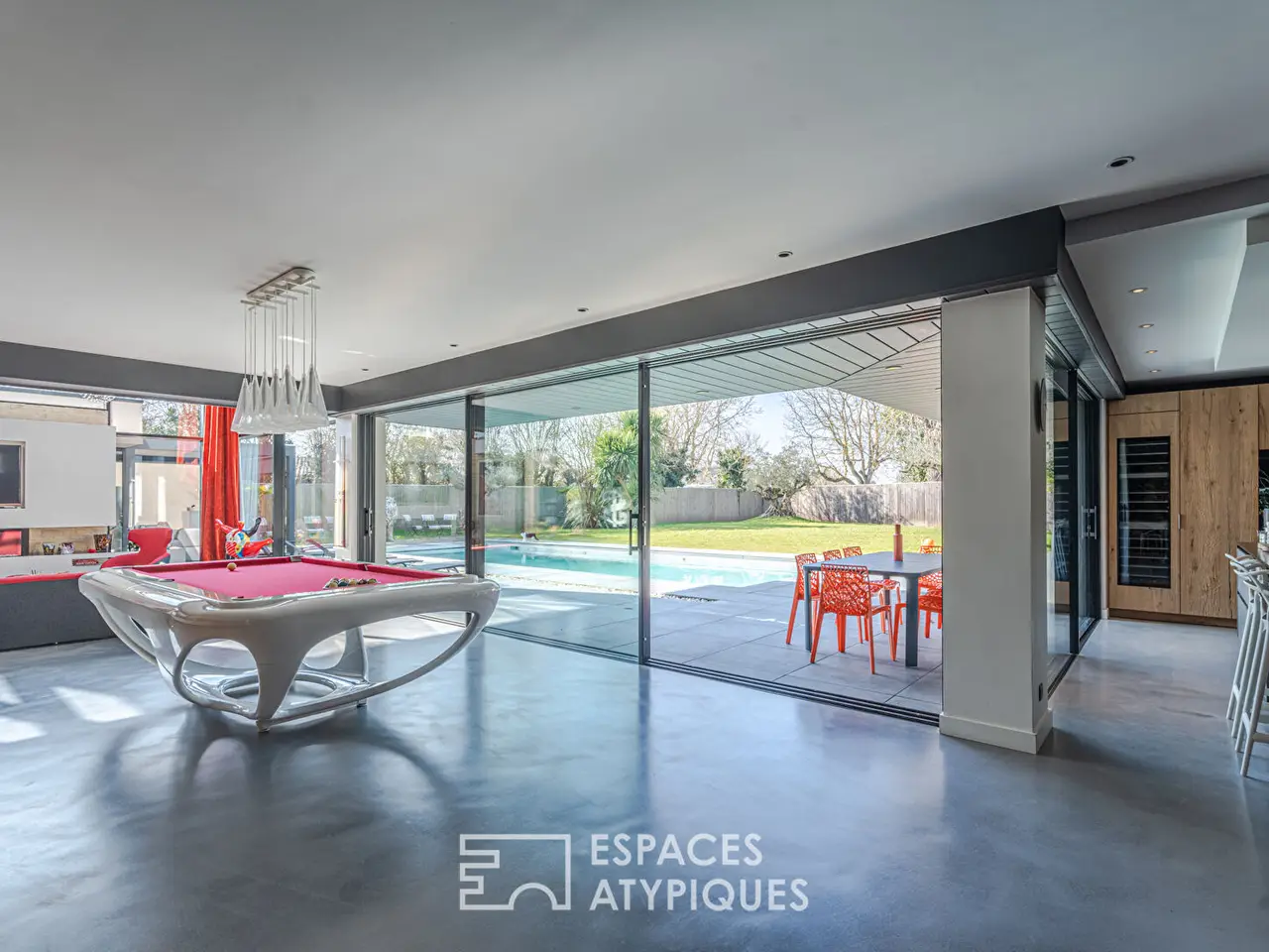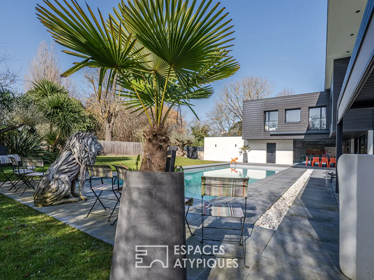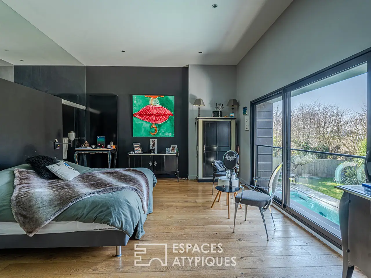 It is less than 10 minutes from Caen, on a wooded and landscaped plot of 1444 sqm that this superb Californian villa of 310 sqm built in 2016 is located. A beautiful entrance with storage, opens onto a sumptuous and bright living room of more than 100 sqm, with a designer fireplace, a beautiful high ceiling and large matte black bay windows. In its extension opens a fully equipped and functional kitchen with a central island and an exceptional view of the south-facing swimming pool. Also on the ground floor, a dining room, a superb closed wine cellar as well as a 27 sqm cinema room, A beautiful polished concrete staircase leads us to three beautiful bedrooms, one of which has its dressing room, its bathroom and a view of the swimming pool. A beautiful bathroom, an office space with beautiful storage cupboards complete this level. In the extension, a studio with its shower room and toilet. This exceptional place also offers two garages that can accommodate three vehicles and a laundry room. Its exceptional volumes, daily brightness, a beautiful ceiling height, its 5 X 13 swimming pool and its quiet grounds make this property a unique and magical place with its added Japanese space. Photos and complete file on certified request. ENERGY CLASS: B / CLIMATE CLASS: C Estimated average amount of annual energy expenditure for standard use, established from energy prices on January 1, 2024: EUR1,431. Information on the risks to which this property is exposed is available on the Georisques website: www.georisques.gouv.fr Cherryl Tirapu 06.08.30.44.38, commercial agent EI - RSAC 524 684 859 CaenREF. 9936Additional information* 7 rooms* 4 bedrooms* 1 bathroom* 2 shower rooms* Floor : 1* 1 floor in the building* Outdoor space : 1444 SQM* Property tax : 2 447 €Energy Performance CertificatePrimary energy consumptionb : 79 kWh/m2.yearHigh performance housing*A*79kWh/m2.year14*kg CO2/m2.yearB*C*D*E*F*GExtremely poor housing performance* Of which greenhouse gas emissionsc : 14 kg CO2/m2.yearLow CO2 emissions*A*B*14kg CO2/m2.yearC*D*E*F*GVery high CO2 emissionsAgency feesThe fees include VAT and are payable by the vendorMediatorMediation Franchise-Consommateurswww.mediation-franchise.com29 Boulevard de Courcelles 75008 ParisInformation on the risks to which this property is exposed is available on the Geohazards website : www.georisques.gouv.fr