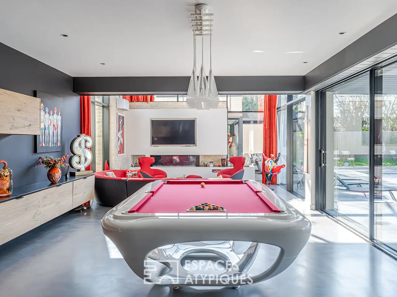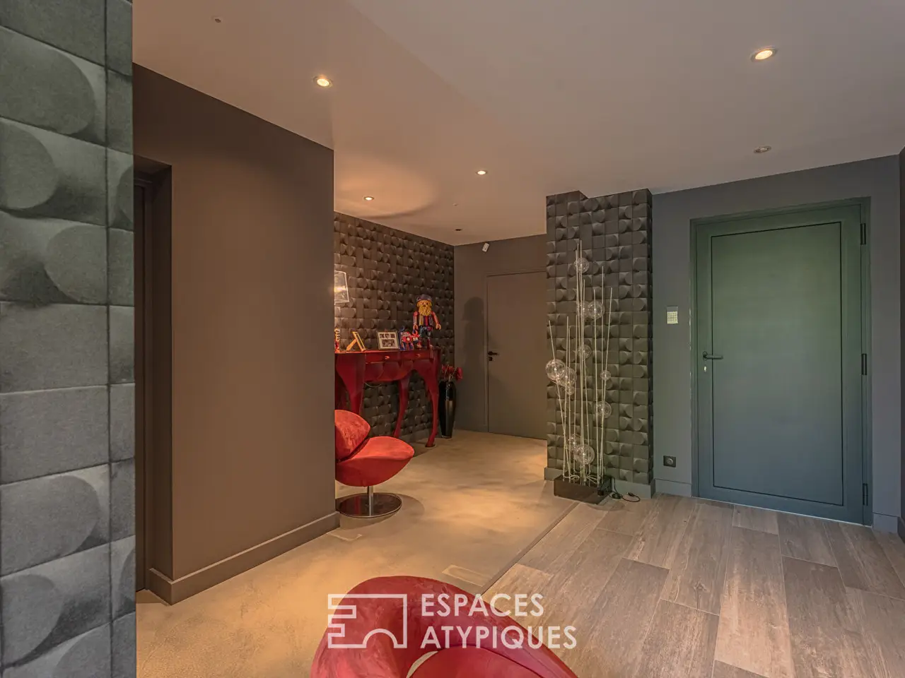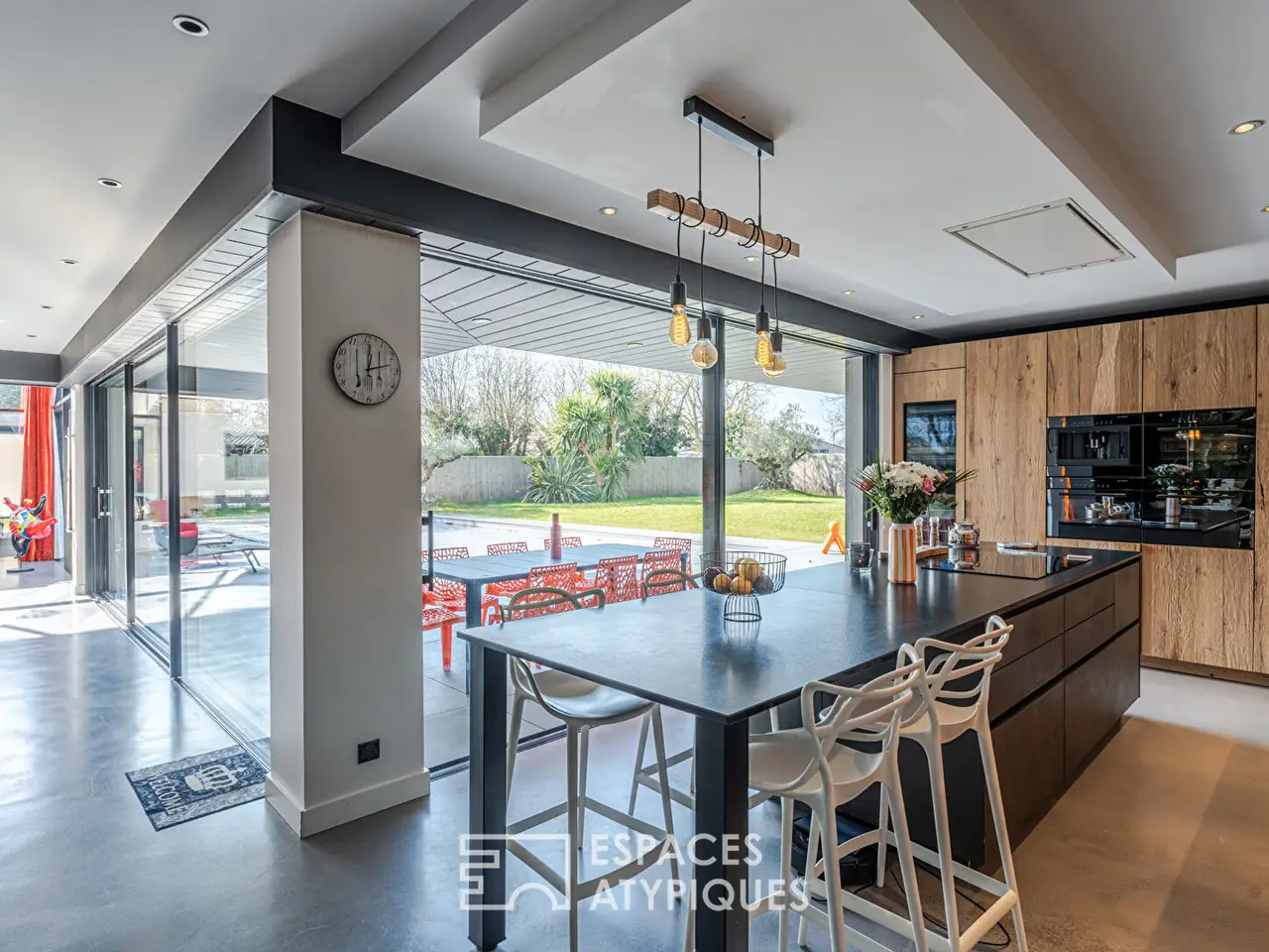 It is less than 10 minutes from Caen, on a wooded and landscaped plot of 1444 sqm that this superb Californian villa of 310 sqm built in 2016 is located. A beautiful entrance with storage, opens onto a sumptuous and bright living room of more than 100 sqm, with a designer fireplace, a beautiful high ceiling and large matte black bay windows. In its extension opens a fully equipped and functional kitchen with a central island and an exceptional view of the south-facing swimming pool. Also on the ground floor, a dining room, a superb closed wine cellar as well as a 27 sqm cinema room, A beautiful polished concrete staircase leads us to three beautiful bedrooms, one of which has its dressing room, its bathroom and a view of the swimming pool. A beautiful bathroom, an office space with beautiful storage cupboards complete this level. In the extension, a studio with its shower room and toilet. This exceptional place also offers two garages that can accommodate three vehicles and a laundry room. Its exceptional volumes, daily brightness, a beautiful ceiling height, its 5 X 13 swimming pool and its quiet grounds make this property a unique and magical place with its added Japanese space. Photos and complete file on certified request. ENERGY CLASS: B / CLIMATE CLASS: C Estimated average amount of annual energy expenditure for standard use, established from energy prices on January 1, 2024: EUR1,431. Information on the risks to which this property is exposed is available on the Georisques website: www.georisques.gouv.fr Cherryl Tirapu 06.08.30.44.38, commercial agent EI - RSAC 524 684 859 CaenREF. 9936Additional information* 7 rooms* 4 bedrooms* 1 bathroom* 2 shower rooms* Floor : 1* 1 floor in the building* Outdoor space : 1444 SQM* Property tax : 2 447 €Energy Performance CertificatePrimary energy consumptionb : 79 kWh/m2.yearHigh performance housing*A*79kWh/m2.year14*kg CO2/m2.yearB*C*D*E*F*GExtremely poor housing performance* Of which greenhouse gas emissionsc : 14 kg CO2/m2.yearLow CO2 emissions*A*B*14kg CO2/m2.yearC*D*E*F*GVery high CO2 emissionsAgency feesThe fees include VAT and are payable by the vendorMediatorMediation Franchise-Consommateurswww.mediation-franchise.com29 Boulevard de Courcelles 75008 ParisInformation on the risks to which this property is exposed is available on the Geohazards website : www.georisques.gouv.fr