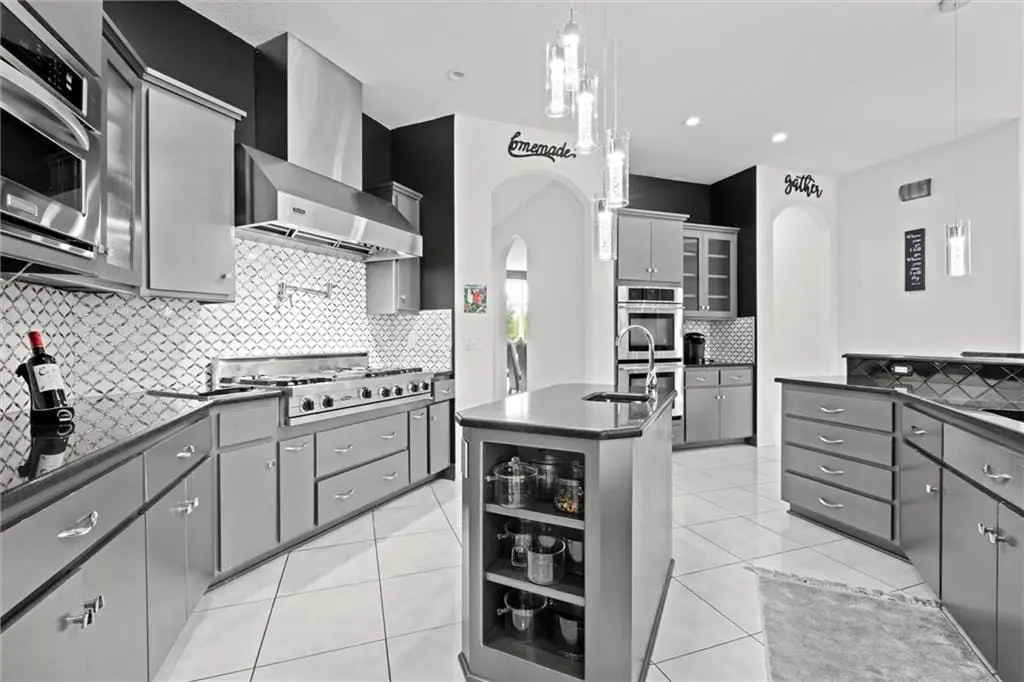 Chef's kitchen with Viking Refrigerator and Dual Islands