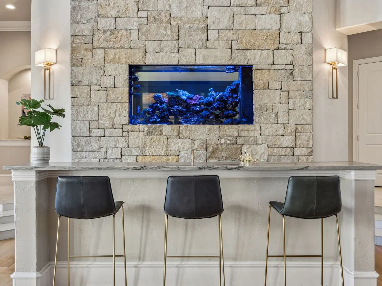 Welcome to this stunning West Plano home, a cul-de-sac lot with an expansive backyard oasis that sits on a greenbelt with unparalleled views. Recently remodeled and full of upgrades and unique touches - truly move-in ready. At entry, guests are greeted with a dramatic great room showcasing soaring ceilings, sweeping windows looking to the backyard, and a striking aquarium. Office-library combo is the perfect space for work or relaxation, with built-ins, windows culminating in an eye-catching arch, and charming winding staircase leading to library. Elegant dining room is perfect for entertaining, with barrel ceilings, butler's pantry, and bay windows. Gourmet kitchen is a chef's dream, with built-in Viking appliances, like commercial-grade gas range and vent, double dishwashers, three ovens, and walk-in pantry. Hosting is a delight, with waterfall-edge quartzite countertops, oversized island, breakfast bar, and sunny breakfast nook with windows overlooking lush outdoor landscaping. Primary suite is an enormous haven with barrel ceilings, sitting area surrounded by bay windows, and gas fireplace. Spa-like primary bath has dual vanities, separate shower with body sprays, and freestanding jetted garden tub with uplighting. Media and game room are the perfect combo to host, with wet bar, space for pool table, and built-ins. Secondary bedrooms are all generously sized, with natural light and ensuite baths. Any of the rooms could be converted to an exercise room or additional office. Backyard oasis features sparkling saltwater pool and spa with waterfall, and oversized patio that boasts a fireplace and outdoor kitchen, complete with built-in grill. Further in the yard is a peaceful nook with a koi pond. Other features include beautiful live oaks, bocce ball court, play yard, and firepit. This home is minutes away from high-end shopping and dining and a short drive to Legacy West, The Star, Stonebriar Country Club, The Clubs of Prestonwood, and 20 minutes to DFW Airport.