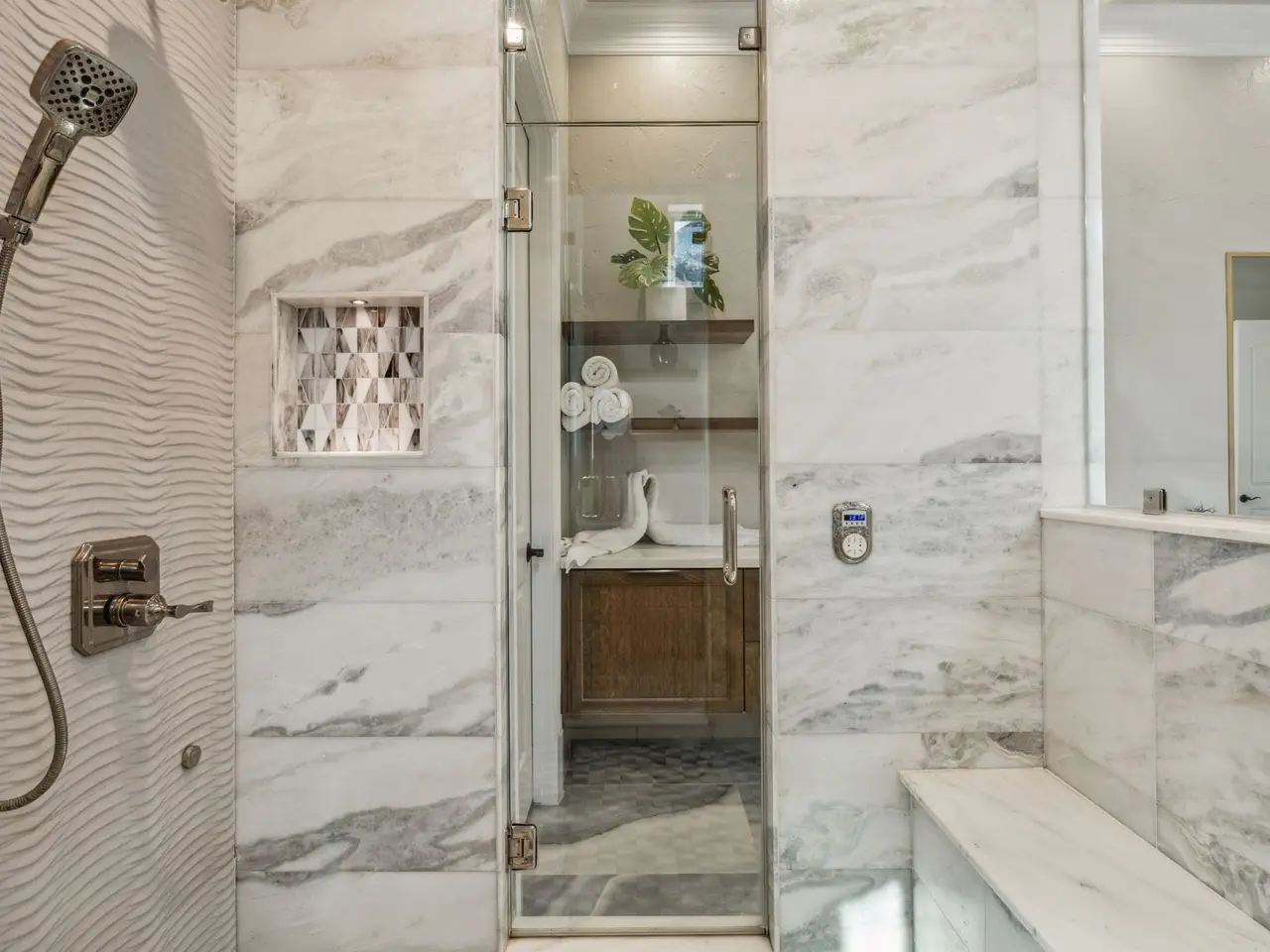 • Outdoor oasis with saltwater pool, spa, and fireplace
