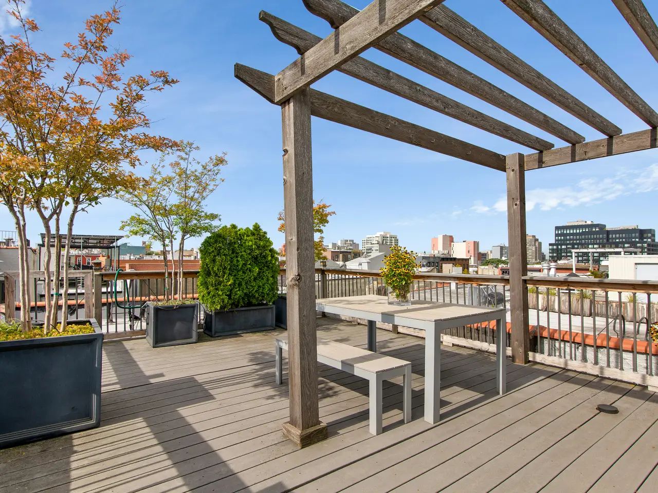 Spacious and Sunny Duplex with a Private Roof Deck in Prime North Slope! Spread out in your modern renovated 3 bed/2 bath duplex with a beautifully landscaped roof deck off vibrant 5th Avenue. Three flights up to your modern renovated, lofty and peaceful, rear-facing retreat with over 1,550 approx interior sqft and an additional approx 400 exterior roof space. Southern and western breezes flow through 12 exposures, and appreciate newly refinished oak hardwood floors and high 10.5 soaring ceilings throughout. Entertain your guests from the grand living room with a designated dining area and custom built in bookshelves or dine al fresco on your private rooftop. The open modern windowed kitchen features a peninsula, custom cabinetry, quartz countertops and stainless appliances. The upstairs modern windowed bathroom has a shower stall and a convenient in-unit washer/dryer. Downstairs are three gracious bedrooms and a gorgeous modern windowed bathroom with a bathtub. The private landscaped roof deck with pergola and panoramic city views is literally the cherry-on-top! Cats are warmly welcomed but sorry no dogs. 12 Lincoln, a charming boutique 4-unit pre-war walkup, is self managed and offers spacious apartments and a private storage area for each unit in the basement. Enjoy the quintessential Park Slope experience, with seamless access to the lush greenery of Prospect Park and a lively array of dining and shopping options on 5th and 7th Avenues and Union Street. Transit is a cinch with the nearby access to 2/3/4/5/B/Q/R trains and the LIRR at Atlantic station. For health and well being, there are many local gyms, a lovely community garden just a few doors down and Union Market and the Food Coop just two short blocks away. This enchanting home is ready to welcome its new owners. Don't miss the chance to make it your own—schedule a showing today and explore all that this exceptional property has to offer in one of Brooklyn's most sought-after neighborhoods!