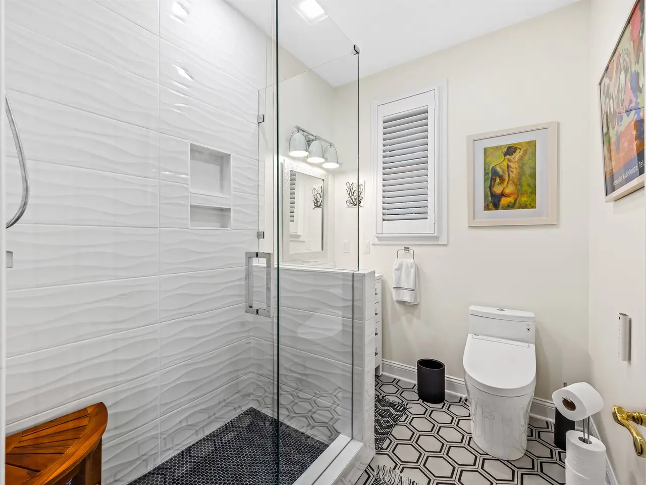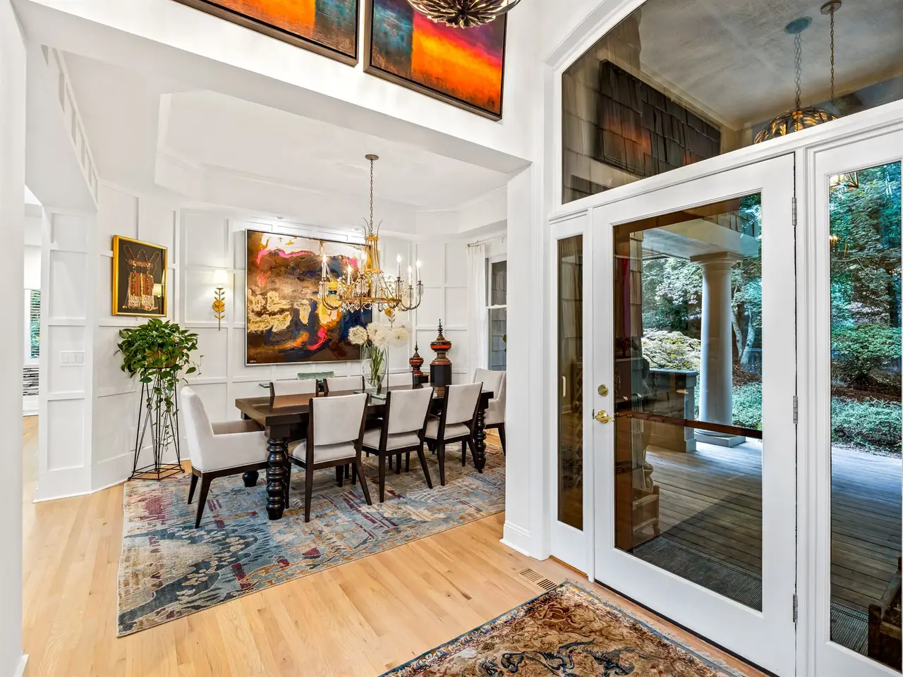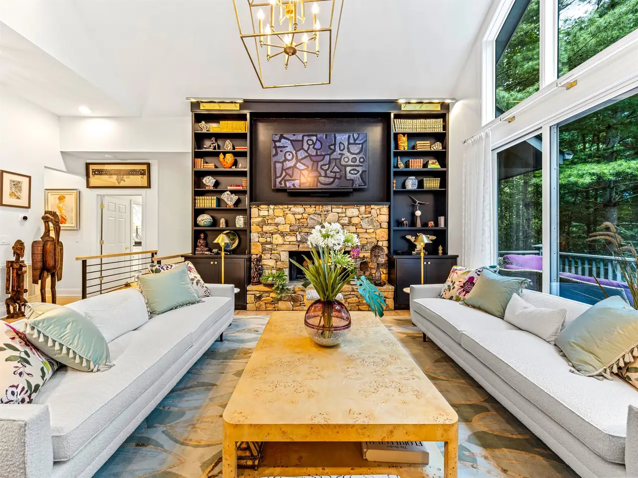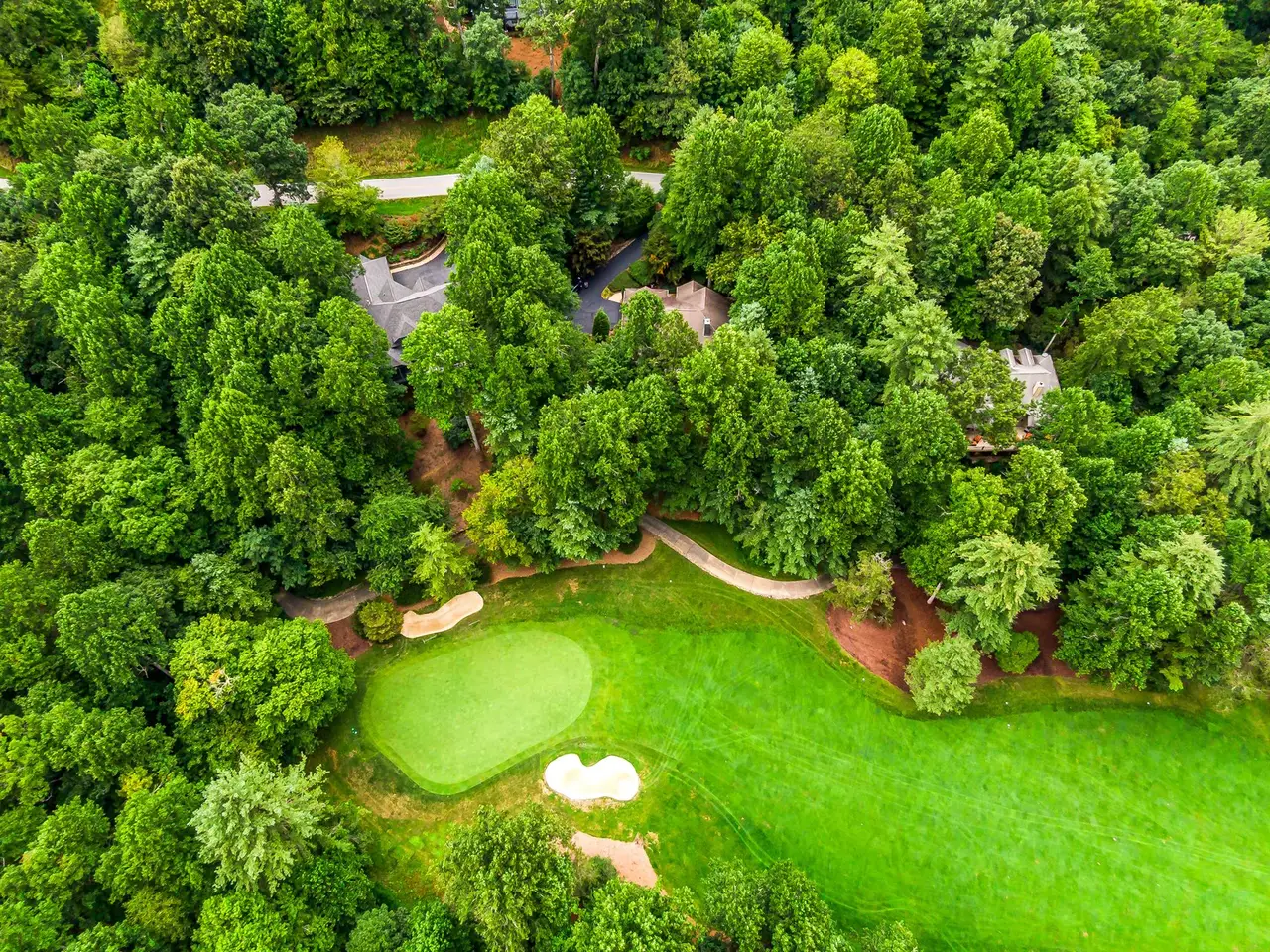 Nestled in Champion Hills above the 12th green, this artist's mountain retreat home pairs modern luxury with an eclectic, world-travel flair. Thoughtful updates and attention to detail bring comfort and style together. From the Samsung Frame TV on a hydraulic TV lift that preserves the aesthetic of the fireplace wall, Brazilian Quartzite countertops in the chef's eat-in kitchen to all the wood floors. The main level's soaring great room and primary suite offer ease of one-level living, while the terrace level is designed for both fun and function with a family room, office, guest suites, and a wet bar. Multiple porches and decks encourage life outdoors - morning coffee on the screened porch, evening wine on the open deck, or quiet afternoons on the covered terrace. Plush yet practical, with golf cart storage, workshop, and abundant space, this home invites you to live serenely in the Blue Ridge Mountains while only minutes from downtown Hendersonville.
