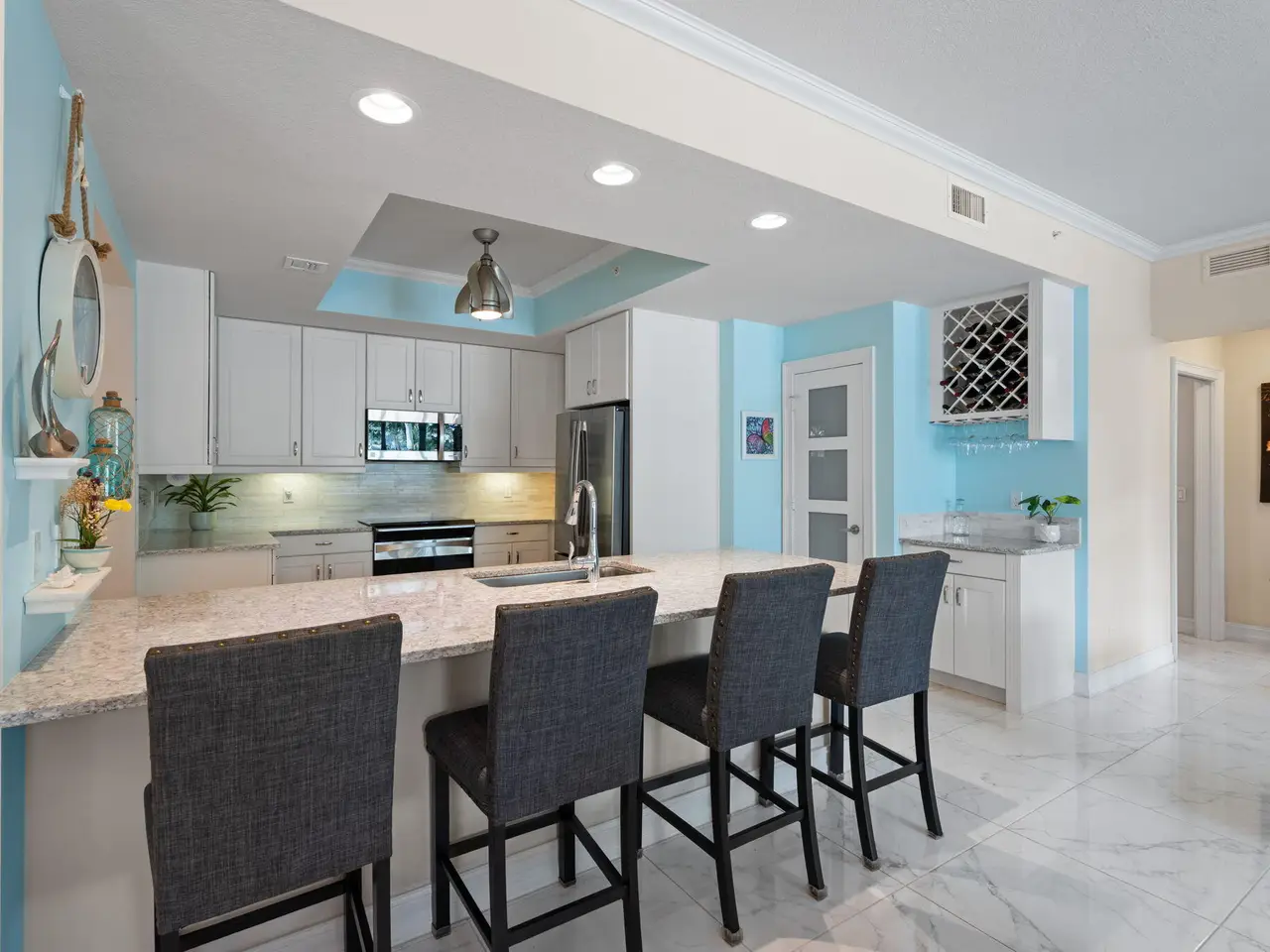 Step inside this elegant 3 bedroom 2.1 bathroom residence in Bay Colony and discover a thoughtfully designed 2015-built property with complete impact glass, two balconies with peaceful pool views, and a spacious owner's suite offering a walk-in closet, dual vanities, and its own private balcony retreat. The 3rd-floor setting provides privacy and convenience with secure building access, elevator service, and a welcoming private foyer. The property includes an air-conditioned storage unit and one covered carport space. Beyond your door, Bay Colony offers resort-style living with a private marina, paddleboard and kayak storage, tennis and pickleball courts, a clubhouse with fitness center, sparkling pool and spa, fire pit, and barbecue area. Perfectly located minutes from the ocean, golf, and dining, this home combines comfort, convenience, and the South Florida lifestyle.