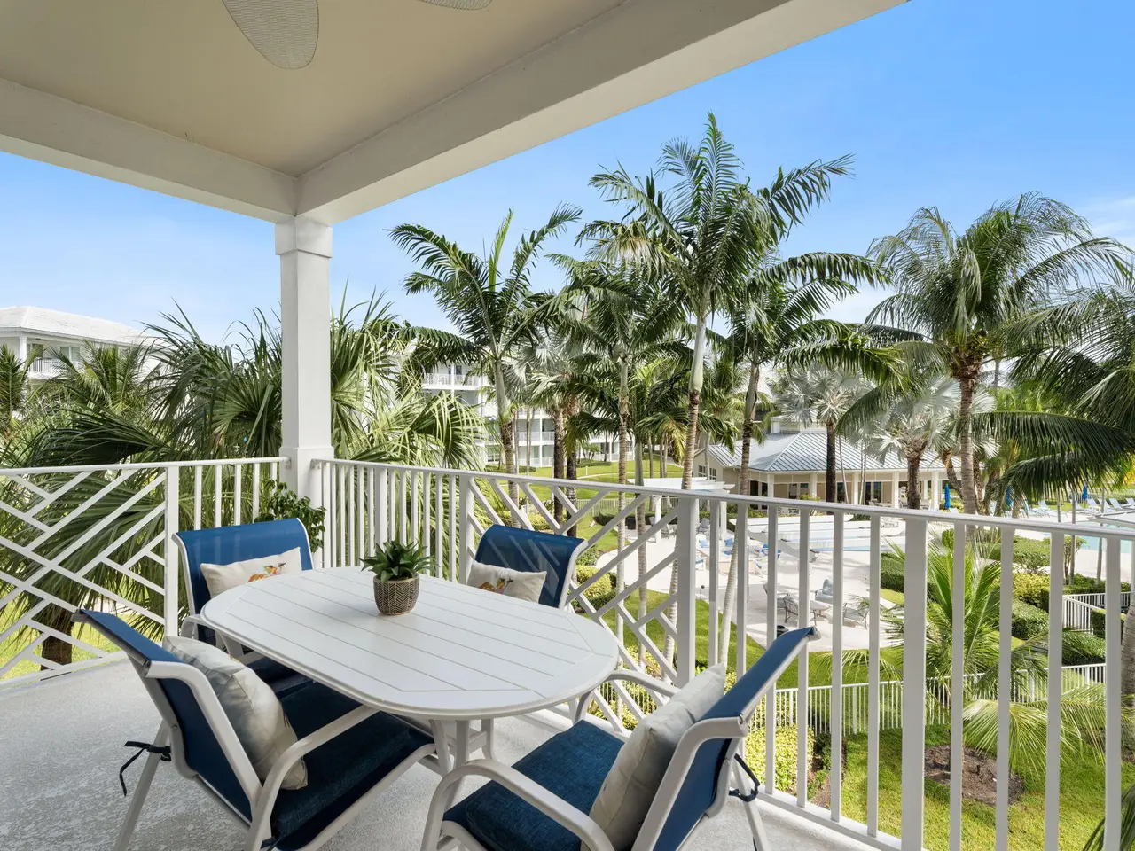 Two balconies with pool views