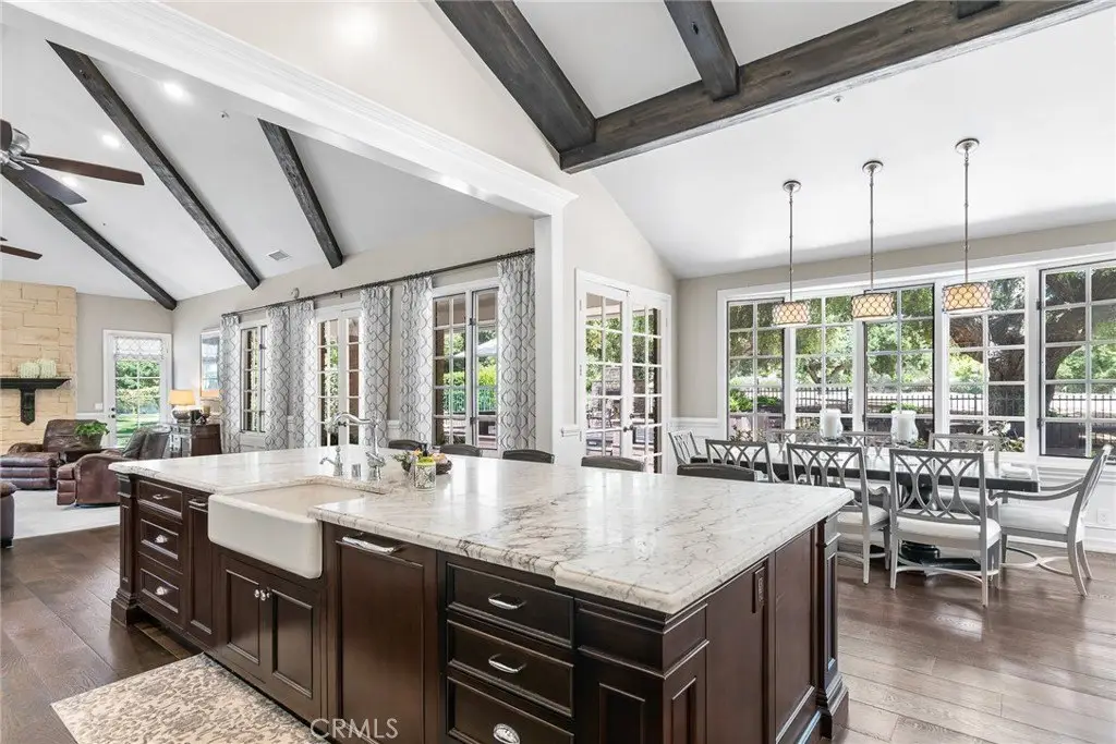 Welcome to 5135 Island Forest Place — a private sanctuary gracefully positioned along the serene sixth fairway of the esteemed North Ranch Country Club. This contemporary estate is a testament to architectural elegance and thoughtful design, encompassing over 5,100 square feet of living space. With five generously appointed bedrooms and five bathrooms, the home offers abundant room for both grand entertaining and quiet retreat. Two main-level bedrooms feature ensuite baths, affording exceptional privacy and comfort for family members or discerning guests. Set on over 260 feet of prime golf course frontage, the residence enjoys uninterrupted views of rolling fairways framed by mature oaks providing both visual splendor and a natural sense of seclusion. The expansive great room, crowned by soaring 16-foot ceilings, floods with natural light and offers an ideal setting for sophisticated gatherings, fireside reading, or peaceful reflection. Step outside to a resort-inspired backyard, where a shimmering pool and spa are embraced by lush landscaping, creating an intimate outdoor haven. Whether entertaining under the stars or savoring a quiet morning by the water, this space is designed to restore and inspire. Located on a tranquil cul-de-sac within the exclusive gated enclave of Island Forest—comprised of just 14 distinguished residences—this home offers the rare combination of security, privacy, and community. Low HOA dues add to the appeal of this elite setting. Enhancing the property’s value and lifestyle offering, a significant renovation of the North Ranch Country Club’s renowned golf courses is currently underway, promising an elevated playing experience and world-class amenities upon completion. Unlike other homes in the area, 5135 Island Forest Place is thoughtfully situated away from through-traffic, ensuring a sense of peace that is both rare and cherished, truly evoking the feel of a personal island retreat. Here, luxury meets tranquility in one of North Ranch’s most coveted addresses.