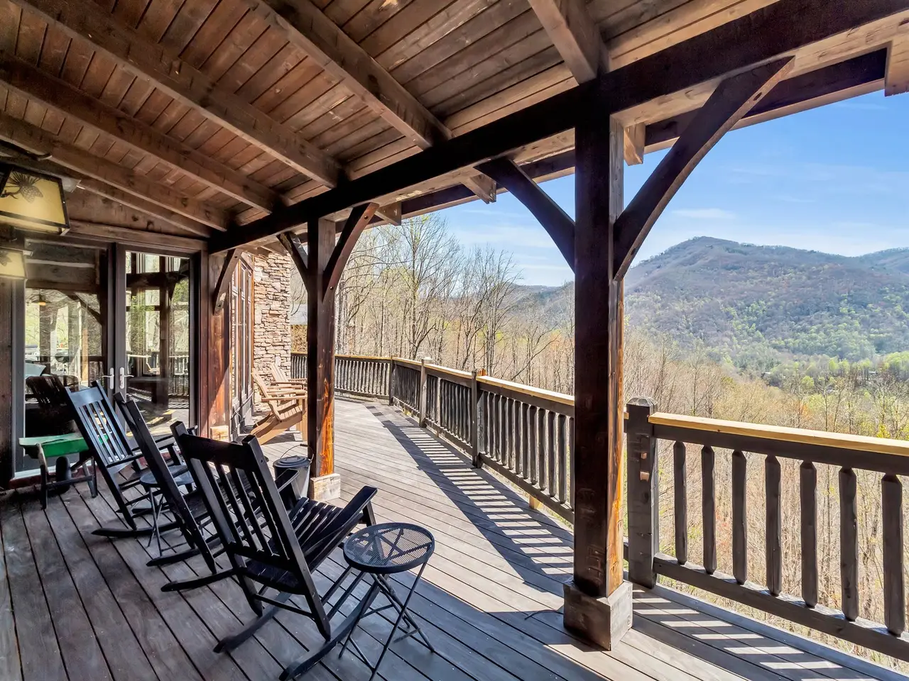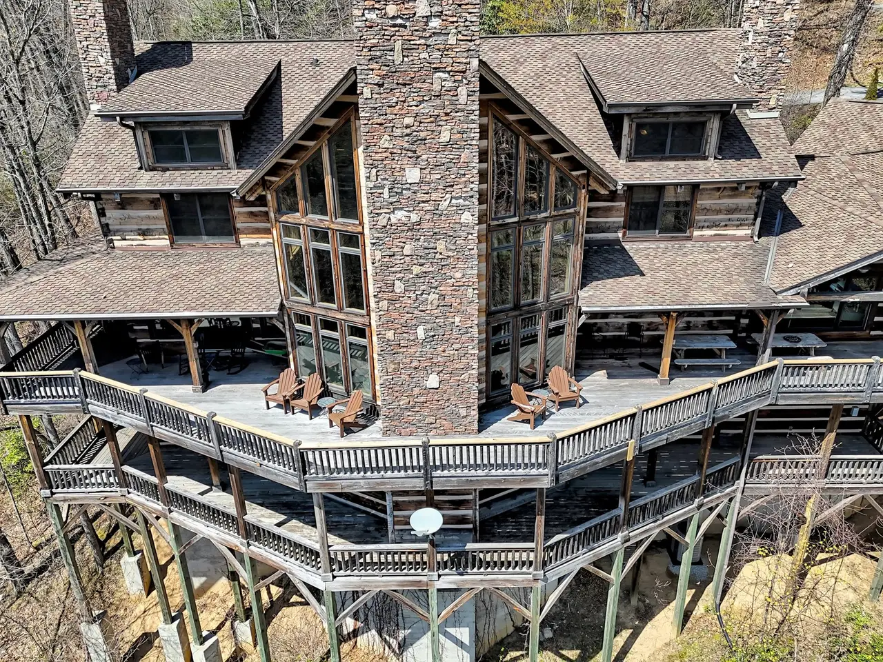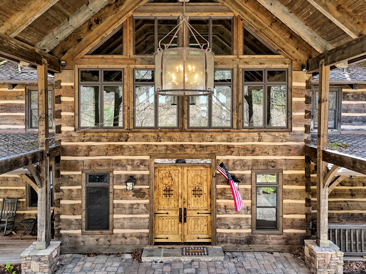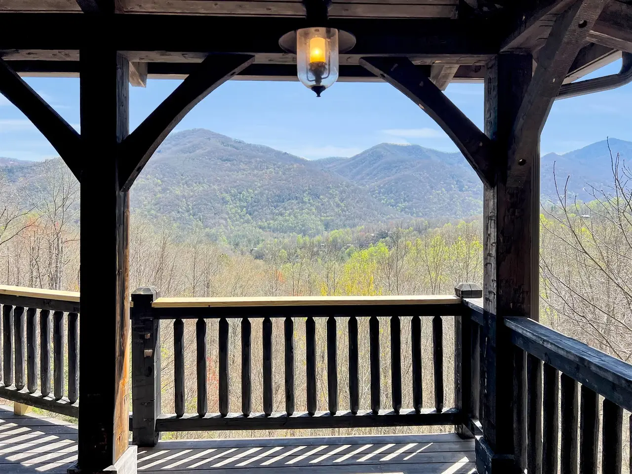 Discover this exquisite five bed/5.5 bath 8,300+ sqft log home on 2.11 ac. in the peaceful Scarlet Oaks sub-development located within 10 minutes from Maggie Valley CC and all its amenities. Immerse yourself in quintessential upscale mountain living in the open, airy floor plan with a private library bathed in natural light & centered around a stunning 29+ foot floor-to-ceiling custom stone fireplace. The kitchen has a large island with built-in wine rack, custom cabinets, granite counter tops with breakfast bar & custom appliances, with large dining area flows into great room with endless views. Many special features are found throughout this lovely home. The primary bedroom has a stone fireplace & lovely jet soaker tub with stone accents& walk in shower. The upper level has three bedrooms & two full baths and spacious open loft overlooking the expansive great room area. The basement level features a large family room with a beautiful stone fire place, two recreation rooms, bonus room, and full bath.