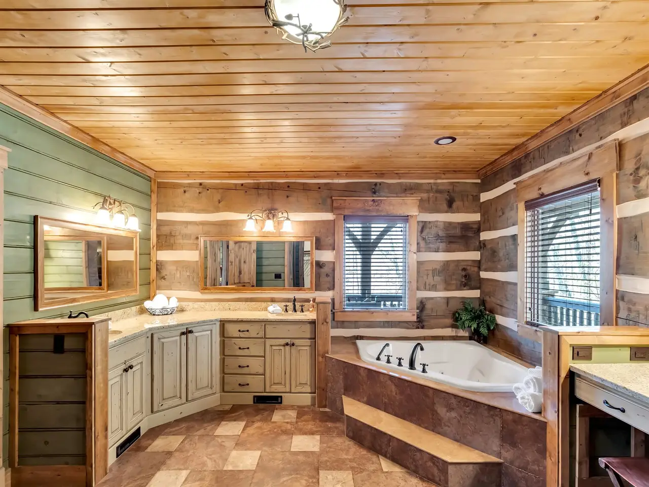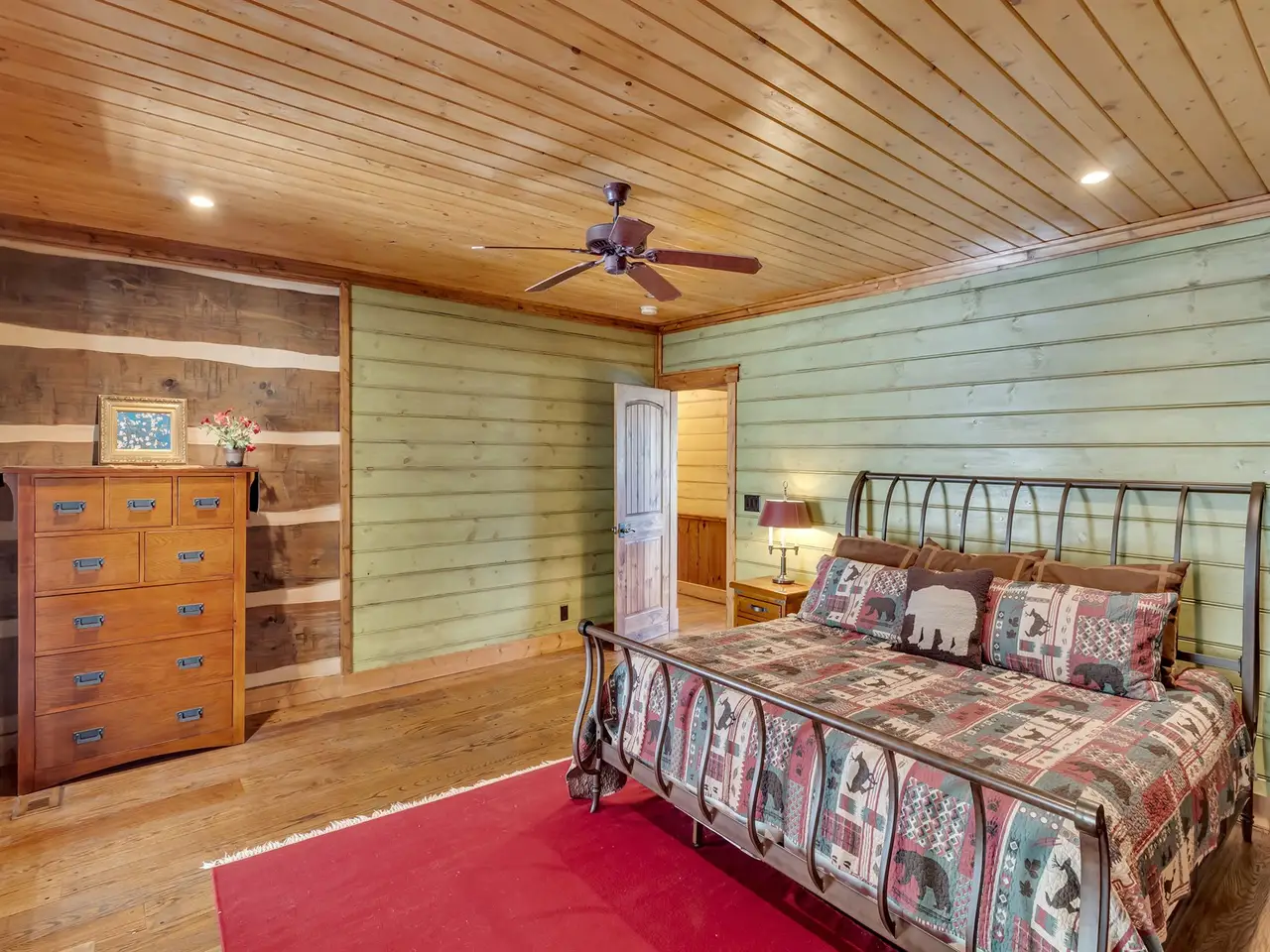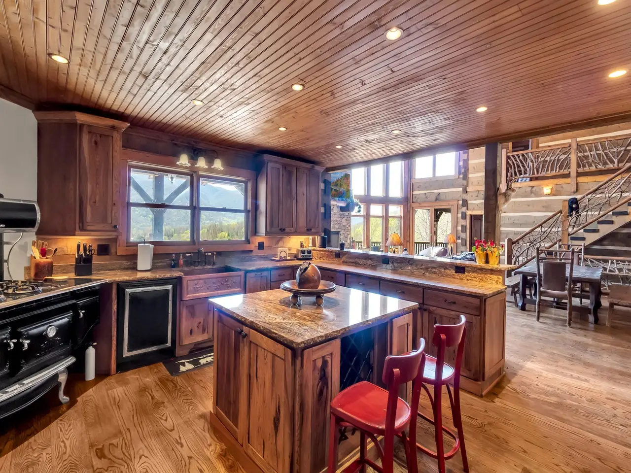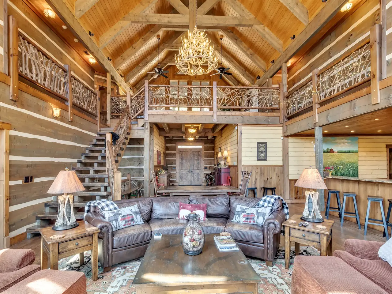 Discover this exquisite five bed/5.5 bath 8,300+ sqft log home on 2.11 ac. in the peaceful Scarlet Oaks sub-development located within 10 minutes from Maggie Valley CC and all its amenities. Immerse yourself in quintessential upscale mountain living in the open, airy floor plan with a private library bathed in natural light & centered around a stunning 29+ foot floor-to-ceiling custom stone fireplace. The kitchen has a large island with built-in wine rack, custom cabinets, granite counter tops with breakfast bar & custom appliances, with large dining area flows into great room with endless views. Many special features are found throughout this lovely home. The primary bedroom has a stone fireplace & lovely jet soaker tub with stone accents& walk in shower. The upper level has three bedrooms & two full baths and spacious open loft overlooking the expansive great room area. The basement level features a large family room with a beautiful stone fire place, two recreation rooms, bonus room, and full bath.