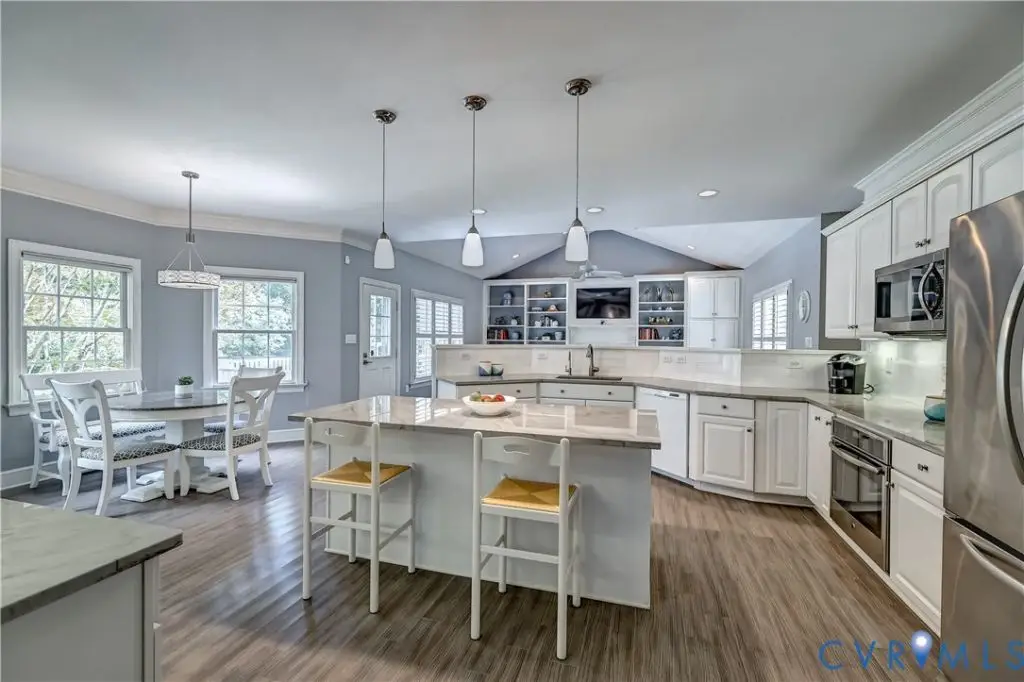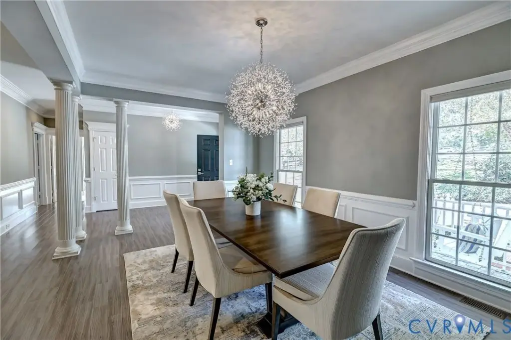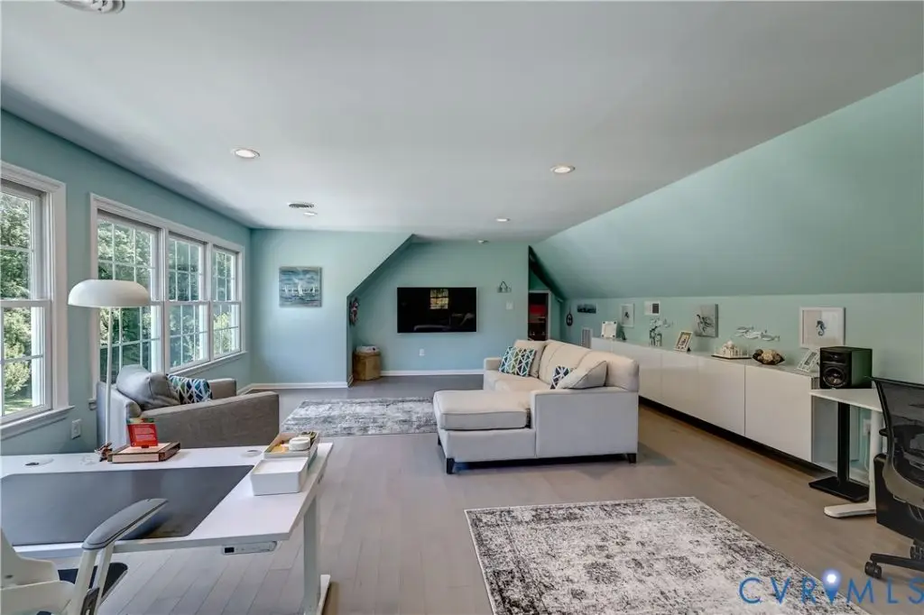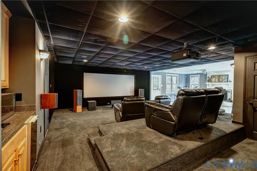 Nestled on a beautifully landscaped 2 acres in the heart of Manakin Sabot this elegant Cape Cod features 3 finished levels with multiple flex, family, office and recreation spaces throughout. As you enter the home the dining room features beautiful molding, wainscoting & column features with 9 ft ceilings and Canadian maple hardwood floors thru out. A chef's kitchen featuring quartzite countertops, induction cooktop, double ovens, premium refrigerator, reverse osmosis water filtration system, and sunny breakfast nook flow seamlessly into the vaulted-ceiling living room - featuring marble-hearth FP, custom built-in's and side deck access adding to the indoor/outdoor living space. The 1st floor primary suite w/ spa-like bath offers convenience & luxury, w/ adjacent designer closet/dressing room further showcasing the high-end design throughout. Upstairs, an enormous rec/game/fitness/flex space, w/ full bath and cozy window seat. The spacious-sun-filled office/studio w/ private stairway access from attached garage, offers endless possibilities & flexibility. The expansive basement features a cinema-style home theater with high-end AV system, Lutron lighting and an optional blackout curtain that separates an additional living area with wood-burning fireplace and access to the screened patio-perfect for seamless indoor/outdoor living. Two bright bedrooms with pocket-door closets share a Jack-and-Jill bath, while multiple utility, work, and storage areas provide exceptional flexibility. Outdoors, rolling topography and manicured grounds create a picturesque setting, best enjoyed from the stamped-concrete front porch with swing, the side porch, or the screened patio.'This home features High Seer Trane Heat pumps, Heat Pump Hot Water Heater, 14 KW Kohler Generator, whole house surge protection and much more.Blending timeless style with modern convenience, this energy-efficient home offers privacy, comfort, and exceptionally ample flex spaces suited for every occasion and possibility. Extremely convenient location.