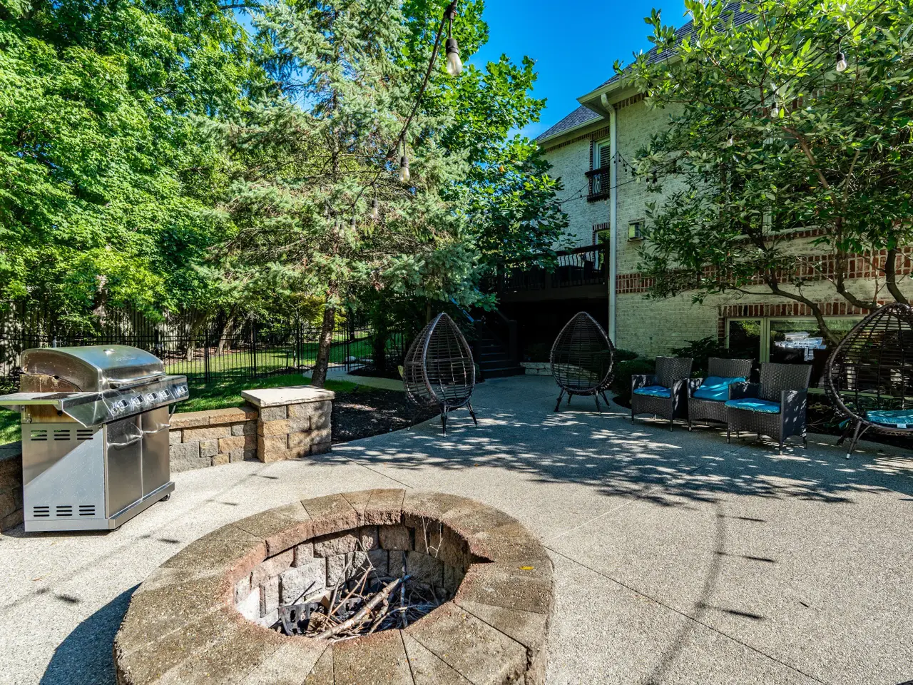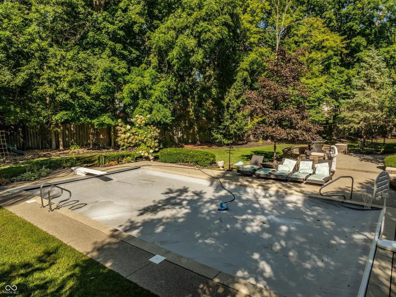 Nestled at 10470 Roxley Bend, Carmel, IN, this luxurious single-family residence in Carmel presents an amazing design and top-tier materials throughout, offering an unparalleled living experience. This house is in great condition. The living room is a grand space, defined by its high ceiling and inviting fireplace, offering a warm ambiance for gatherings or quiet evenings; crown molding and a beamed ceiling add architectural interest and sophistication. The kitchen is a culinary dream, featuring stone countertops, a custom range hood, and shaker cabinets, creating a stylish and functional workspace; a large kitchen island and kitchen peninsula offer ample space for meal preparation and casual dining, complemented by a backsplash, double oven, stovetop, and built-in refrigerator. Imagine preparing meals in this beautiful space. The bathrooms offer a spa-like experience, with tiled walk-in showers that provide a luxurious and refreshing escape. Step outside to discover your private oasis, complete with a deck, outdoor dining area, and patio, perfect for entertaining or simply enjoying the serene surroundings; a fire pit adds warmth and ambiance for cool evenings, while the private pool, featuring a diving board, provides endless summer fun; a hot tub offers relaxation and rejuvenation. The property also includes a cinema room for immersive entertainment experiences. The expansive 30492 square feet lot offers a woods view.This residence features five full bathrooms and two half bathrooms, along with five bedrooms spread across two stories, encompassing 5414 square feet of living area. Built in 2006, the property is located in a desirable residential area and offers an open floor plan. This is an exceptional opportunity to own a luxurious home designed for both comfort and sophisticated living.