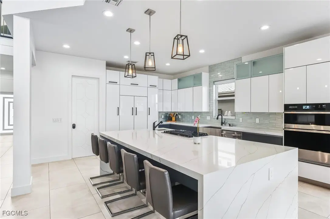 • Chef's kitchen with waterfall-edge island