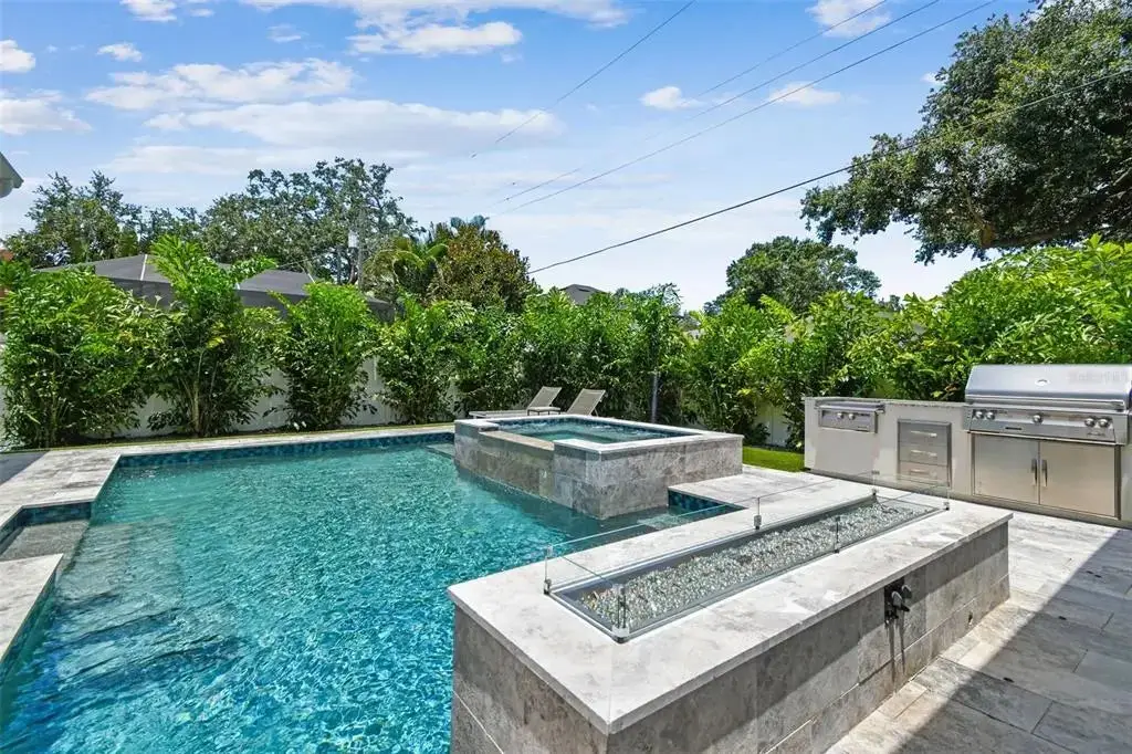 Welcome to the “Sag Harbor” — an exceptional Coastal Contemporary home by Taralon Homes, nestled in one of South Tampa’s most sought-after neighborhoods. Designed for both style and functionality, this 5-bedroom, 5.5-bathroom residence offers curated finishes, flexible living spaces, and a private backyard retreat. A welcoming foyer sets the tone for the open-concept layout that unfolds across the main level. The spacious great room flows seamlessly into the chef’s kitchen, outfitted with Wolf and JennAir appliances, granite countertops, solid wood cabinetry, an eat-in breakfast bar, and a dedicated dining area. A built-in wet bar/coffee station adds ease to morning routines or entertaining. One of the five bedrooms is located downstairs with its own en suite bath and is currently used as a home office—ideal for guests or working from home. A full pool bath and a generously sized mudroom provide smart functionality without sacrificing design. Step outside to your private outdoor oasis: a saltwater pool and spa surrounded by travertine pavers, artificial turf, two fire pits, and a custom gazebo. Mature landscaping offers a sense of privacy, while a removable child safety fence ensures peace of mind. Whether you're hosting a gathering or unwinding in the evening, this space is designed to enjoy year-round. Upstairs, the owner’s suite is a true sanctuary. The stunning primary bath features two separate vanity stalls, a luxurious soaking tub, and a walk-in shower with pass-through design—all anchored by a large walk-in closet. Three additional en-suite bedrooms and a spacious laundry room complete the second floor. Every detail of this home reflects thoughtful craftsmanship, including 7.5" Naturally Aged Medallion Collection “Playa” oak flooring, 7" crown molding, Level 5 drywall, solid core doors, Low-E impact glass windows, and two tankless water heaters. Additional enhancements include a full-perimeter security system, whole-home speaker system, and strategically placed WiFi hotspots—laying the foundation for seamless smart home integration. The 2-car garage provides ample storage, completing a home that blends luxury, practicality, and privacy in one of Tampa’s most desirable locations - just minutes from Hyde Park, Downtown Tampa, TIA, shopping, dining, and major sports venues.