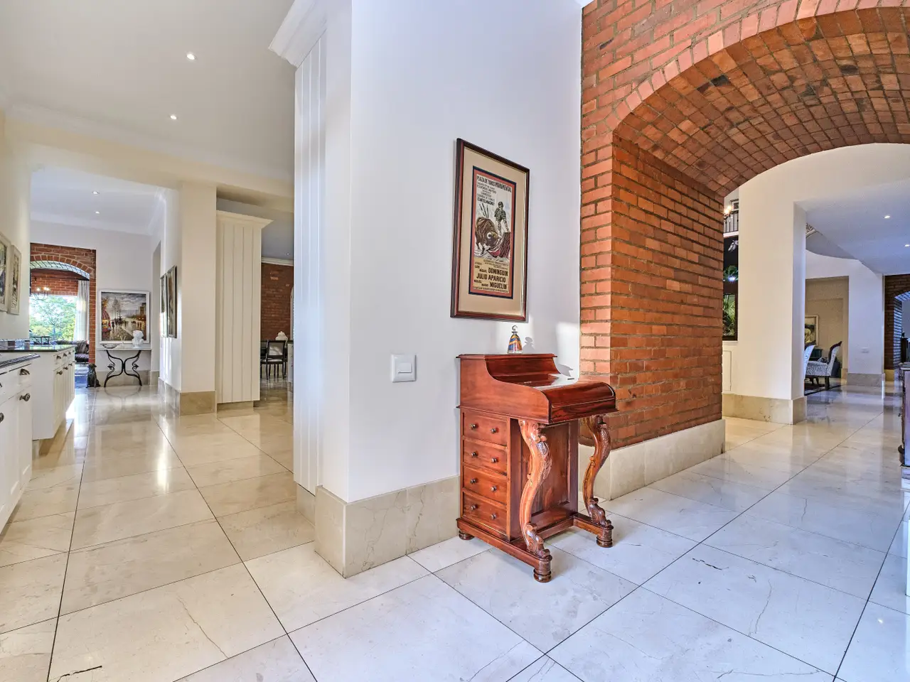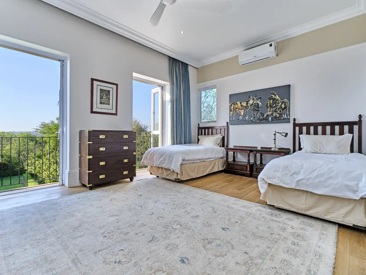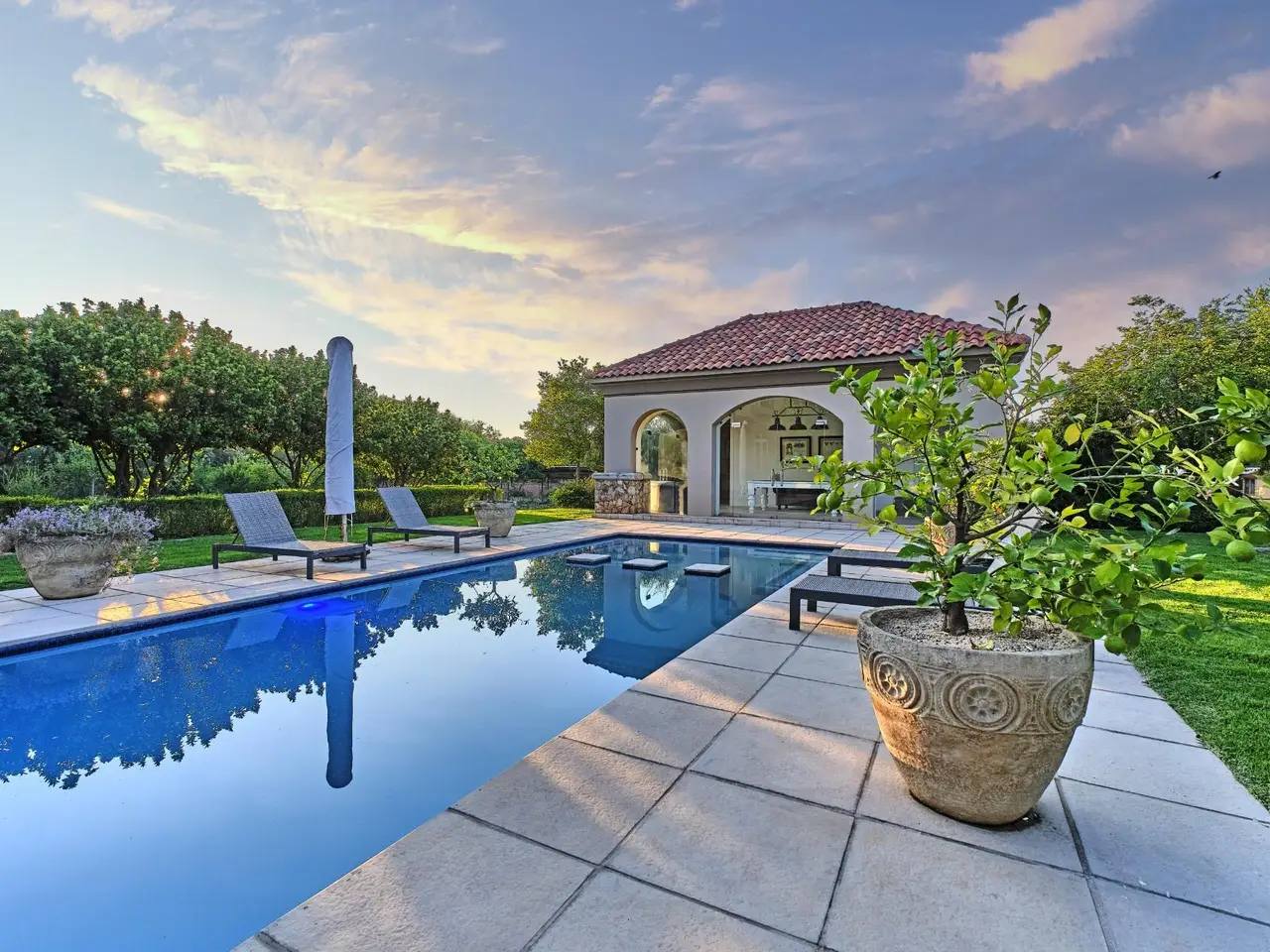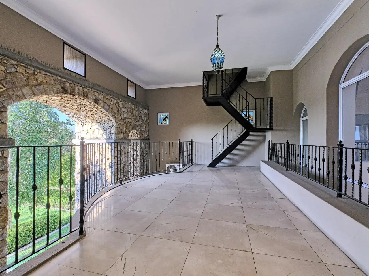 French Provincial Elegance | Equestrian Grandeur Enter an ambiance of refined sophistication where old-world charm meets modern grace. A grand double staircase sweeps through a marble-dressed foyer,setting the tone for exquisite living. Thoughtfully curated architectural detailing, arched windows, and soft, natural textures create a warm French Provincial aesthetic. Entertain effortlessly in the formal lounge or indulge your culinary passions in the chef’s kitchen, complete with Smeg appliances and a sun-drenched breakfast conservatory. French doors open to a covered terrace overlooking manicured gardens, a romantic fire pit, and a charming pool house beside the sparkling 15m x 4m swimming pool and tranquil koi pond. The upper level unfolds into a sanctuary of serenity. The master suite exudes château-inspired elegance, featuring a spa-like bathroom, boutique dressing room, and a private balcony with views of the estate. Two additional en-suite bedrooms, each with delicate Juliette balconies, capture the essence of classic French refinement and countryside tranquility. Modern innovation complements timeless design — enjoy near-zero utility costs with a complete solar energy system, borehole water supply, and intelligent home technology seamlessly integrated throughout. Tucked within the prestigious Waterfall Equestrian Estate, this residence offers an unrivalled lifestyle of security, serenity, and sophistication. Experience the grace of country living just minutes from premier schools, fine dining, and leading corporate hubs — where horses graze beyond manicured paddocks and sunsets paint the horizon. Five beautifully appointed bedroom suites and five-and-a-half luxurious bathrooms. Three grand receptions and multiple dining and entertainment areas designed for refined gatherings. Two private inter-leading studies/ library , a fully equipped gym (or optional flatlet), and an entertainment pool house. Off-grid water and power ensure seamless, self-sufficient living. Set within the prestigious Waterfall Equestrian Estate, this residence epitomizes country elegance fused with modern luxury. Residents enjoy vast open landscapes, scenic bridle paths, and a secure, tranquil environment, all within minutes of top-tier schools, boutique shopping, and corporate hubs—a rare harmony of exclusivity, equestrian charm, and contemporary convenience.