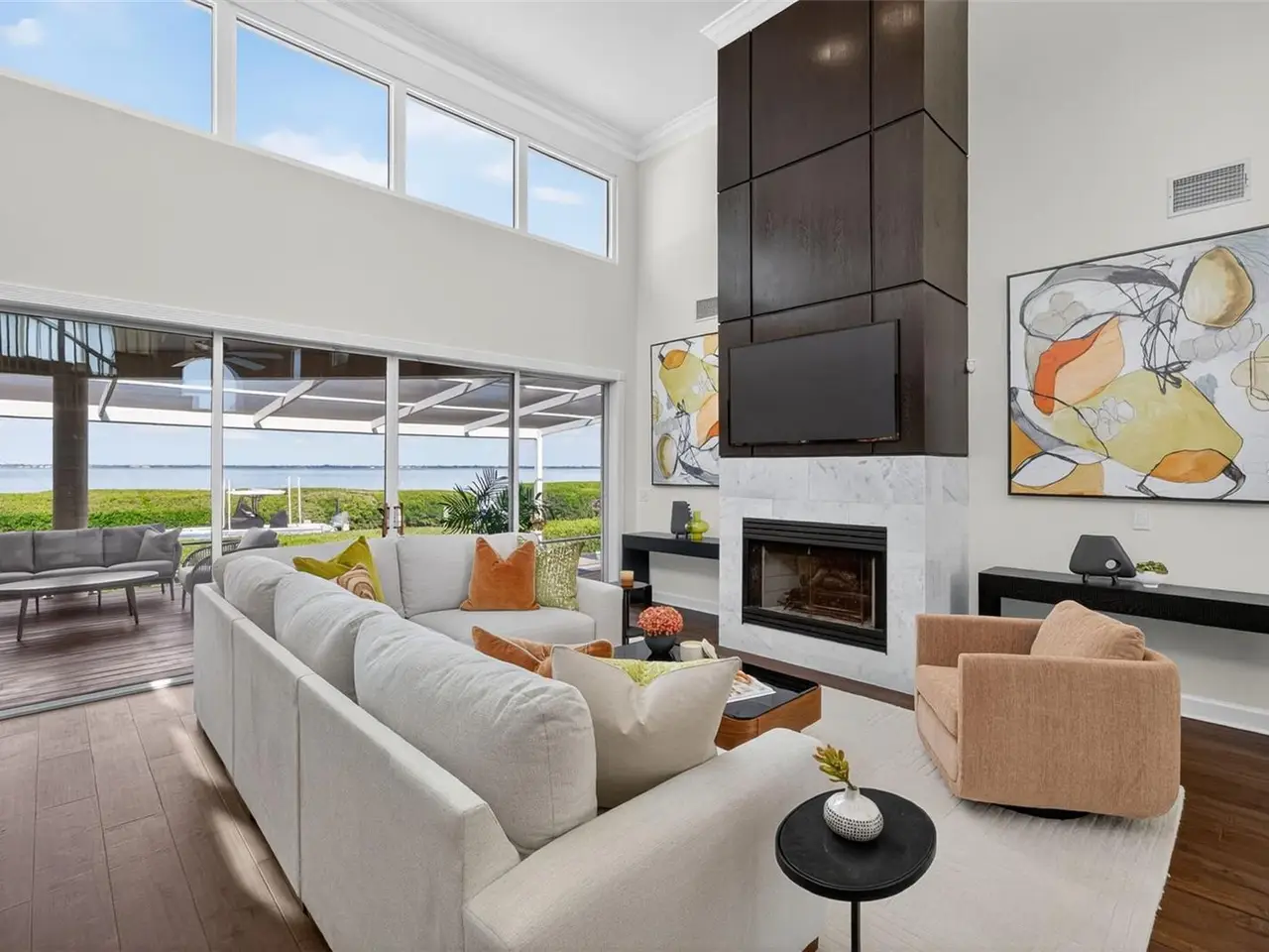 A Rare Longboat Key Bayfront Opportunity. Discover an exceptional opportunity to live behind the gates of the Longboat Key Club in the highly coveted Corey's Landing neighborhood - one of the island's premier bayfront addresses. Rarely available, this detached single-family home offers direct Sarasota Bay views, a private boat dock and lift, pool, three bedrooms plus a study, a loft, and three-and-a-half baths. Set within an intimate, established community of just 61 single-family homes and villas, this residence welcomes you through double doors into a showplace of light, style, and space. Soaring transom windows, walls of sliding glass, and rich wood floors enhance the open great-room design - an ideal setting for entertaining around the beautiful fireplace. The updated kitchen connects seamlessly to the dining and living areas, featuring sleek white cabinetry, a striking tile backsplash, solid-surface countertops, stainless steel appliances, and a generous breakfast bar perfect for casual gatherings. The first-floor master suite is a private retreat with walls of glass, a cozy sitting area, custom built-ins, dual closets, and a luxurious remodeled bath with dual vanities, a large walk-in shower, and separate water closet. Also on the main level are two private guest suites, a study/den, and even a convenient outdoor dog space. Upstairs, a versatile loft offers space for a gym, library, or extra guest accommodations. Step outside to the expansive screened lanai - an inviting oasis for relaxing or entertaining by the pool while enjoying mesmerizing bay views and the glittering lights of downtown Sarasota. Two car attached garage provides plenty of storage space. Corey's Landing residents enjoy access to a community pool, spa, Har-Tru tennis courts, and the private Bay Isles Beach Club. Ideally located near shopping, dining, and the world-renowned St. Armands Circle, this home represents the ultimate Longboat Key lifestyle - elegant, relaxed, and effortlessly connected to both land and sea.