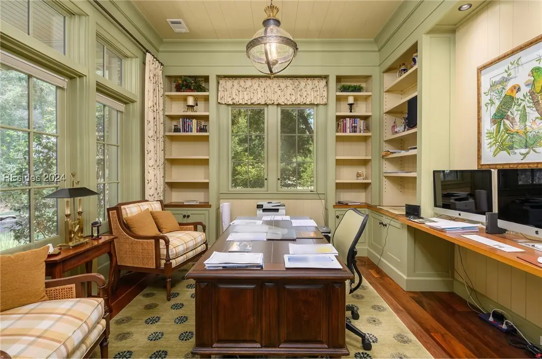 Unparalleled attention to detail and nestled on a spacious 1.05-acre lot, this might be the finest home ever offered in highly desirable Oldfield. Appointments include Savannah Grey Brick, rich black walnut flooring, travertine tile and exquisite custom-crafted millwork, to name just a few. The spacious kitchen is extraordinary and a chef's dream - custom cabinets, marble countertops, breakfast bar, Thermador appliances and ample sized pantry. Thoughtfully designed, floorplan features first-floor primary suite, separate guest quarters with kitchen located above one of two two-car garages, outdoor kitchen, screen porch and much more.