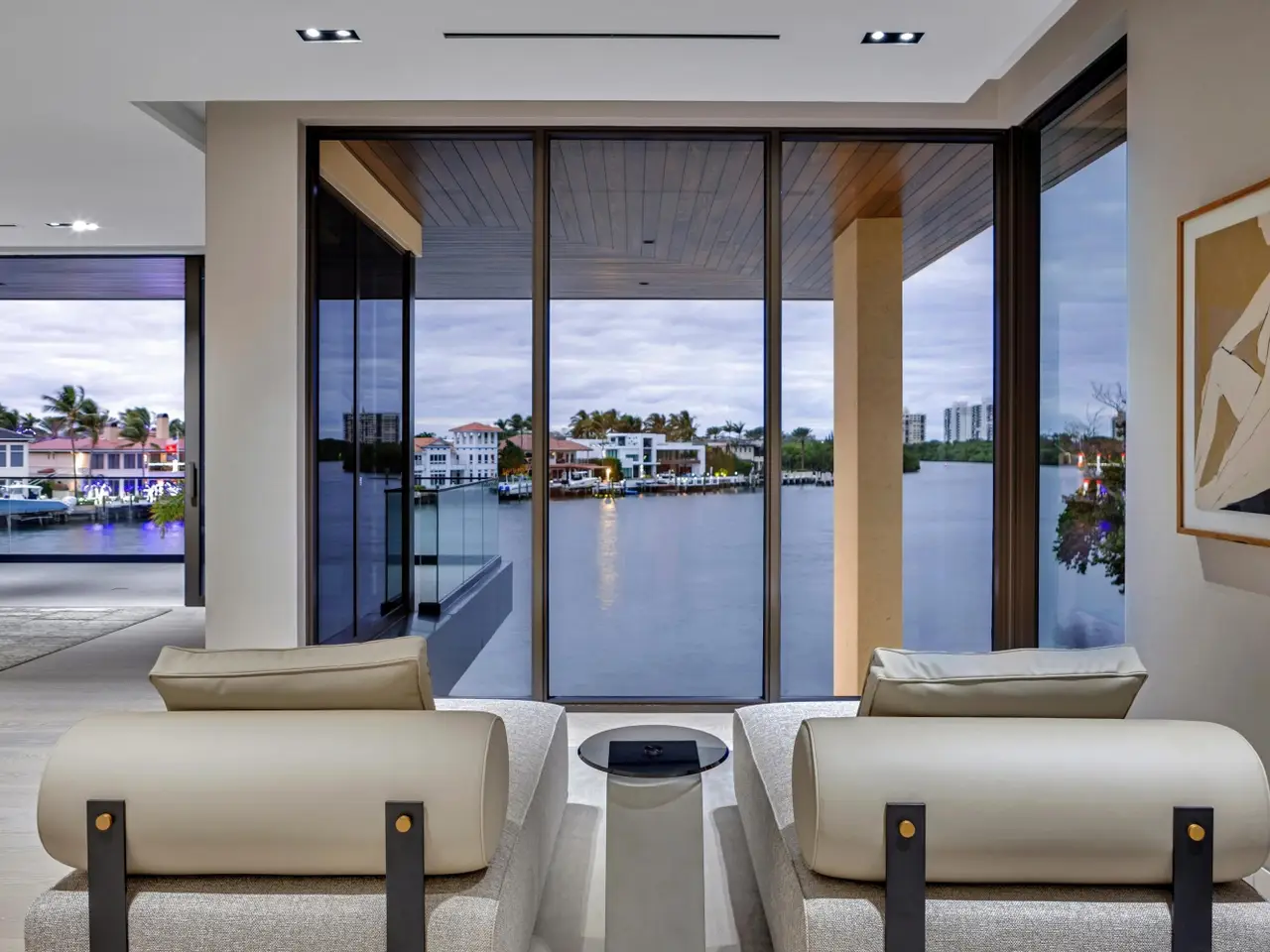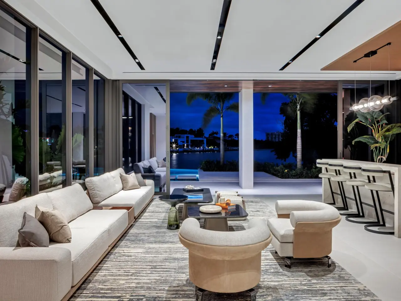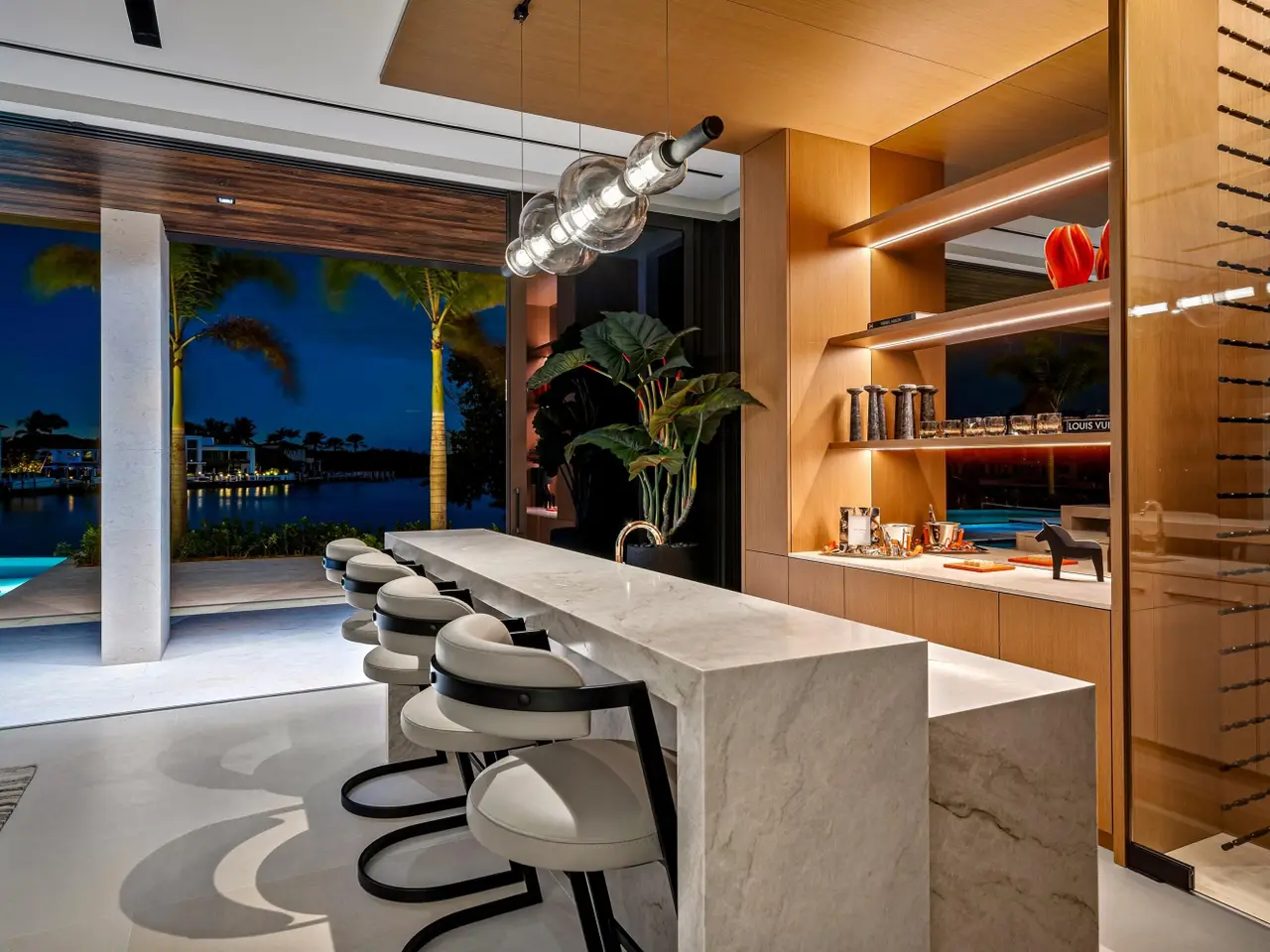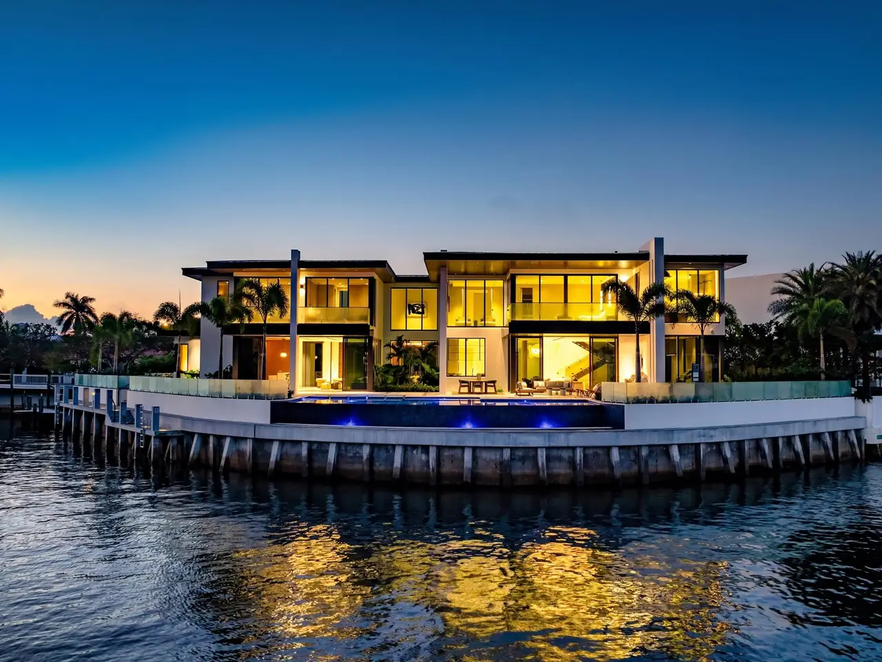 New Orchid Point Intracoastal estate sited on 230 +/- feet of waterfrontage with side protected yacht dockage in a ''no wake zone'' capturing stunning panoramic views by Jag Development, In-Site Design Group & interiors by Farache Bromberg Design Studio. Front Row views blend with modern architecture from all major rooms include floor/ceiling window walls, bleached oak flooring and organic wood detailing. Primary suite boasts a sitting room, Spa-like bath, dual boutique closest and waterfront covered balcony. Resort-like entertainment patio with infinity-edge pool/spa, sun shelf and lanai with summer kitchen. Other amenities include a new home built above required FEMA elevation. 230'+/- of newly constructed seawall & cap with new 80'+/- concrete dock. an expansive auto plaza and three-bay garage.