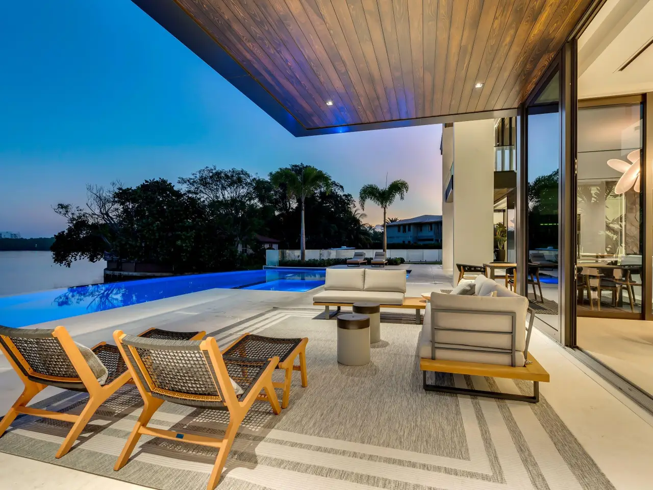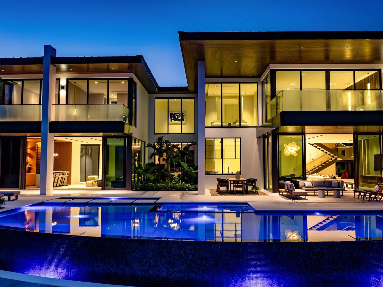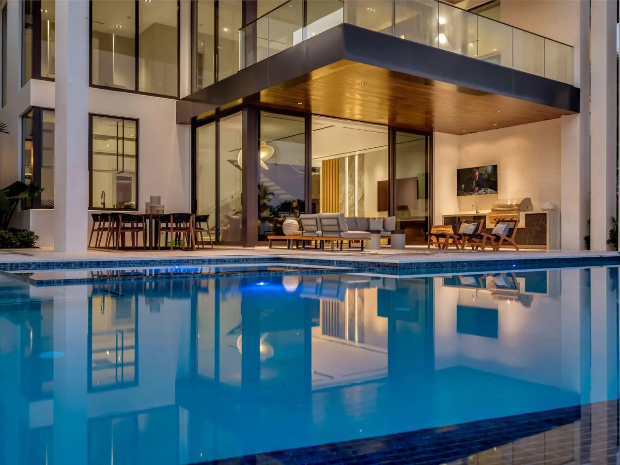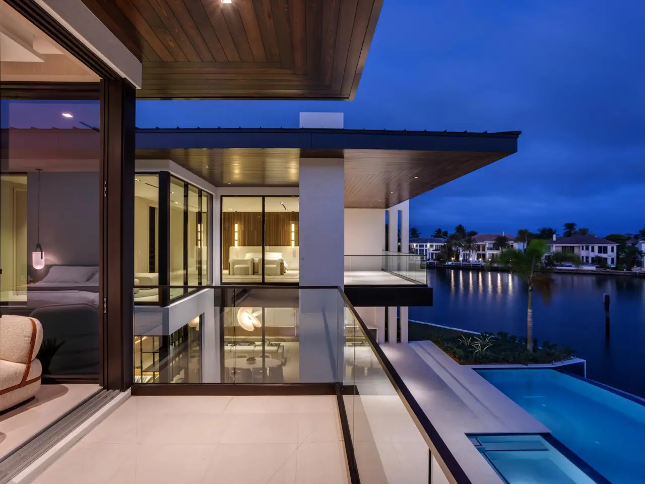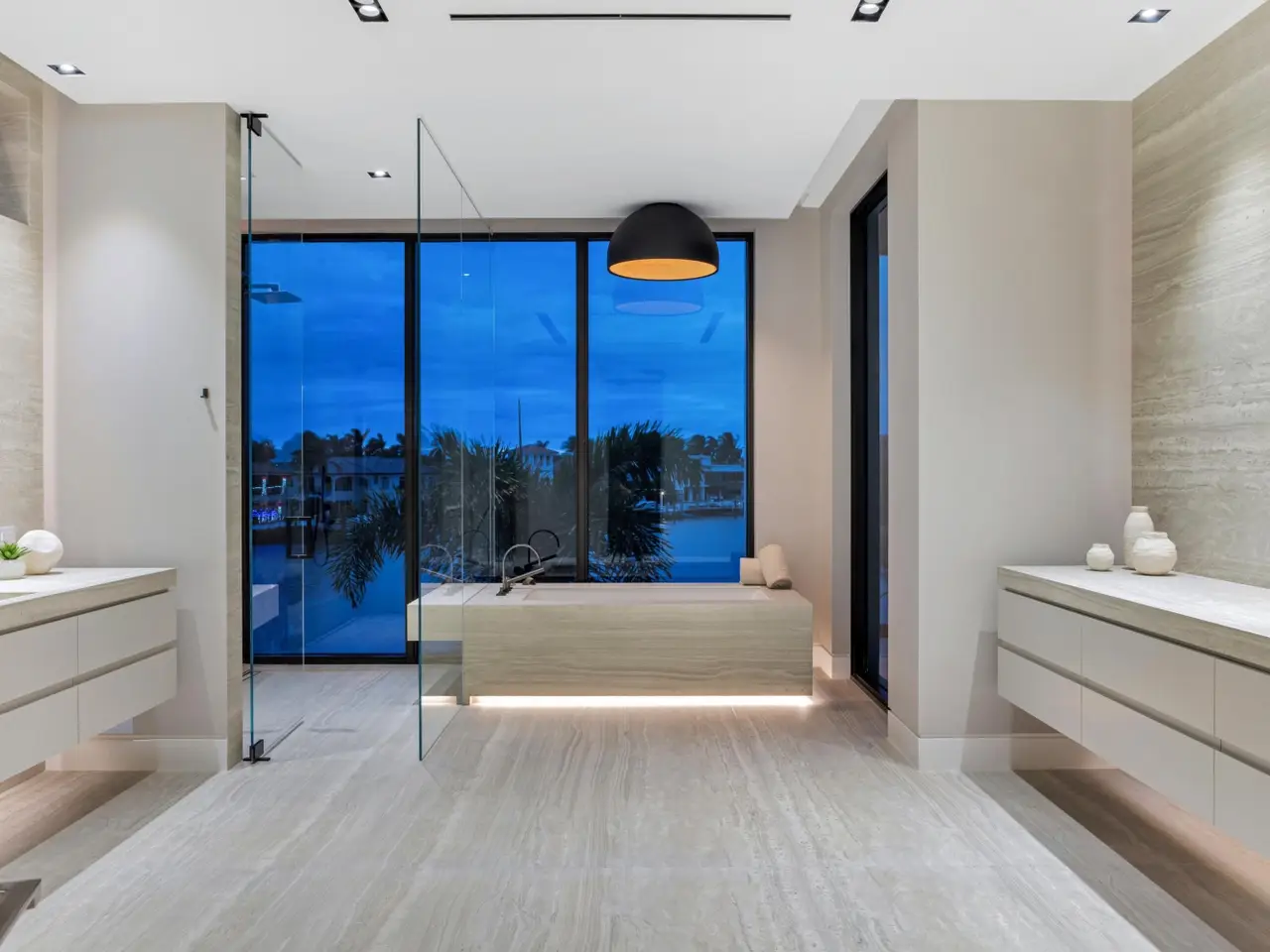 New Orchid Point Intracoastal estate sited on 230 +/- feet of waterfrontage with side protected yacht dockage in a ''no wake zone'' capturing stunning panoramic views by Jag Development, In-Site Design Group & interiors by Farache Bromberg Design Studio. Front Row views blend with modern architecture from all major rooms include floor/ceiling window walls, bleached oak flooring and organic wood detailing. Primary suite boasts a sitting room, Spa-like bath, dual boutique closest and waterfront covered balcony. Resort-like entertainment patio with infinity-edge pool/spa, sun shelf and lanai with summer kitchen. Other amenities include a new home built above required FEMA elevation. 230'+/- of newly constructed seawall & cap with new 80'+/- concrete dock. an expansive auto plaza and three-bay garage.