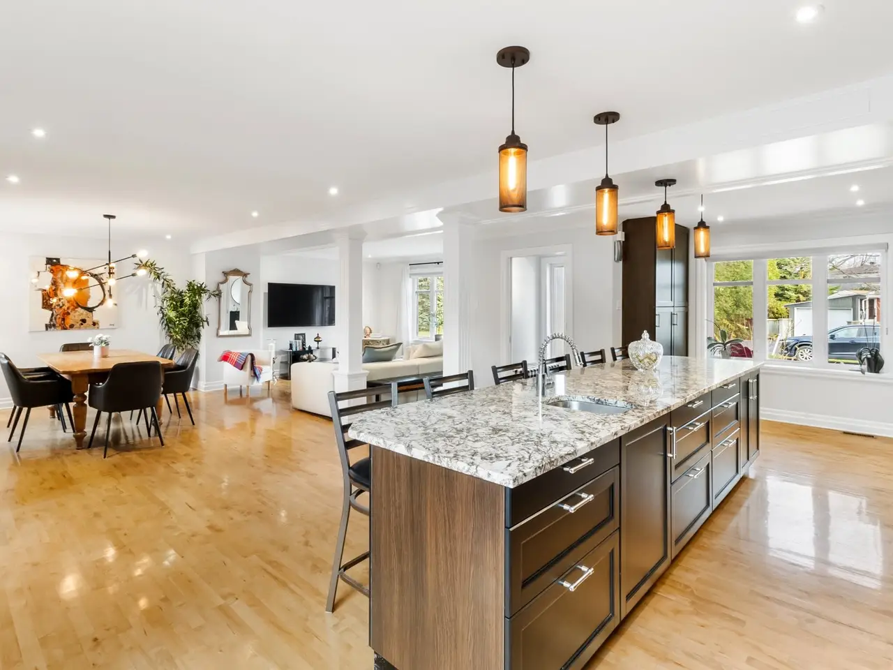 Nestled on a quiet, tree-lined street in Dorval South, this exceptional turnkey home offers luxury living with a harmonious blend of elegance, tranquility & functionality. Featuring 4 spacious bedrooms, 3+1 beautifully renovated bathrooms with ceramic & marble showers, this home is a masterpiece of design featuring lavish renovations, an open-concept layout & a gourmet kitchen with a large granite island, perfect for modern living. The finished basement includes a family room, 4th bdrm & storage. Moments from your doorstep, you can enjoy breathtaking water views, stunning sunsets & water sports, offering the perfect blend of comfort and lifestyle.