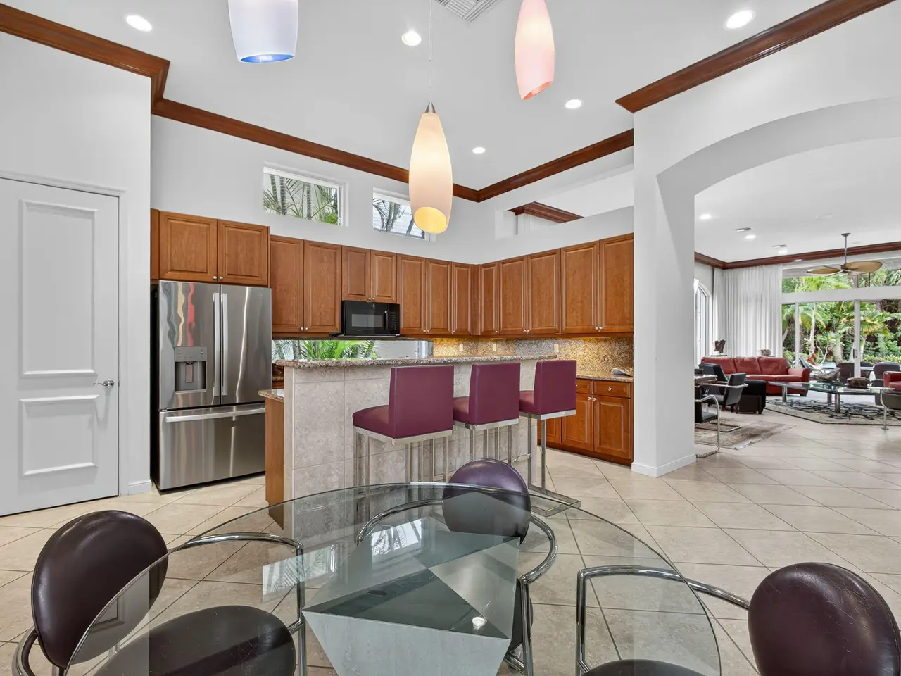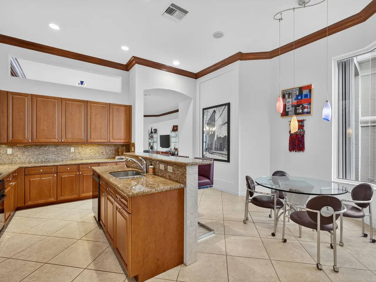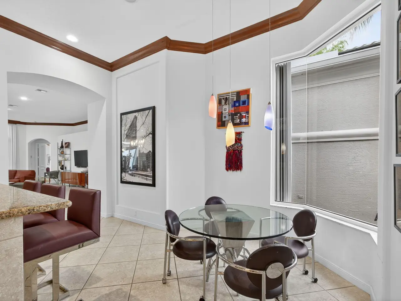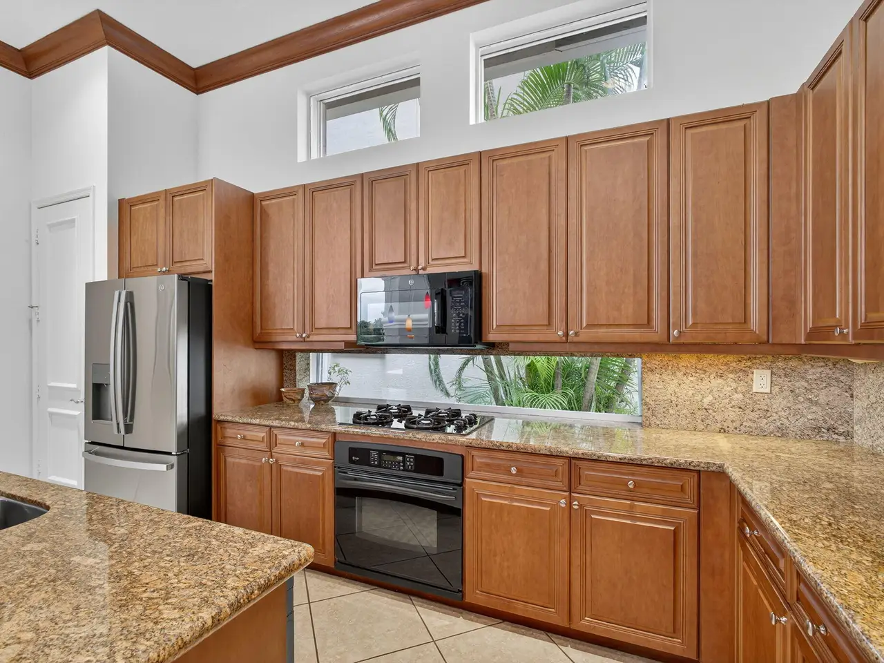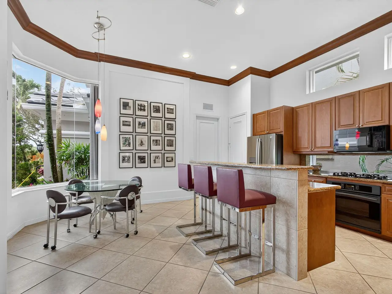 Welcome to 154 Porto Vecchio, Palm Beach Gardens Nestled in the prestigious Country Club at Mirasol, this charming three-bedroom, three-bath home is a true gem. Boasting a brand-new roof and newly installed accordion shutters, this home is not only aesthetically pleasing but also offers significant insurance benefits. The home features a serene and private lot with beautiful lake views and a private preserve at the back, creating a peaceful retreat. The great room-style floor plan, known as the Bardini, showcases light and bright transitional decor. The kitchen, with its warm maple cabinetry, offers stunning views of the lake and the Sunrise golf course.