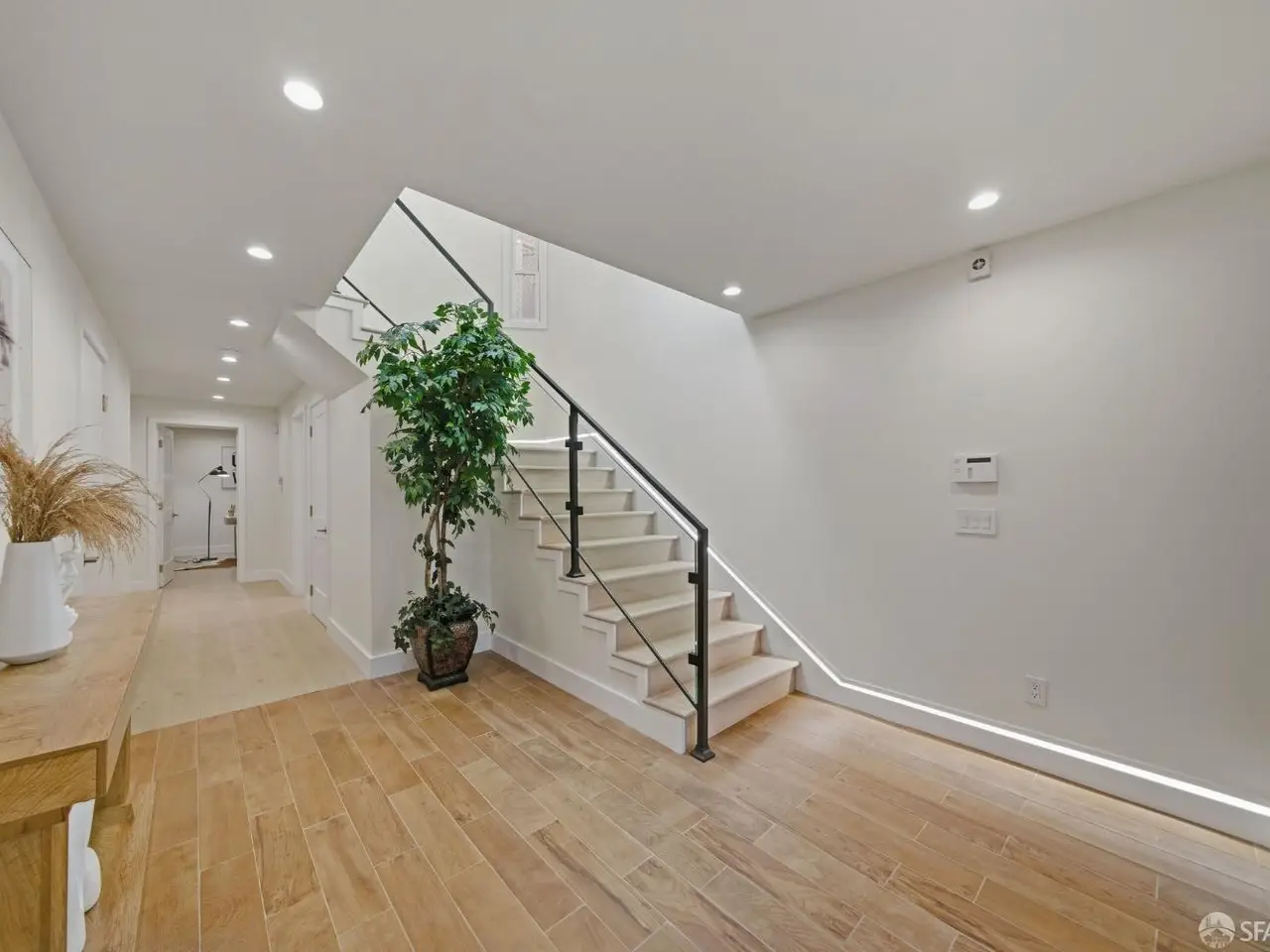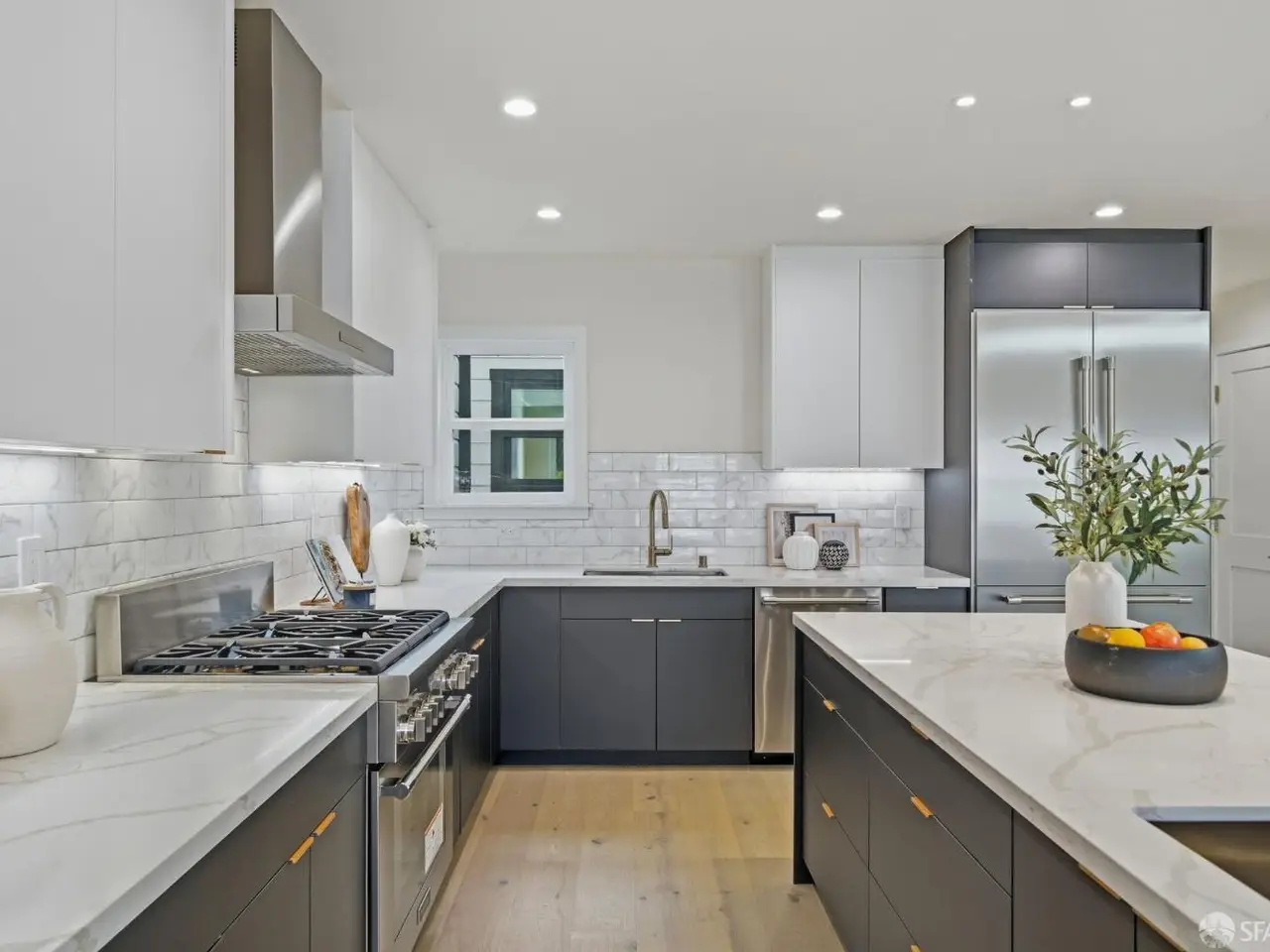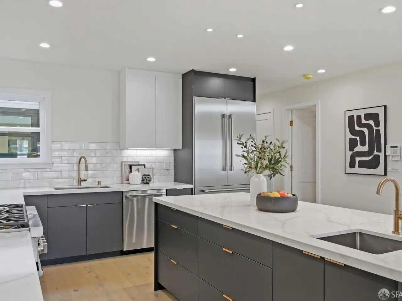 Discover a completely reimagined residence in the Heart of Central Richmond, where Modern Design meets Effortless Elegance. This striking home features an open-concept layout designed for seamless flow. The gourmet kitchen is a chef's dream which includes professional-grade Thermador appliances, custom cabinetry, and a stunning standalone island perfect for entertaining and daily living. The main level offers two spacious en-suites and a chic guest bath. The Radiant floor heating throughout provides year-round comfort. The lower level includes a versatile media/family room with a wet bar, a bedroom, full bath, and a flexible den ideal for an office, yoga room, or guest space. Outside is your private backyard retreat with an expansive deck, perfect for quiet relaxation or dining. EV-charger-ready garage adds to your everyday convenience and complements your sustainable, low-emission lifestyle. Located near Lincoln Park, the Presidio, Lands End, Ocean Beach, and the Legion of Honor, with the 38-Geary transit line just outside your door.