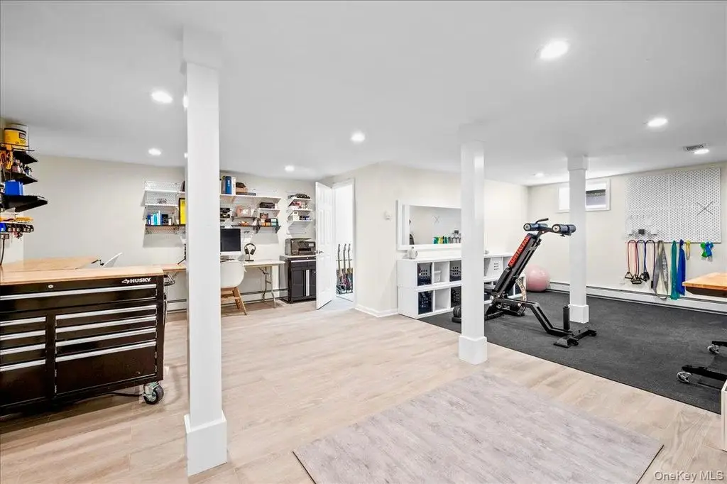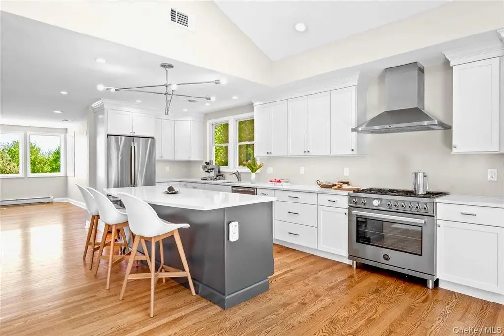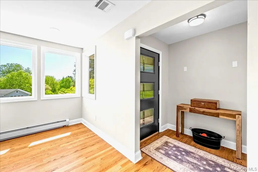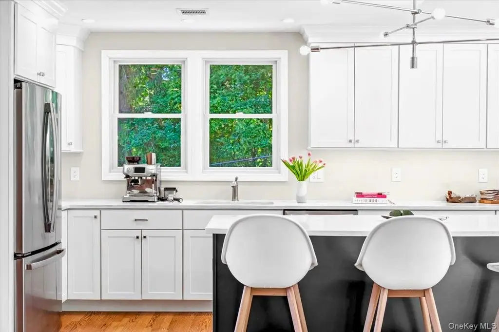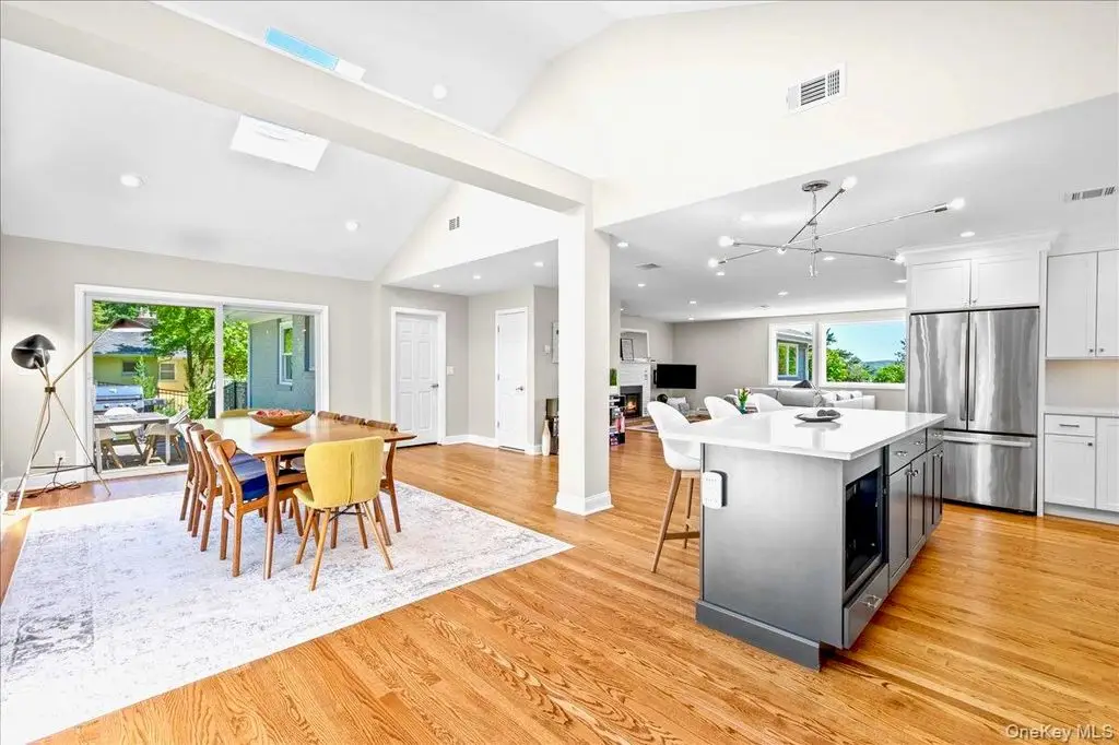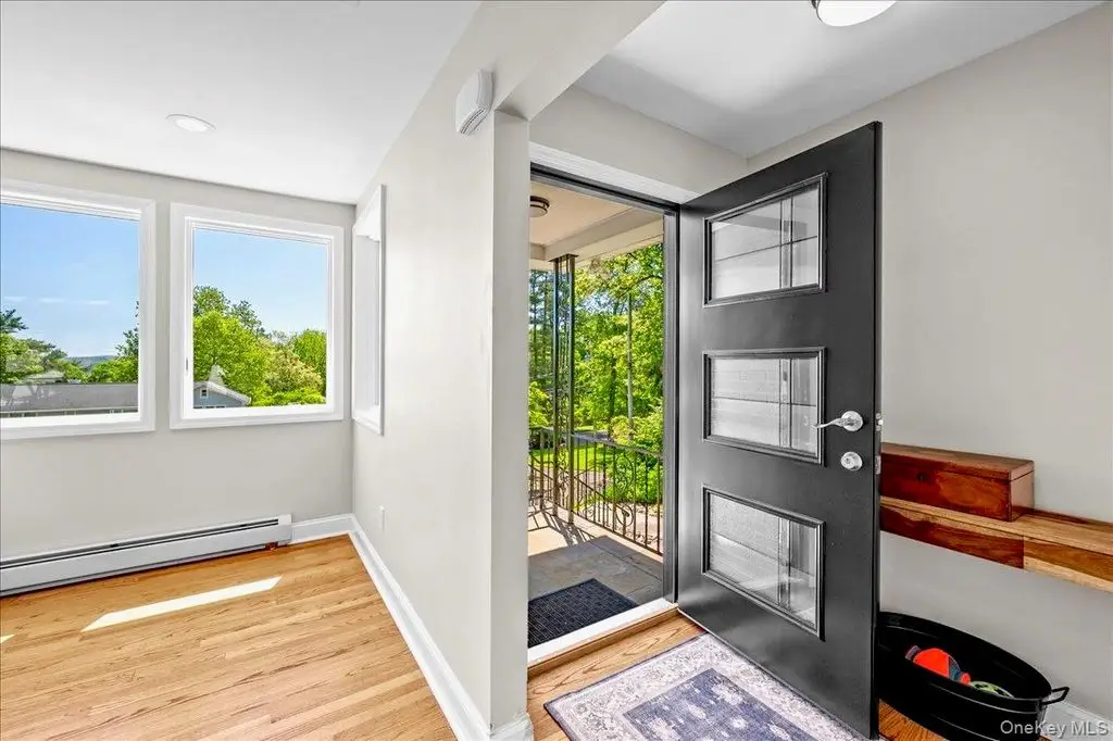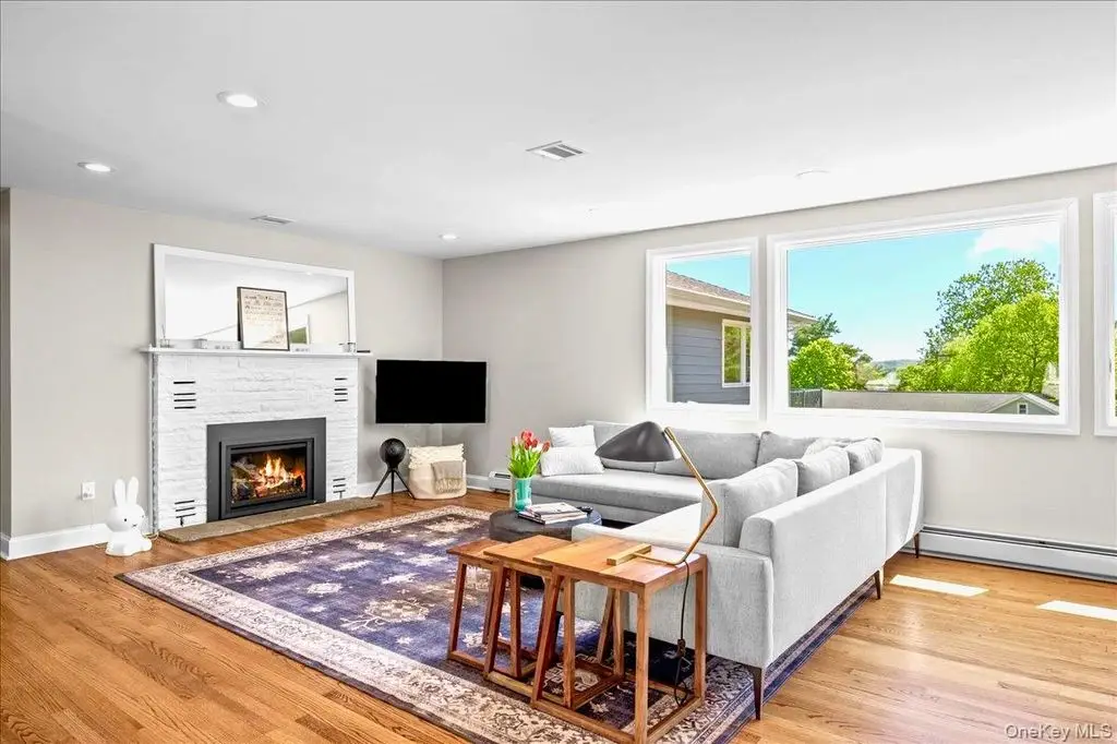 Step into this impeccably renovated Mid-Century Modern retreat where walls of windows frame sweeping views of both Hook Mountain and the distant Hudson River. The open-concept layout invites natural light to pop into every corner , illuminating the clean architectural lines , warm wood and minimalist finishes. Vaulted ceilings with exposed beams create a sense of airiness, while the seamless integration of indoor and outdoor spaces blurs the line between nature and home. Fully renovated in 2020 from top to bottom with modern amenities this home maintains its timeless mid century character and is a serene retreat just minutes away from the heart of the Village of Nyack . The open Chefs kitchen features a beautiful long run of quartz counters, a high end Bertazoni stove , professional hood and custom cabinets. The open dining room is perfect for entertaining and holidays . Other features include a gas fireplace, hardwood floors throughout and custom windows , and a private ensuite primary bedroom suite with a massive deck with river views and a walk in closet . Three other nicely proportioned bedrooms all have great closet space as well. The additional approx 1128 sf lower level is a world unto itself. Currently set up as an office and a professional gym , laundry room and a full bath , this entire floor offers flexible space to be set up for your preferences. The beautifully landscaped and fully fenced in backyard features privacy trees , garden space and plenty of flat area plus a pretty stone patio for outdoor dining. The attached garage and carport is a perfect shield from inclement weather, and there are 2 large storage areas perfect to stow away bicycles, lawn equipment and patio furniture . Upper Nyack Elementary, close to River Hook and Hook Mountain and only 45 minutes to Manhattan.