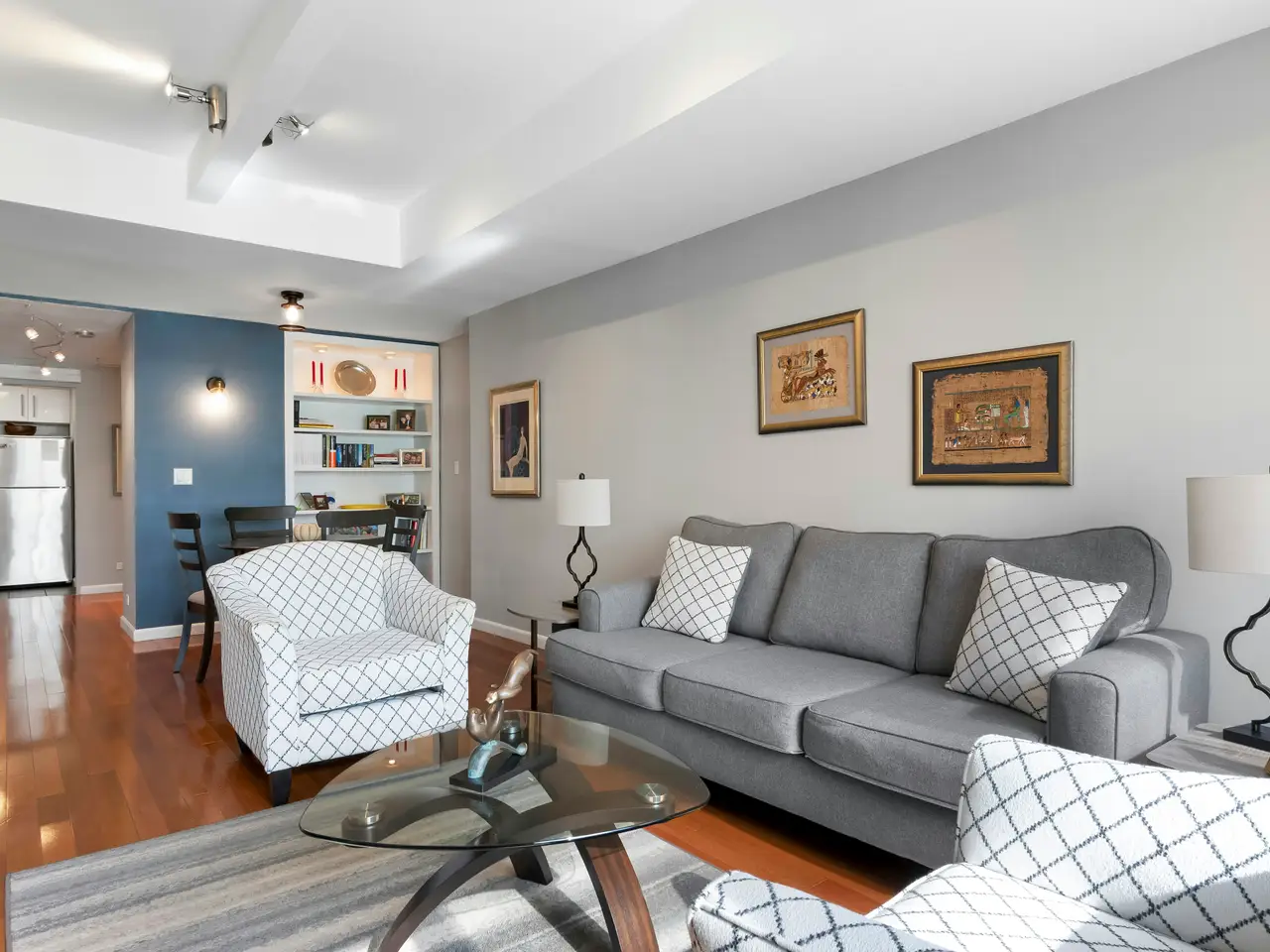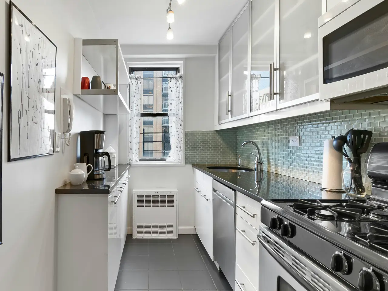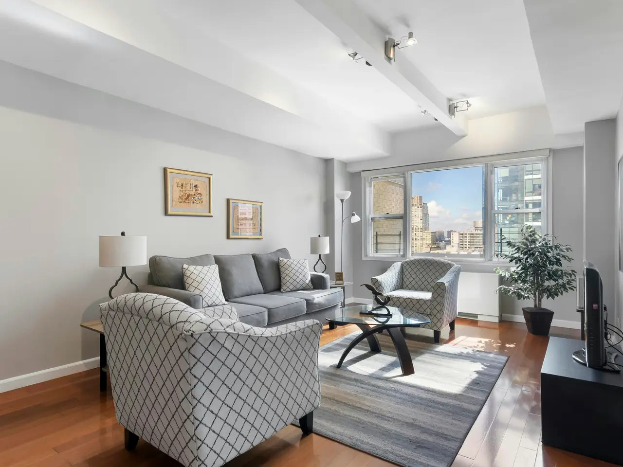 High Floor Corner  Converted Two-Bedroom with City Views in Prime Lincoln Square Perched on the 17th floor, this bright and sophisticated corner home offers western and northern exposures with sweeping city views and abundant natural light throughout the day. Thoughtfully designed for both comfort and functionality, the apartment features an expansive nearly 25-foot living and dining area with high beamed ceilings, custom built-ins, and hardwood flooring-ideal for both entertaining and everyday living. The windowed, renovated kitchen is outfitted with sleek cabinetry, a glass tile backsplash, granite countertops, ceramic flooring, and stainless-steel appliances, including excellent storage with a utility closet and pantry. The spacious primary bedroom easily accommodates a king-sized bed and even a home office setup, while the dining room which has already been converted,functions perfectly as a second bedroom, guest space, or study. Closet space is abundant, highlighted by a deep, customized walk-in within the entry foyer. A renovated,  windowed bathroom and CitiQuiet windows throughout complete this inviting residence. 165 West 66th is a well-run, full-service cooperative offering 24-hour doorman and concierge service, live-in super, on-site gym, bike room, playroom, package room, laundry room, storage, and an indoor garage with valet parking. The building's strong financials are supported by retail income, helping to keep maintenance charges low. Up to 75% financing permitted. Pet-friendly. 2% flip tax. Located in the heart of Lincoln Square, residents enjoy unparalleled access to Lincoln Center, Juilliard, and a vibrant mix of shopping, dining, and cultural destinations. Central Park and Riverside Park are both nearby, with multiple subway lines (1, 2, 3) just blocks away for  convenient access around the city. A rare opportunity to own a high-floor, move-in ready Jr-4 in one of the Upper West Side's most desirable neighborhoods.