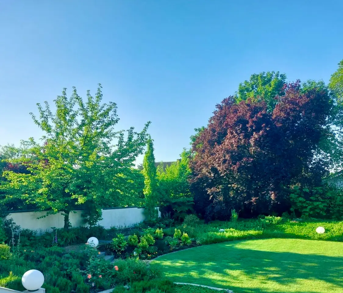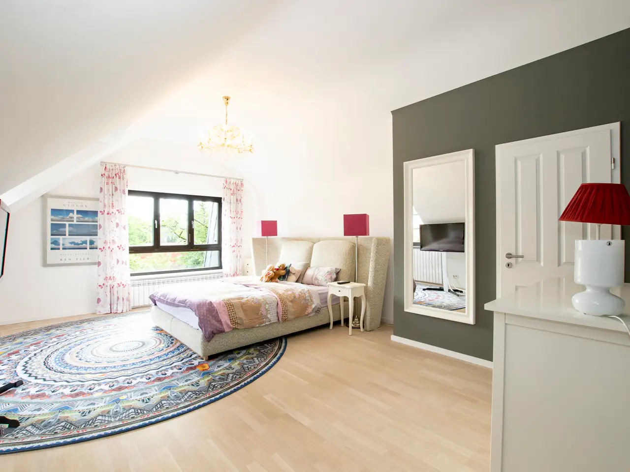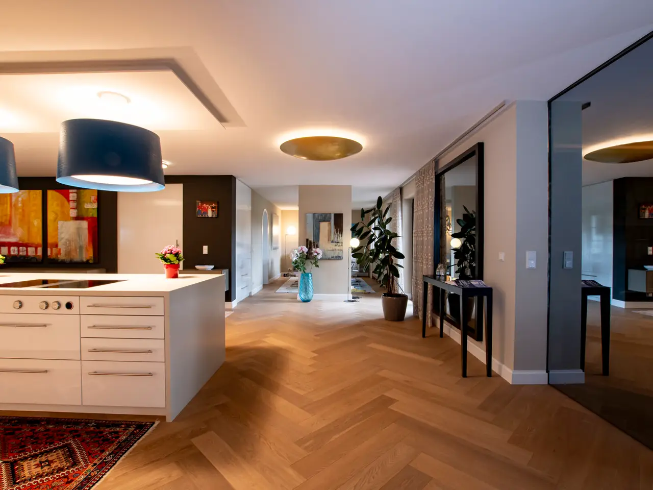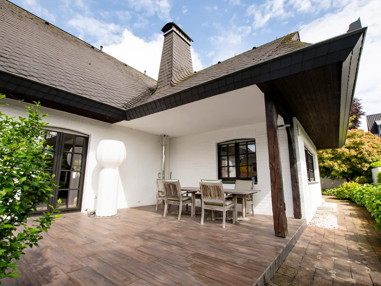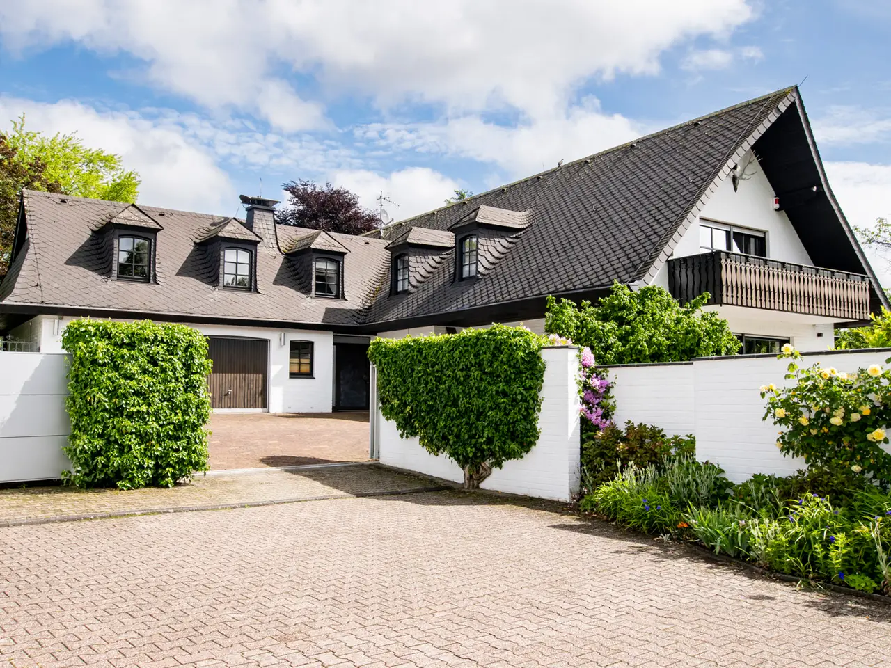 Von Poll Immobilien is pleased to present you with a truly special real estate gem. This exceptional country house villa meets the highest standards of style, comfort, and privacy. Located at the end of a quiet cul-de-sac in the fairytale town of Brüggen, you will experience your own personal oasis of well-being – an island of peace and elegance. A spacious, southwest-facing living area of ​​approximately 50 m², with direct access to a beautiful terrace offering magnificent views of the lovingly landscaped garden with its various seating areas, forms the heart of the house. The adjoining, light-filled room, which covers an area of ​​approximately 80 m², boasts a stylish TV lounge, an open-plan kitchen with comfortable seating, and an inviting dining room – all fitted with elegant herringbone parquet flooring by Dietrich, lending the space an exclusive ambiance. You will be captivated by the fireplace for cozy family hours, as well as the floor-to-ceiling windows and the stately terrace overlooking the south-facing garden. There is also a separate office space, ideal for home office use or as a quiet retreat, and perfectly integrated into the overall concept of the house. The property offers three spacious bedrooms, providing ample space for family and guests. Each room impresses with its spaciousness, high-quality furnishings, and quiet location within the house. The master bedroom is a real highlight: an approximately 55 m² master bedroom with a luxurious bathroom including a freestanding bathtub and walk-in shower, as well as a stylish en-suite dressing room, leaves nothing to be desired. The house also offers a charming granny flat with separate living room and bedroom, a bathroom, and a practical dressing area. Ideal for guests, family members, or as a retreat with maximum privacy. Wellness lovers will find their money's worth in the lower area of ​​the property: a light-filled indoor swimming pool with a heated pool – an impressive 5x10 meters in size – a high-quality fitness area, and a modern sauna for up to six people are already included, ensuring a luxurious spa experience in your own home. Further highlights include four garages and numerous thoughtful details that make this property a truly special place. Experience for yourself how perfectly design, quality, and comfort harmonize here. We look forward to hearing from you! Position This luxury property is located on a quiet side street, a cul-de-sac, in one of the best residential areas of Brüggen – a charming climatic health resort with approximately 15,700 residents, beautifully situated in the heart of the Maas-Schwalm-Nette Nature Park, not far from the Dutch border (approximately 7 km away). The residential area itself is surrounded by lush greenery and offers recreational opportunities, inviting visitors to take walks in the Schwalm floodplains and surrounding lakes, as well as to engage in sporting activities. The neighborhood is characterized by modern single-family homes, providing a well-maintained and attractive living environment. The quiet and safe surroundings also contribute to the high quality of life and make the area an ideal choice for discerning property buyers. The historic "castle community" offers everything needed for daily life within walking distance: schools, kindergartens, doctors, supermarkets, financial institutions, fitness centers, pubs, restaurants, and a very attractive pedestrian zone, where shops entice visitors to shop even on Sundays. Many other destinations in the surrounding area can be easily reached by bus, and the A52 and A61 motorways guarantee perfect transport connections to Düsseldorf, Mönchengladbach and the neighboring Netherlands.