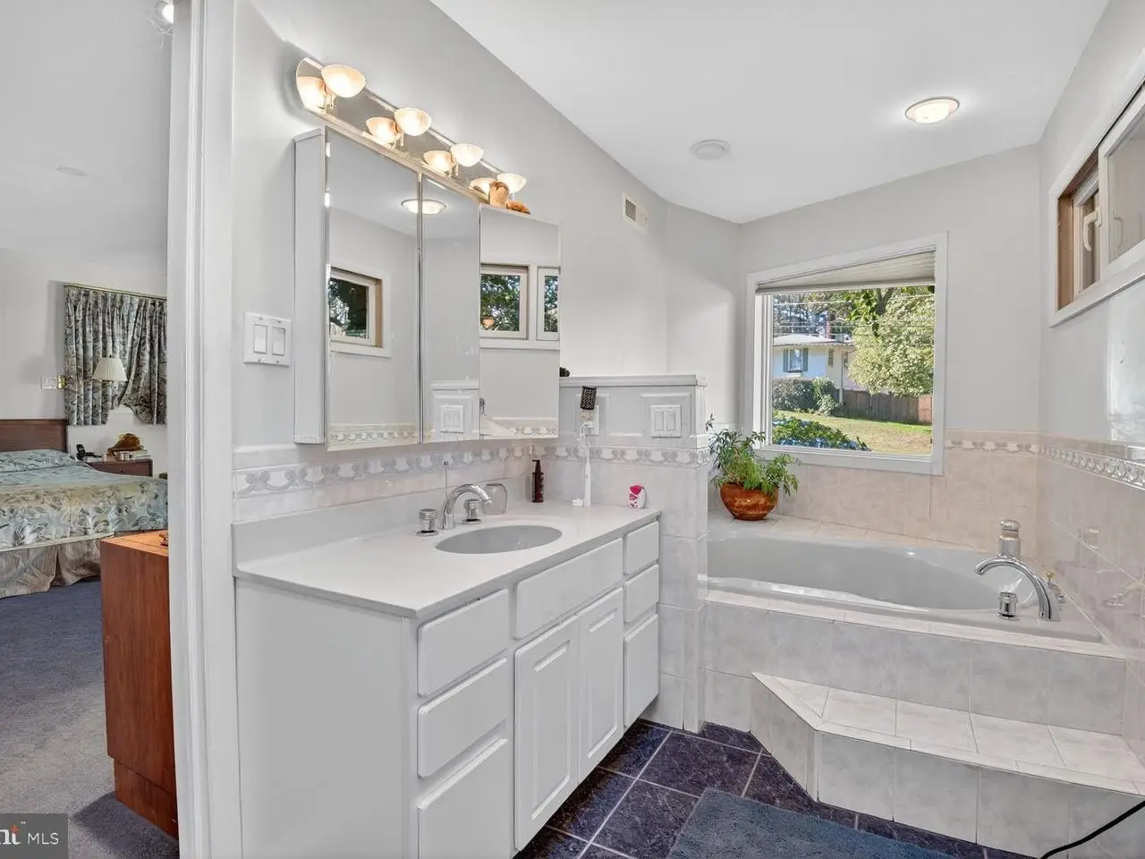 Jetted tub and separate shower in primary bathroom