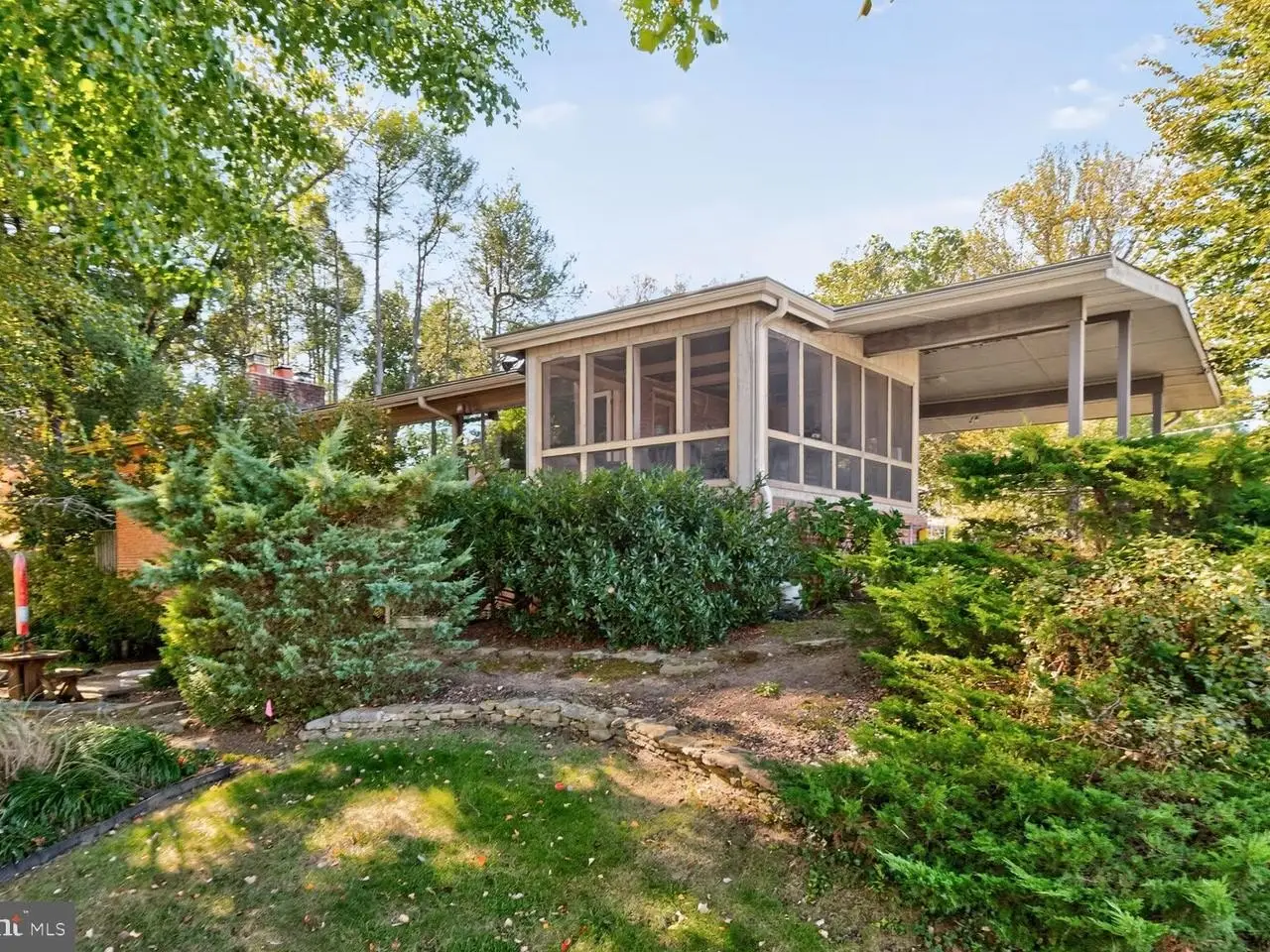 Price Reduction! It is a pleasure to present this bright, spacious four-bedroom, three full bath Contemporary located in the desirable Dunlop Hills subdivision of the leafy Rollingwood neighborhood in Chevy Chase, Maryland. This comfortable oasis of tranquility is situated on a ¼ acre lot on quiet streets. A flagstone walkway bordered by a landscaped yard with a beautiful Japanese Maple tree welcomes you to this classic Mid Century Modern home. The entry foyer gives a panoramic view to the spacious living room/dining room, the kitchen to the left and the hallway to the bedroom wing to the right. The Combination living room/dining room has a wall of picture windows and recessed lighting bathing the interior with light. The dining area accesses a spacious screened porch perfect for Al Fresco dining. A skylight and numerous windows brings light into the well designed table spaced kitchen featuring a unique artist designed backsplash and ample cabinetry. The kitchen boasts upgraded countertops, luxury vinyl tile flooring, a gas cooktop, side by side refrigerator, dishwasher, and a door to the carport allowing retrieving the groceries in with ease. The large primary bedroom with recessed lighting and a wall of closets has been expanded by an addition that leads to a private owner's patio perfect for morning coffee. The primary bathroom has a jetted tub, separate shower, a skylight, and high windows that provide plenty of light while maintaining privacy. The hall features a linen closet and a full bath. There is an additional bedroom on the main floor with a double closet and large windows and a spacious den/library/office with bookcases and a fireplace. The lower level has a huge open family room with bookcases, a fireplace, a wet bar, an exposed brick wall and a walkout level door to a patio. The patio has a beautifully landscaped garden with a pond with waterfall great for outdoor entertaining. The lower level also has two additional bedrooms, a storage /utility room, a large laundry room and a full bath. Terrific location - convenient to shopping, dining, Rock Creek Park and buses to three Metro stations. The Rollingwood neighborhood has an active Citizen's Association with frequent social activities like block Parties, picnics, happy hours and movie nights making this the ideal place to settle down. Sold in As Is condition.
