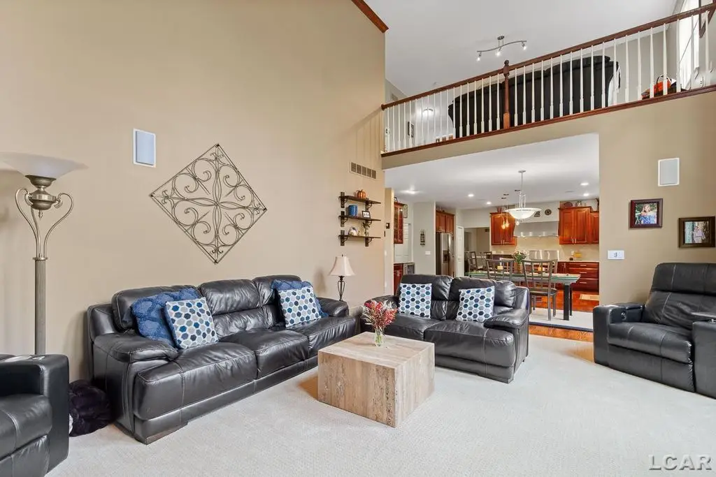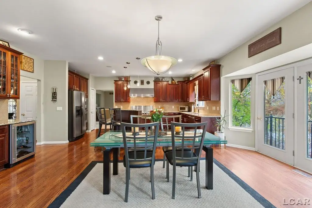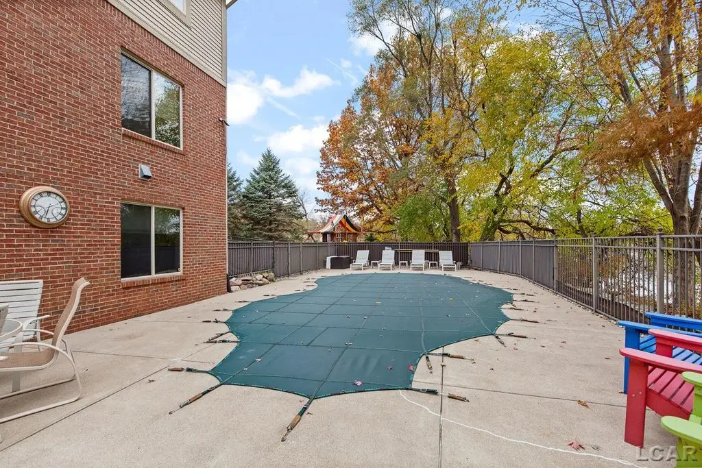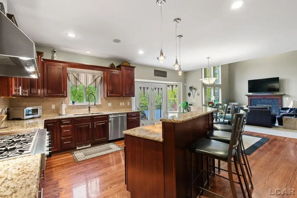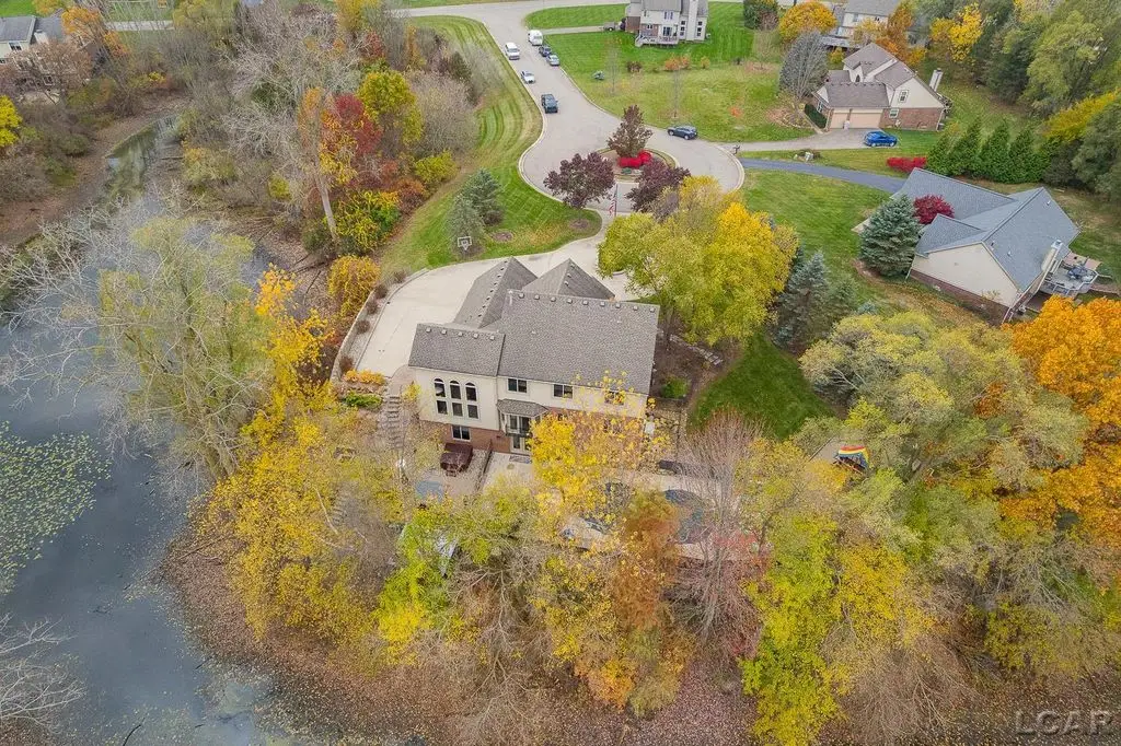 Executive Custom Designed Estate in Prestigious Green Oak Township! Discover an extraordinary combination of luxury, comfort and design excellence in this stunning estate on a half-acre of waterfront land, offering approx. 5000 sq. ft. of meticulously refined living space in one of South Lyons most sought-after desirable communities. This impressive residence embodies sophistication at every turn, featuring five spacious bedrooms and three and a half baths, blending timeless craftsmanship with modern luxury. The moment you drive up to your private circular entryway and step inside you will find custom cherry wood flooring flowing throughout the main entry level, setting the tone for warm, refined, elegant living. The gourmet custom kitchen is a chef's dream, showcasing high-end Jenn Air appliances, granite countertops and abundant cabinetry, perfect for both daily living and grand entertaining. The soaring ceilings in the great room create an airy, open ambiance, complemented by walls of windows that fill the home with immense natural lighting. A dedicated home office provides the ideal space for remote work or study. Retreat to the luxurious primary suite featuring a spa-inspired bath, while the finished lower level offers the ultimate entertainment experience with a custom designed and built bar, providing a stylish gathering space ideal for hosting friends and family. Outdoors, enjoy your own private sanctuary with a built-in saltwater swimming pool, surrounded by beautifully landscaped grounds, expansive patio areas, and room to unwind in total privacy, perfect for summer entertaining. Located within an exclusive HOA community, this estate offers the perfect balance of tranquility, prestige and a true sense of neighborhood and convenience. An entertainer's paradise, this Green Oak Township estate truly has it all, elegance and space, where every detail reflects exceptional quality and timeless design, and the lifestyle you've been dreaming of.