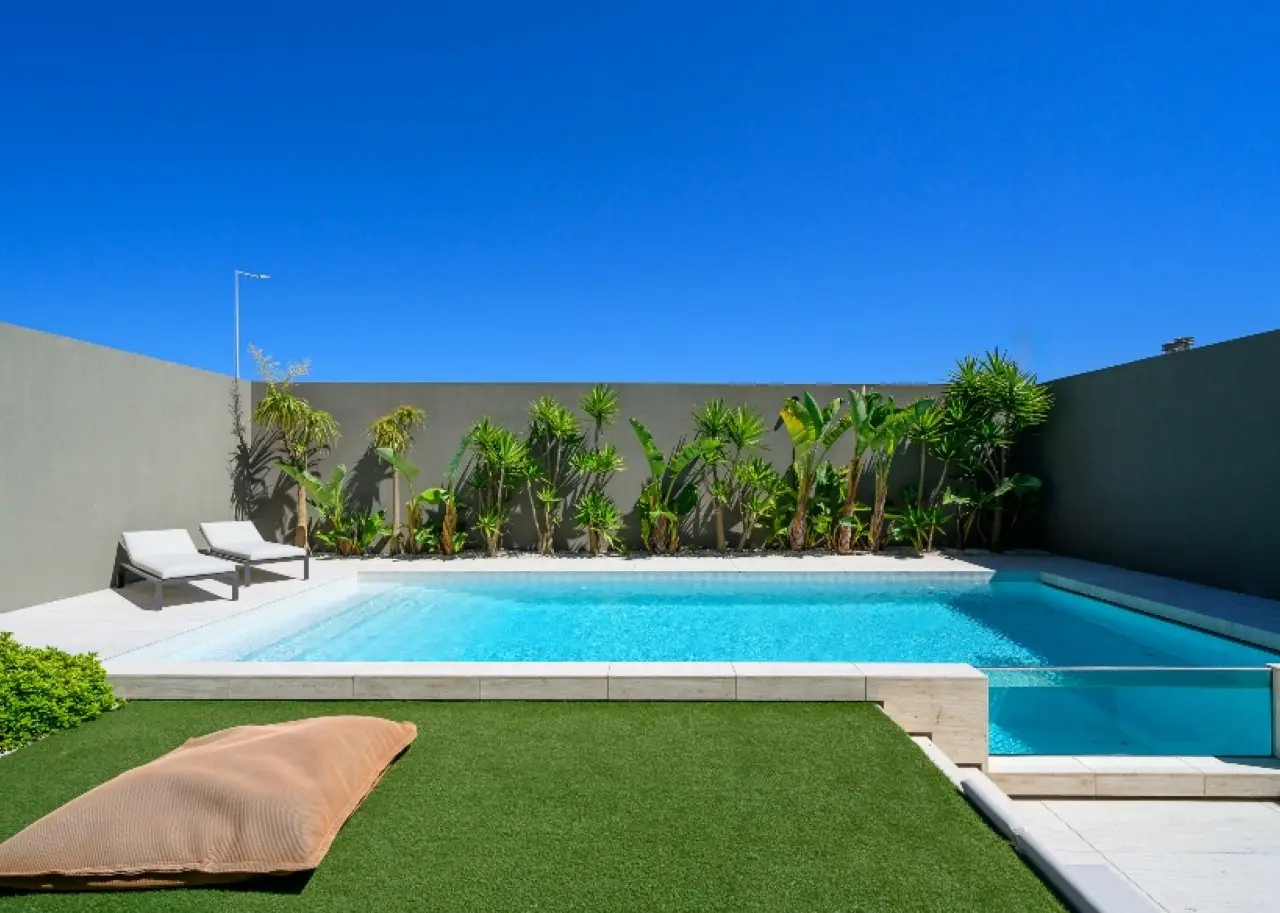 South-facing garden with swimming pool