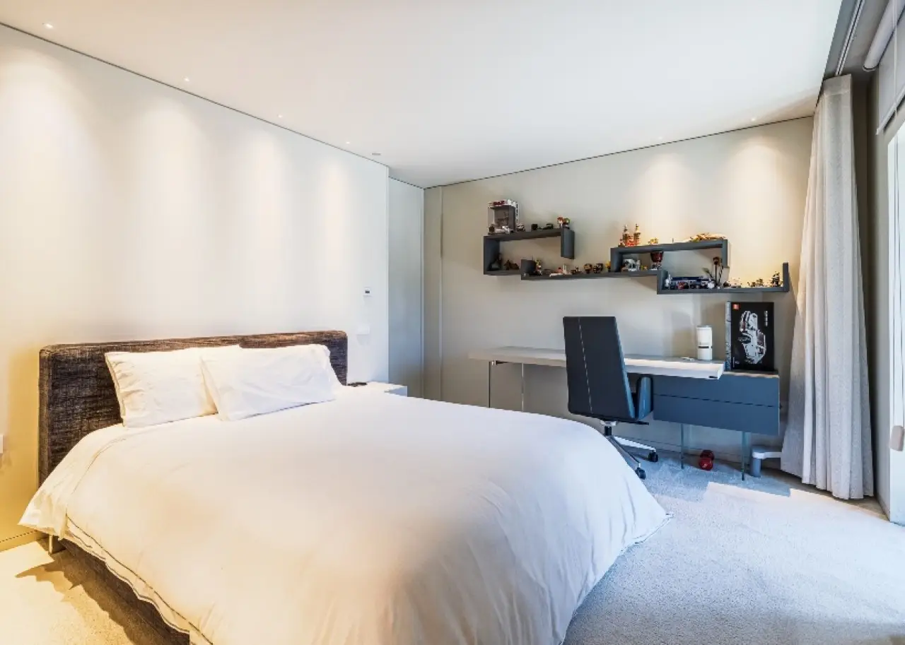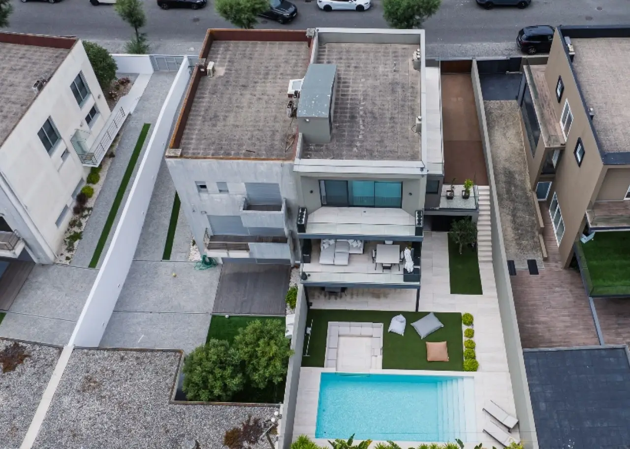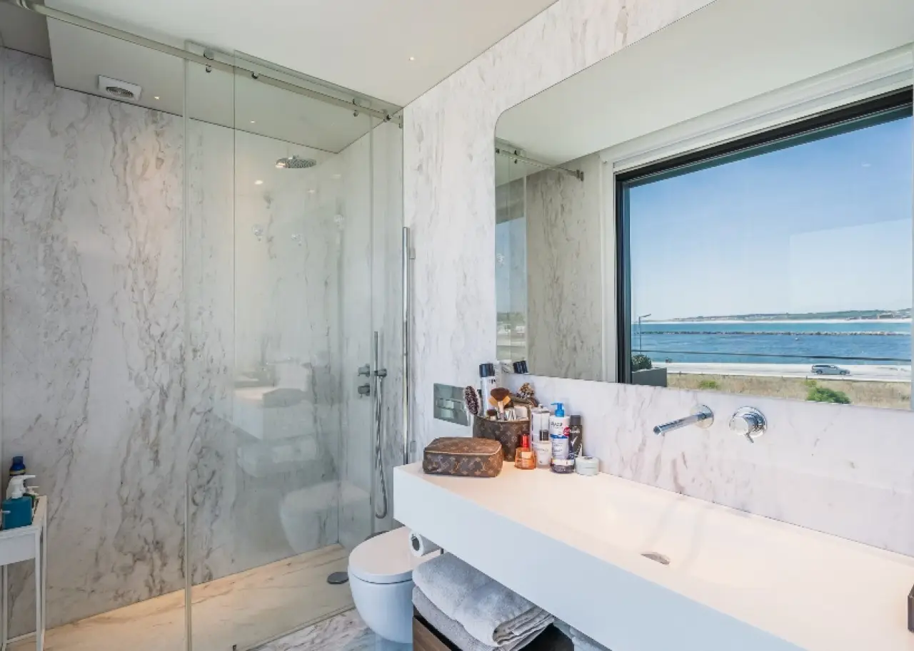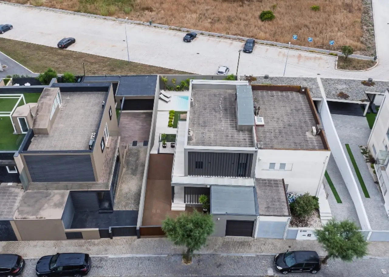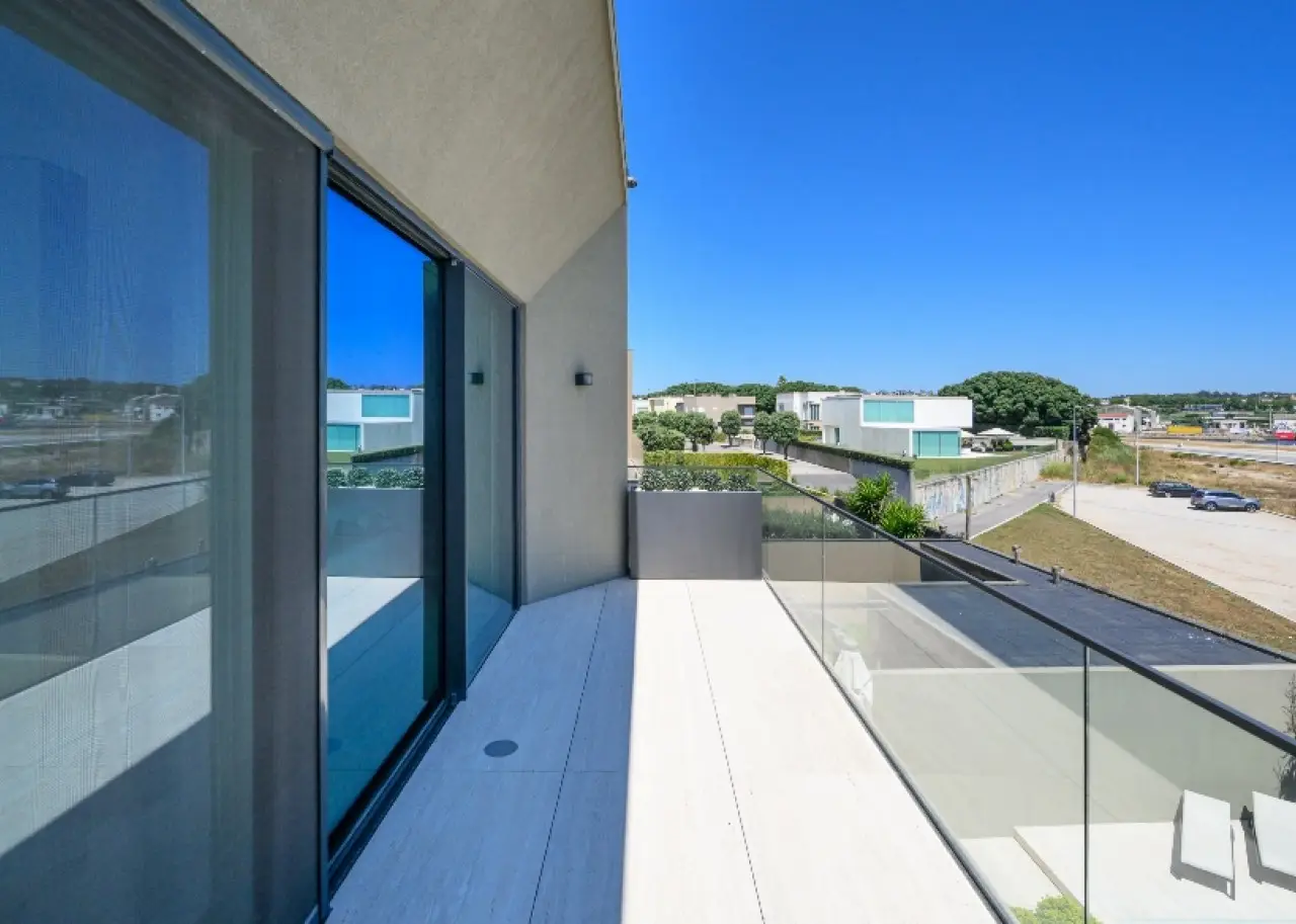 Located in a quiet, established residential area, this contemporary villa stands out for its sophisticated design, by one of Portugal's most renowned architects. It is in excellent condition and has high quality finishes. Spread over three floors, it benefits from privileged sun exposure and plenty of natural light throughout the day. On the top floor is the elegant master suite with dressing room and stunning sea views, accompanied by two other suites, both with access to private balconies. The entrance floor houses a modern open-plan kitchen , a guest bathroom and a large living room with a direct connection to a generous balcony, perfect for relaxing outdoors. The lower floor offers a pleasant private cinema room , which extends into the garden, where you can enjoy the heated swimming pool with ionization system . A unique property, ideal for those looking for comfort, privacy and a simply unforgettable view. CHARACTERISTICS: Plot Area: 359 m2 | 3 864 sq ft Deployment Area: 146 m2 | 1 576 sq ft Building Area: 379 m2 | 4 084 sq ft Bedrooms: 3 Bathrooms: 5 Garage: 3 Energy efficiency: C FEATURES: South-facing garden with swimming pool; Underfloor heating; Travertine marble floor.